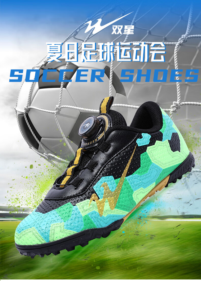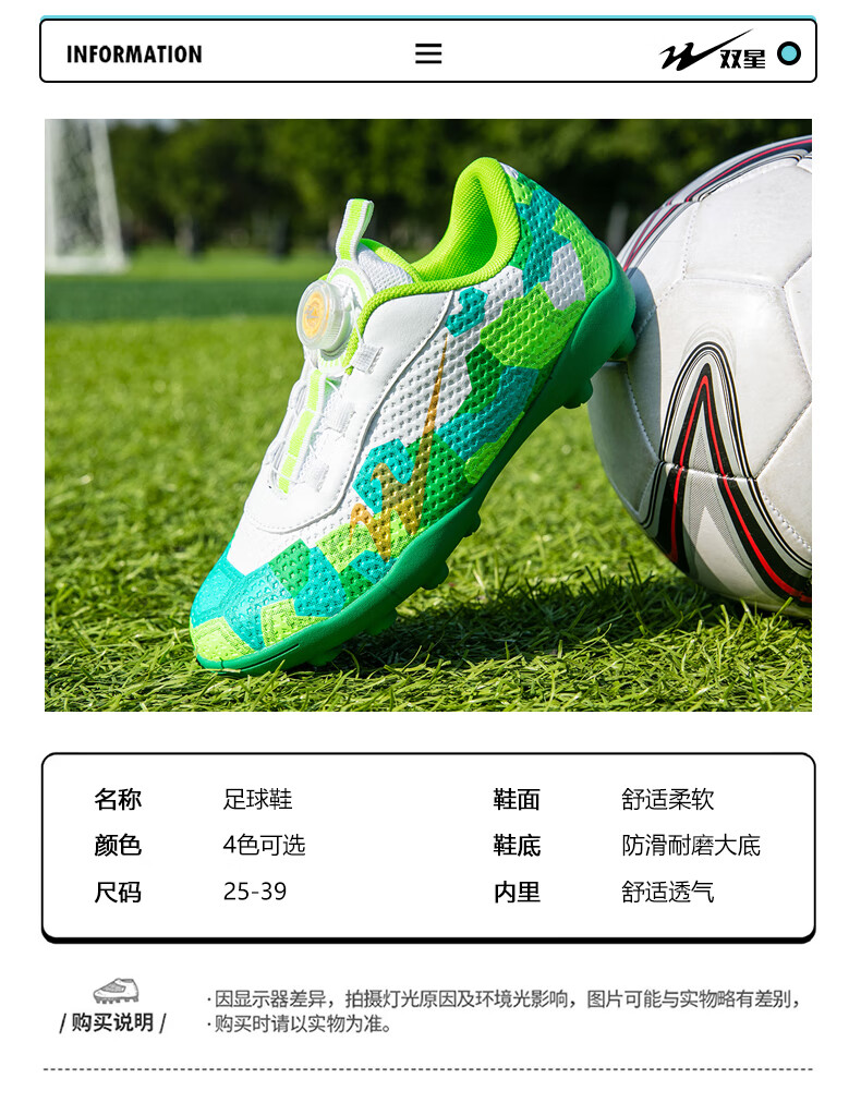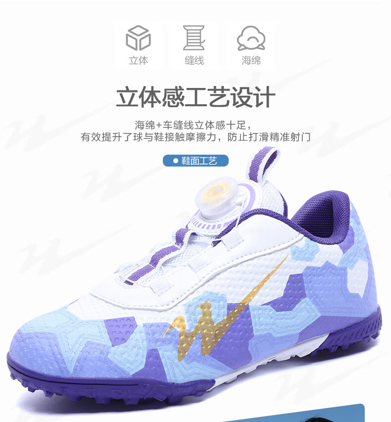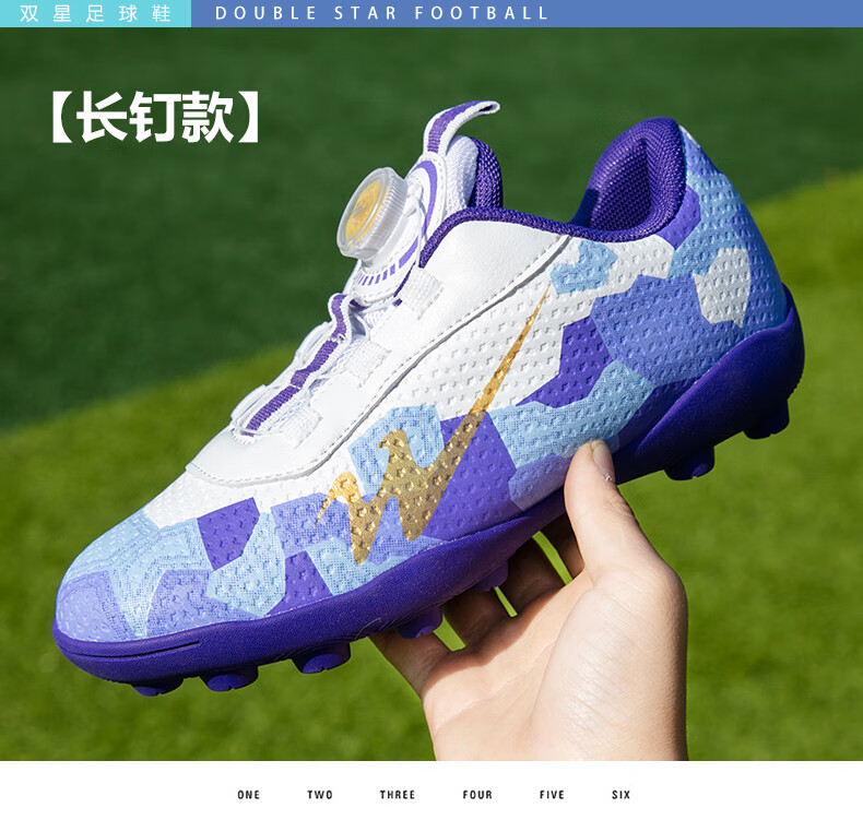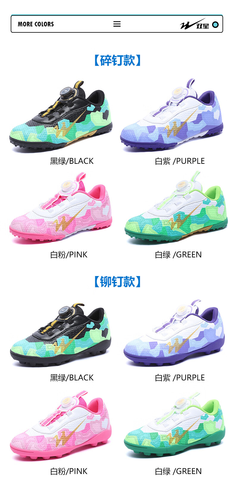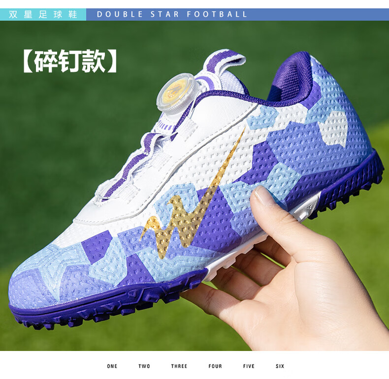 双星八特儿童足球鞋6-12岁碎钉男女童运动鞋青少年中大童小孩学生免系球鞋 白粉【碎钉】 33