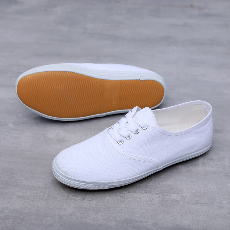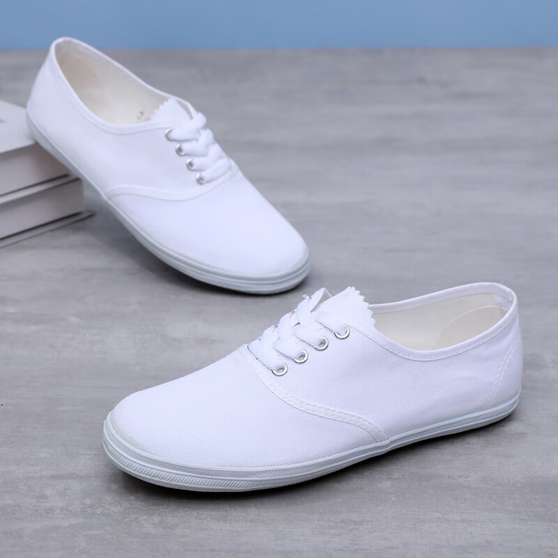 G.duck white sneakers, student canvas shoes, children's white shoes, school gymnastics dance shoes, sports meet performance soft-soled white mesh shoes, pure white, lace-up, size 36, 23cm inside
