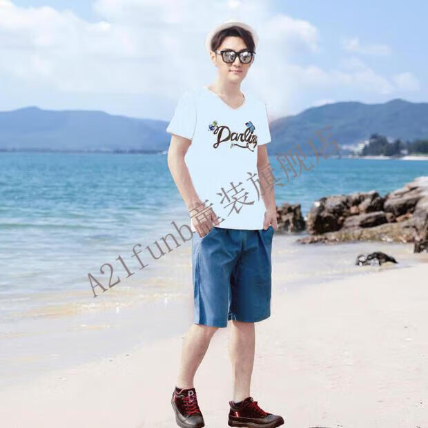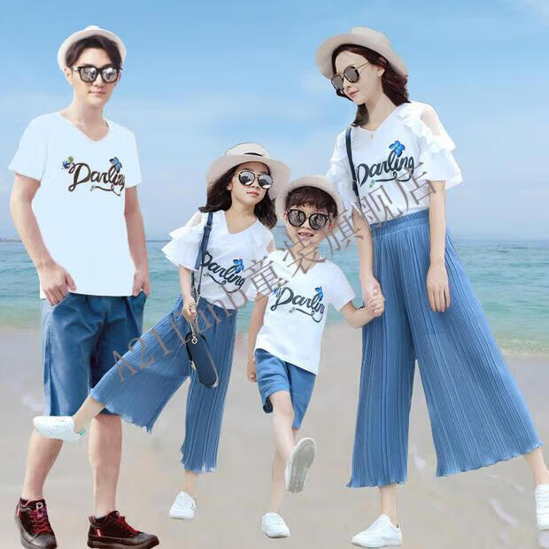 A 21 FUNB family portrait parent-child summer clothes for a family of three, mother and child, beach T-shirt, mother and daughter culottes suit, beach style, mom XL (recommended weight 115-130 Jin Jin equals 0.5 kg)