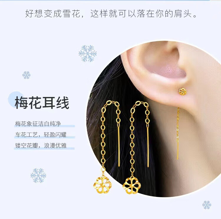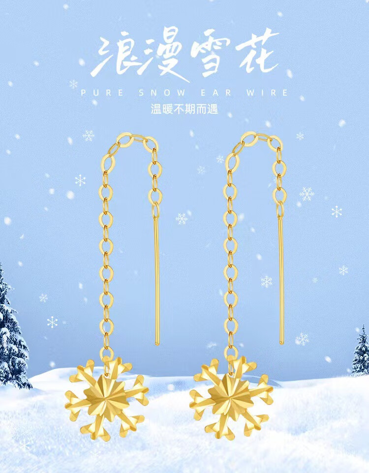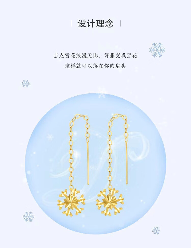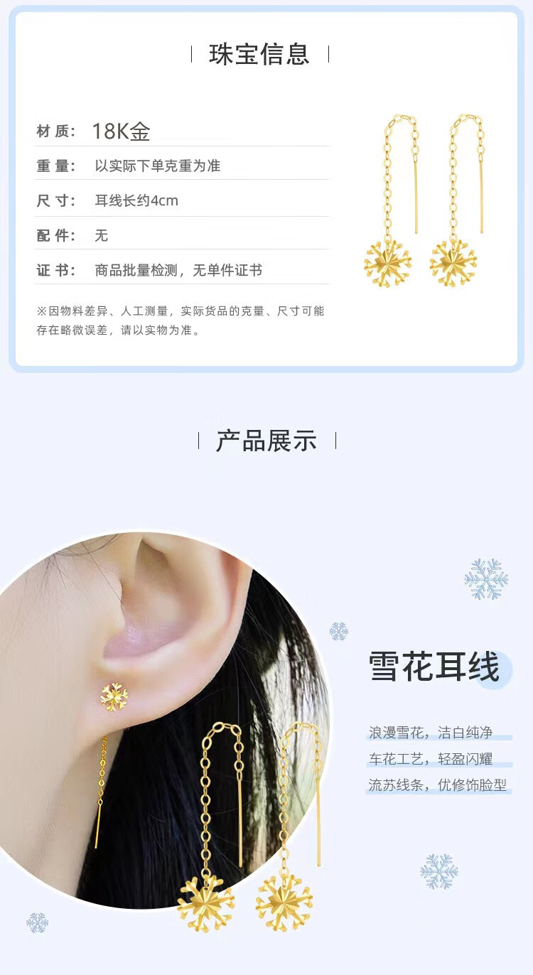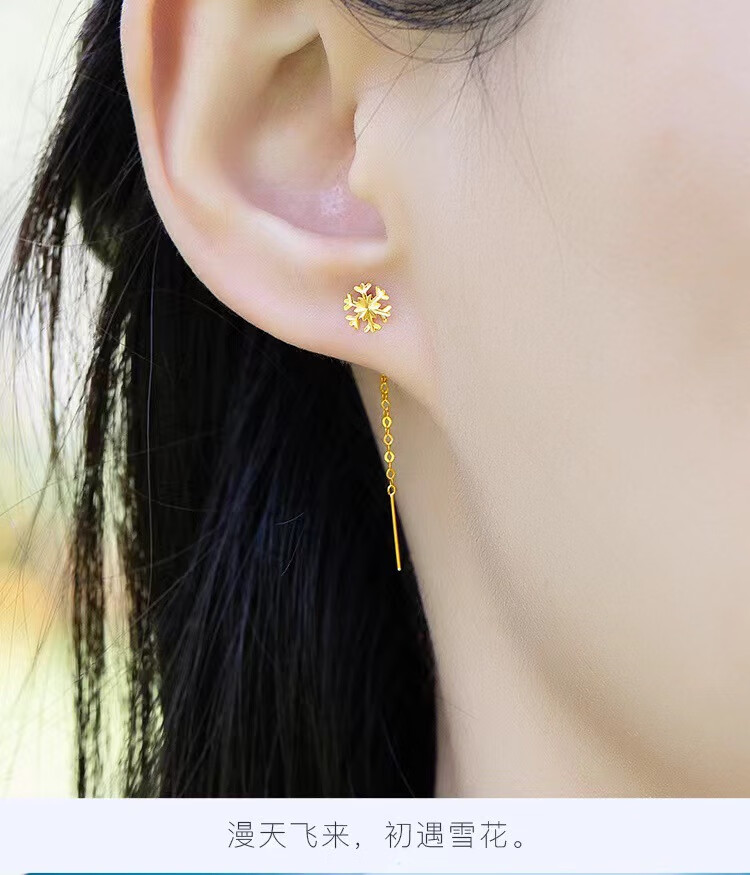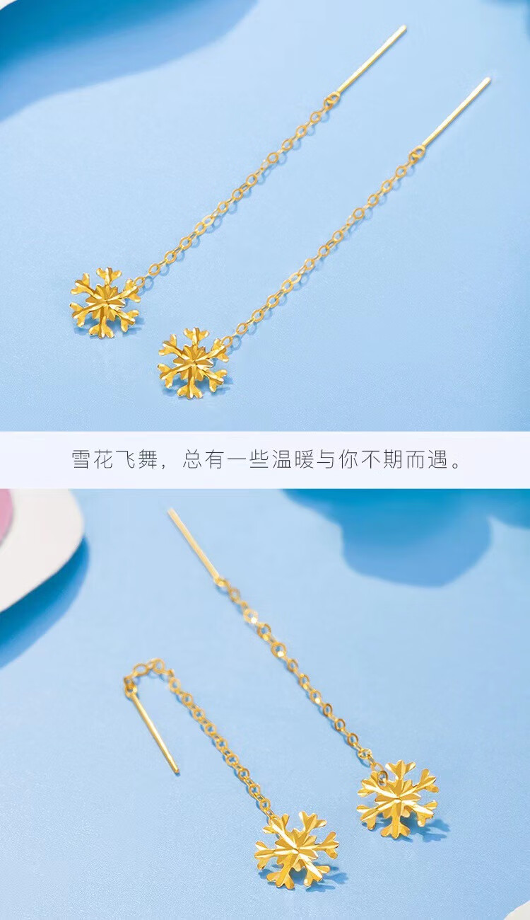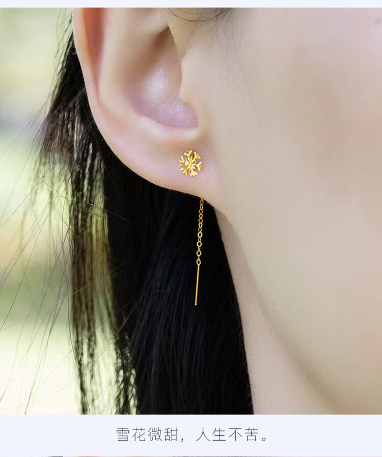 Duti 18K gold snowflake earrings AU750 gold women's earrings tassel earrings rose gold 18K gold