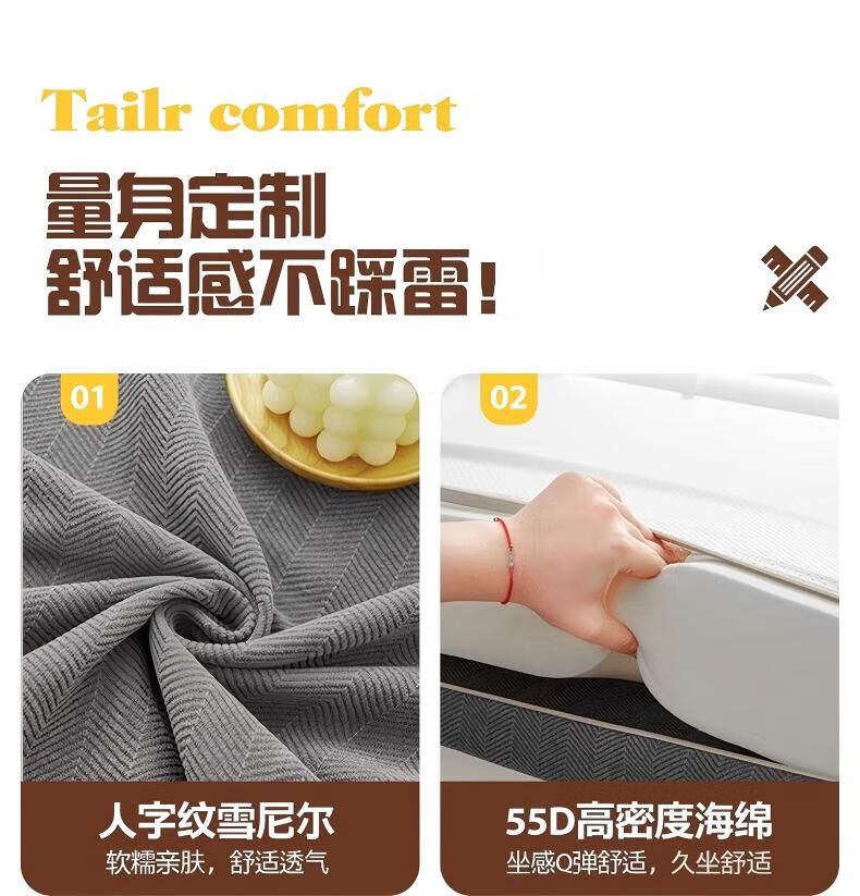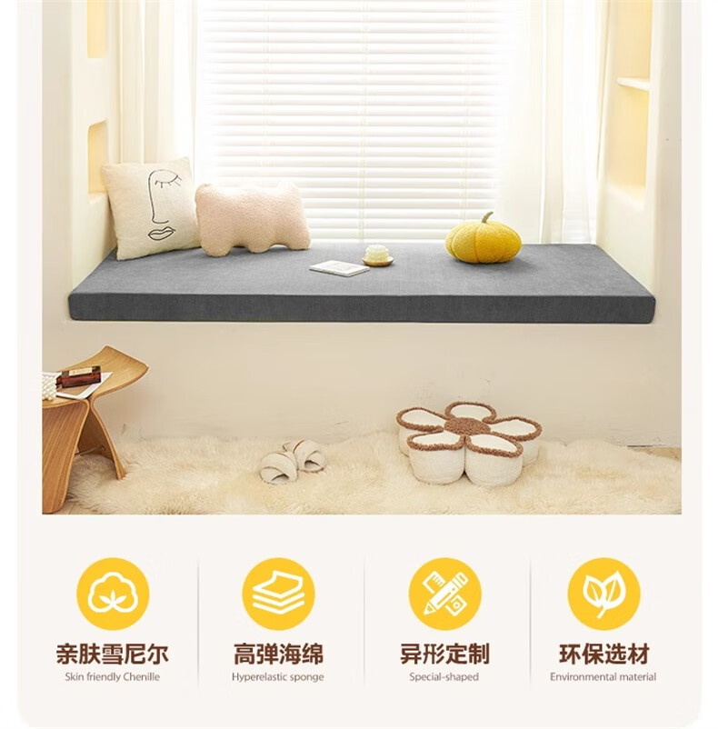 Hongyuan Fashion Chenille Bay Window Cushion Light Luxury and High-end Feeling Universal for All Seasons New Removable and Washable Sponge Cushion Professionally Customized Herringbone Pattern - Gray Supports Customization Contact Customer Service for Recommended Sizes