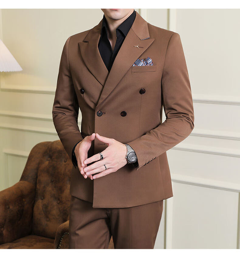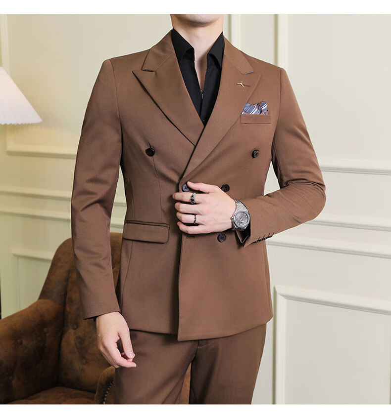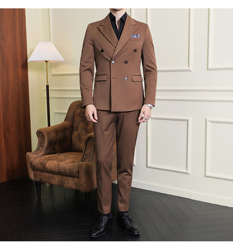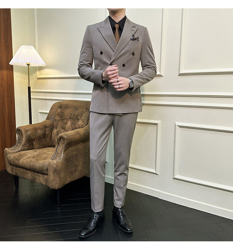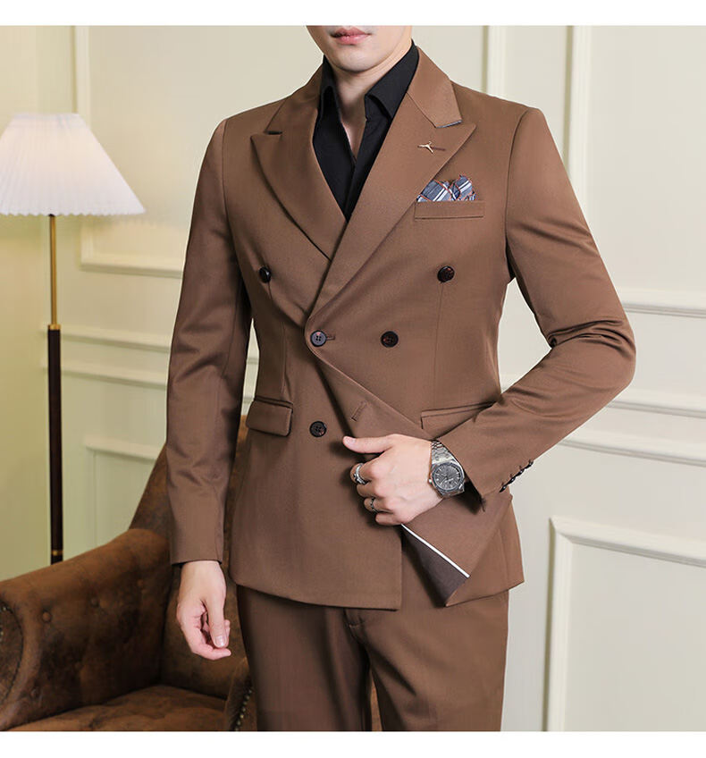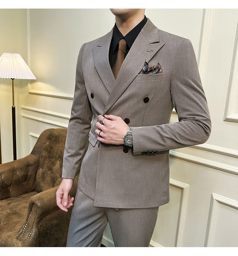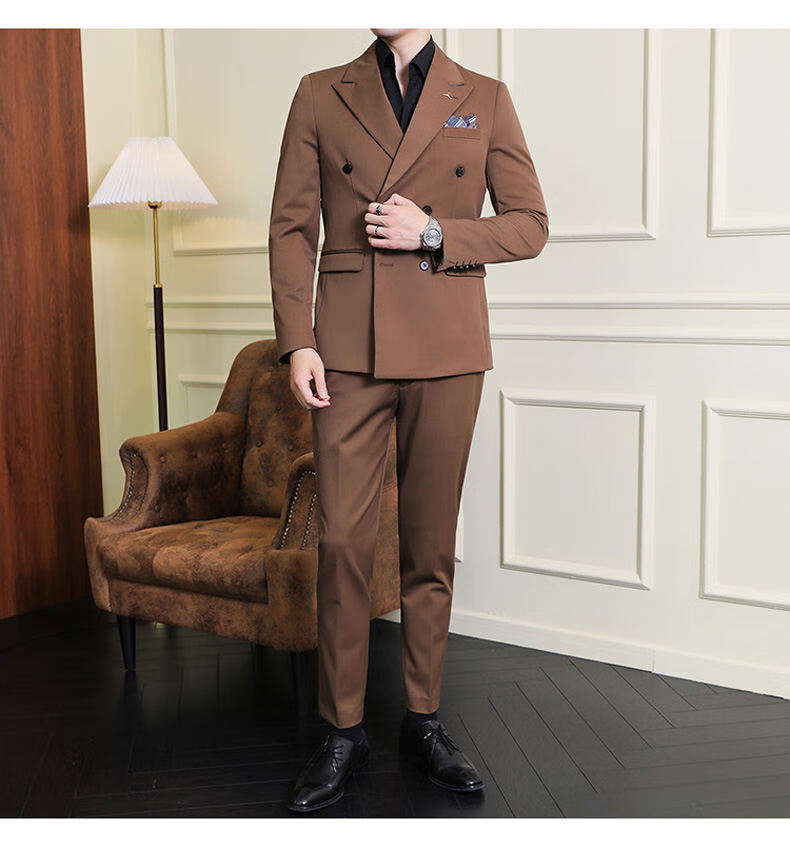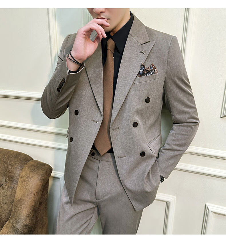 ROMON white double-breasted small suit men's suit Korean version slim casual high-end suit jacket groom wedding dress white two-piece set XL