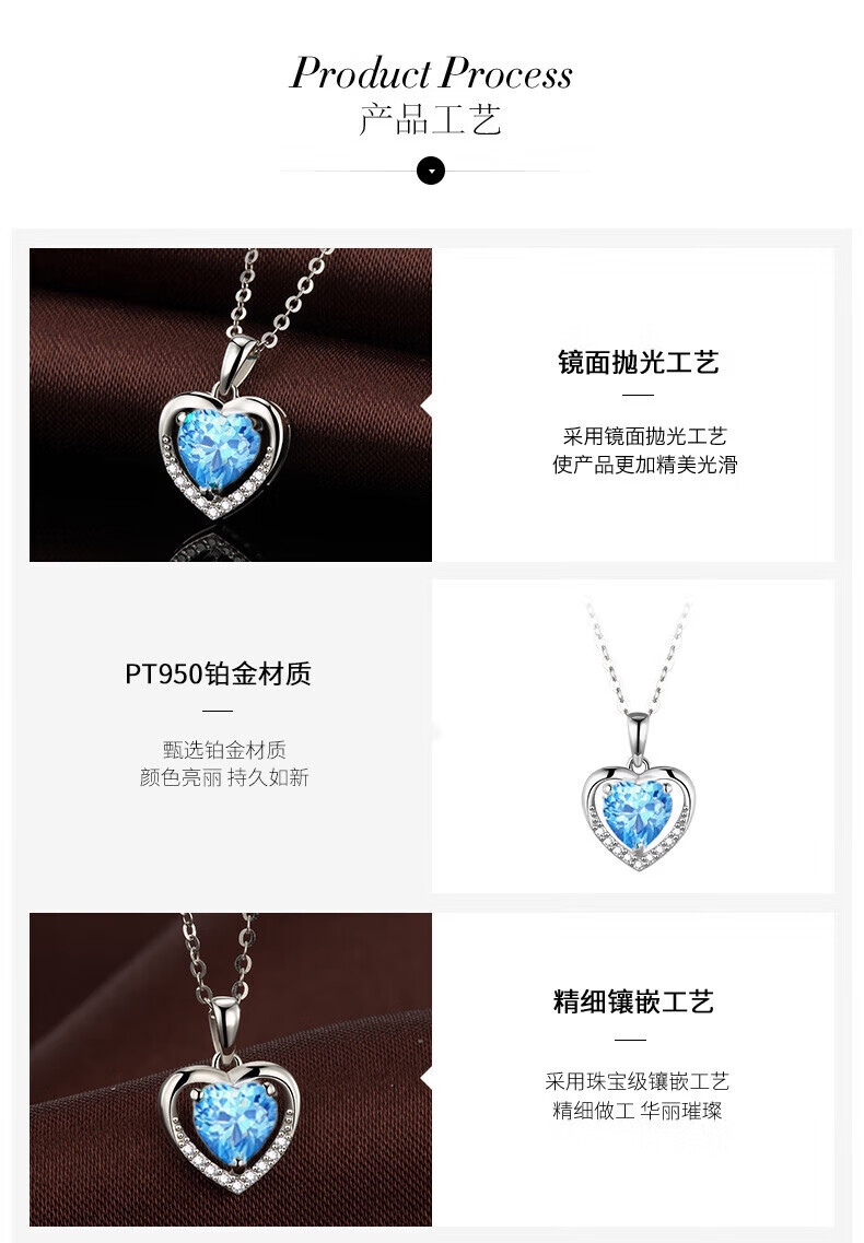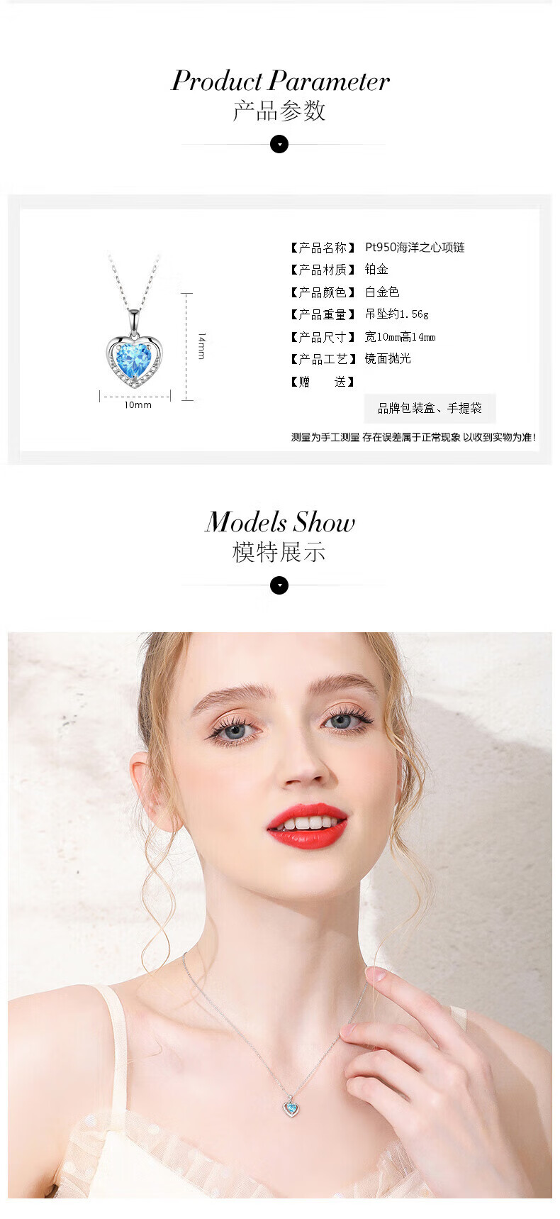 VCIXYOUPt950 Heart of the Ocean Platinum Necklace for Women to Confess Your Heart Anniversary Birthday Gift for Girlfriend Platinum Heart of the Ocean Necklace + Love Gift Box