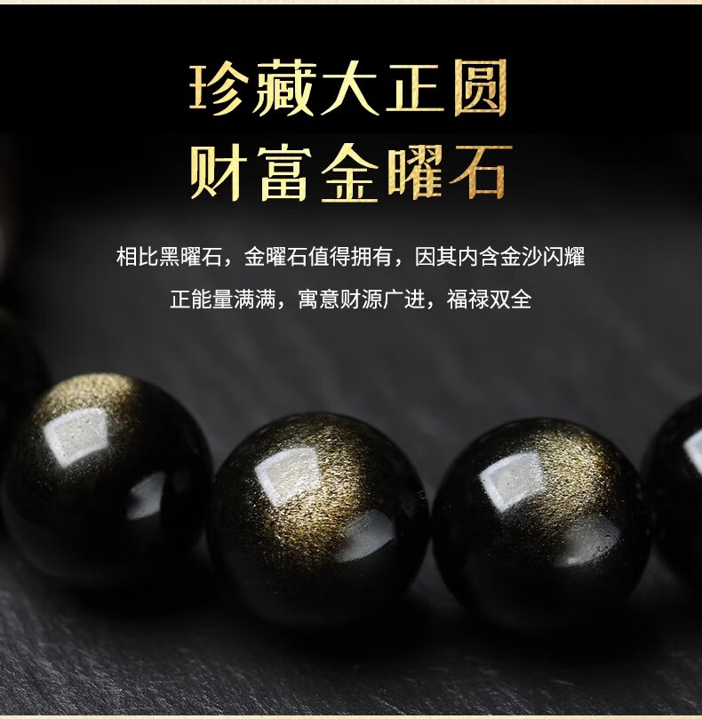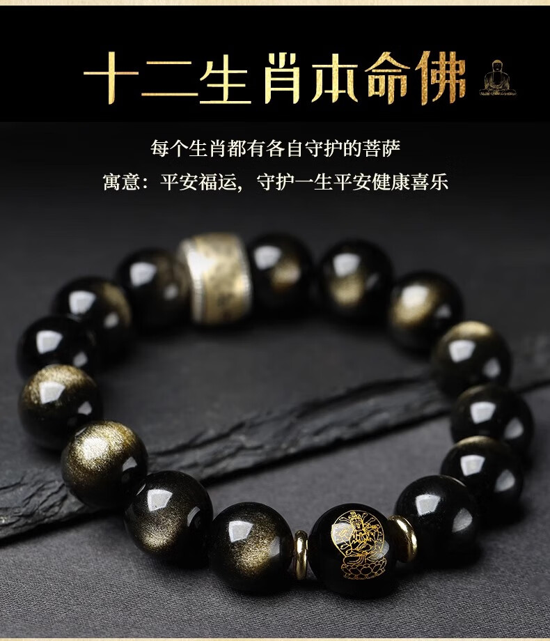 Aitkel Gold Obsidian Bracelet for Men and Women in the Year of the Zodiac Obsidian Amulet Bracelet to Transfer Wealth and Zodiac Patron Saint New Year Gift to the Great Sun Tathagata Sheep/Monkey-Amulet 12mm Bead Diameter Suitable for Domineering Boys