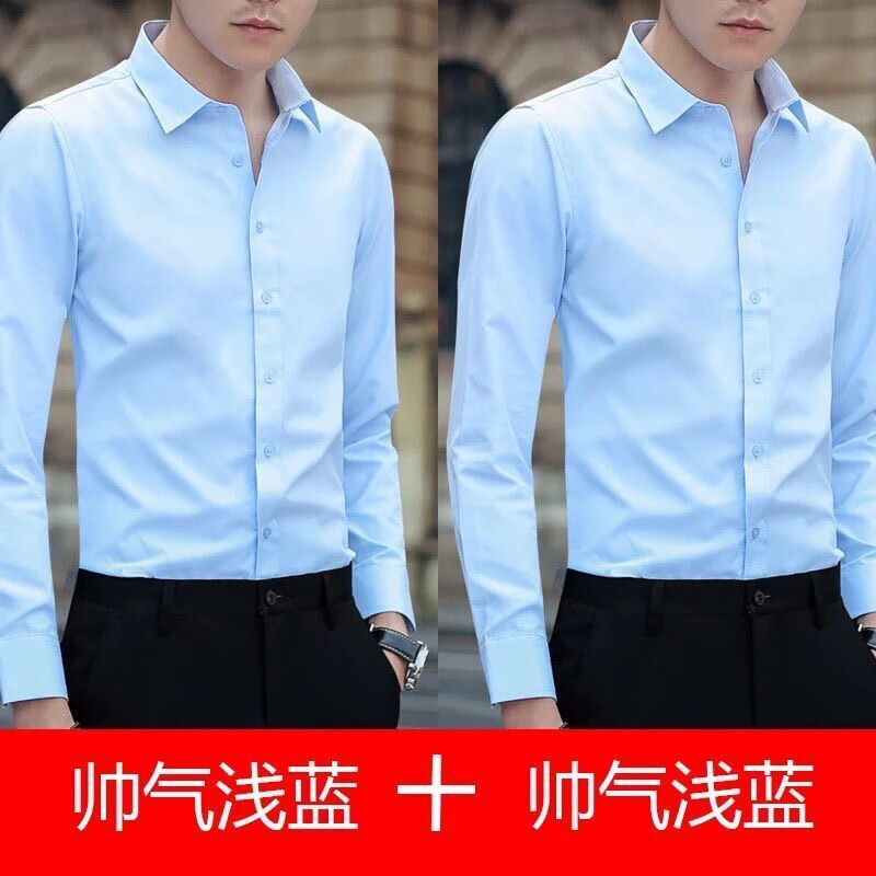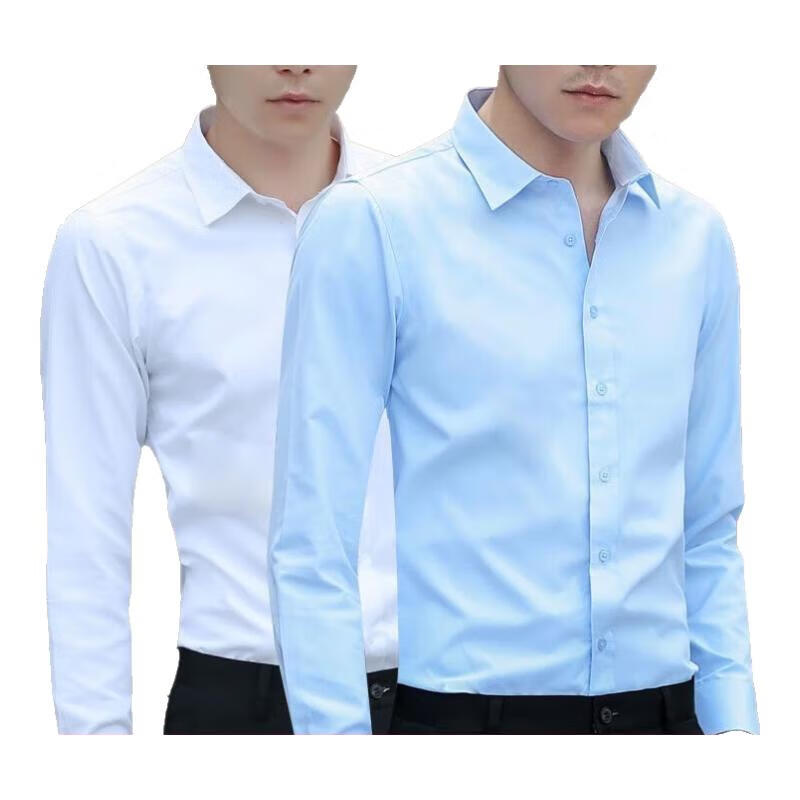 Cexi long-sleeved shirt men's autumn and winter work white shirt slim fit formal top no-iron large size anti-wrinkle thin coat autumn white + light blue XL - recommended 105-120 Jin Jin equals about 0.5 kg