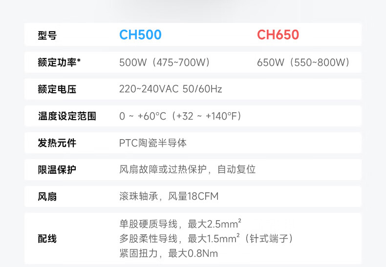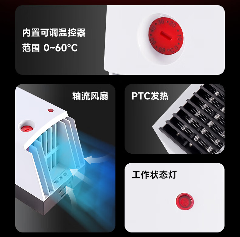 Enjue cabinet space moisture-proof, dehumidification and temperature control integrated PTC fan heater CH500 650W 220V ceramic semiconductor precision temperature control 500W temperature control integrated fan heater