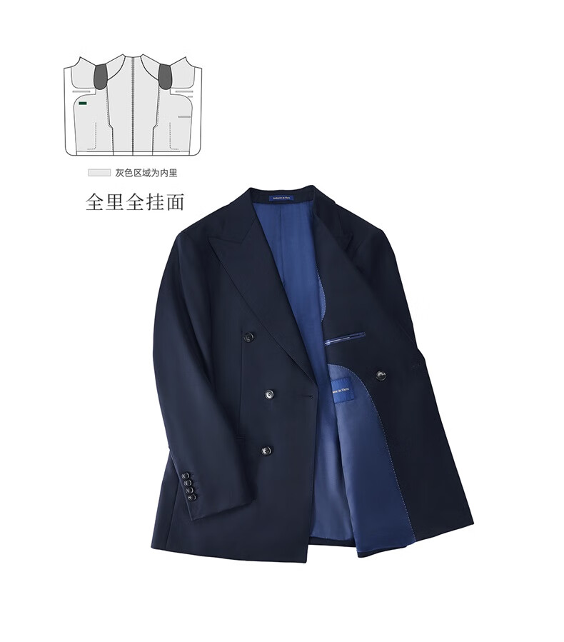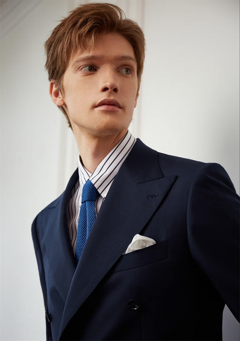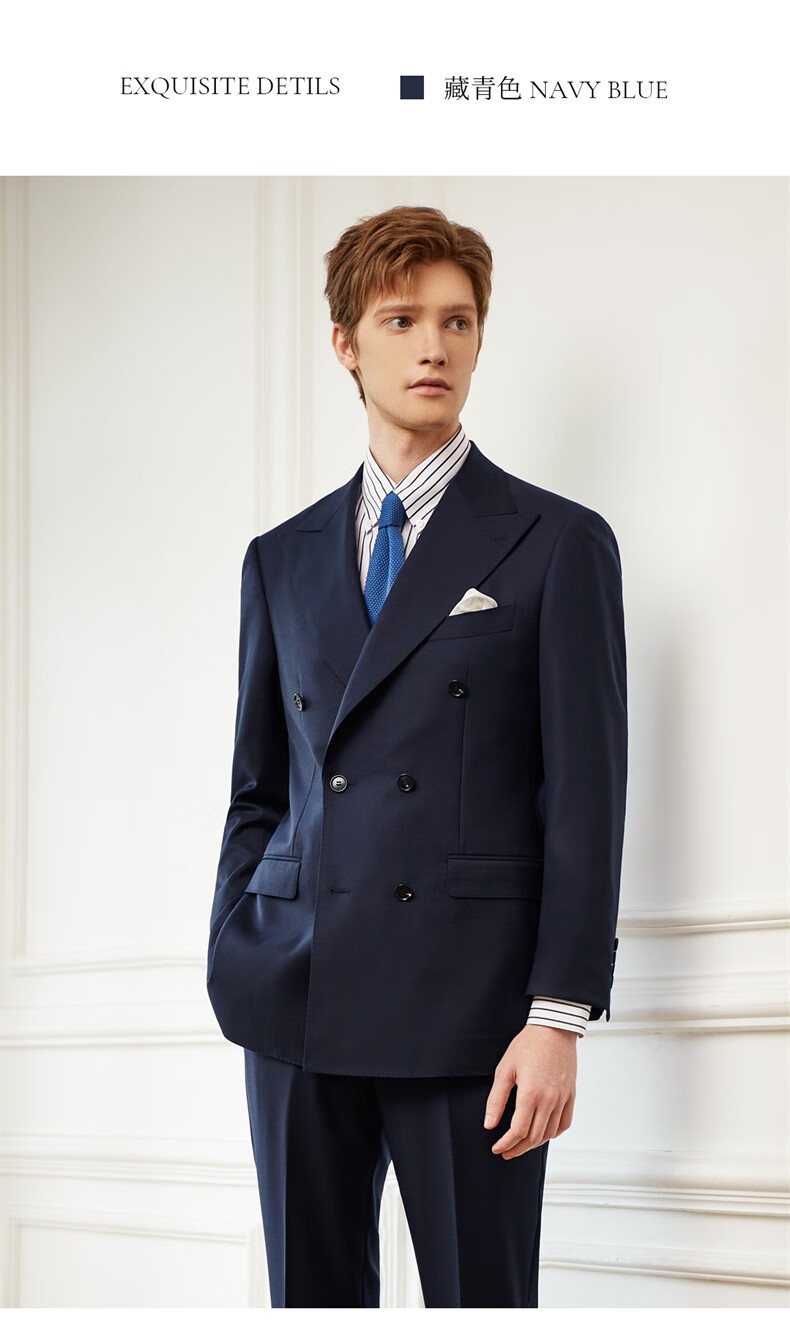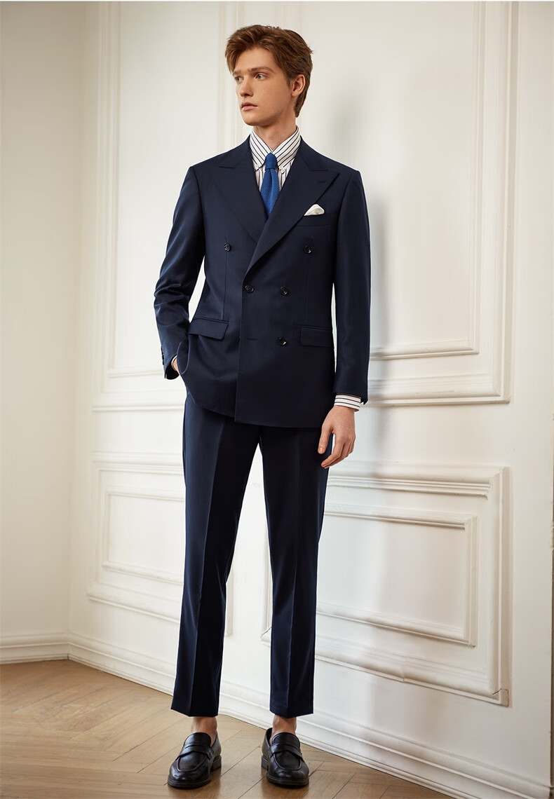 Guillaume de Mons Aojia pure wool formal men's suit business high-definition double-breasted suit groom wedding suit spring and summer new Prussian blue two-piece suit top + pants 50