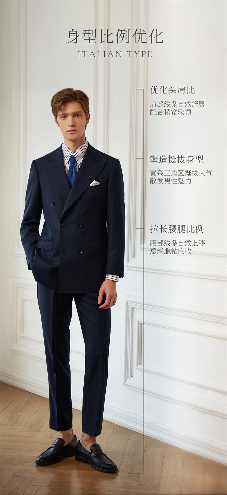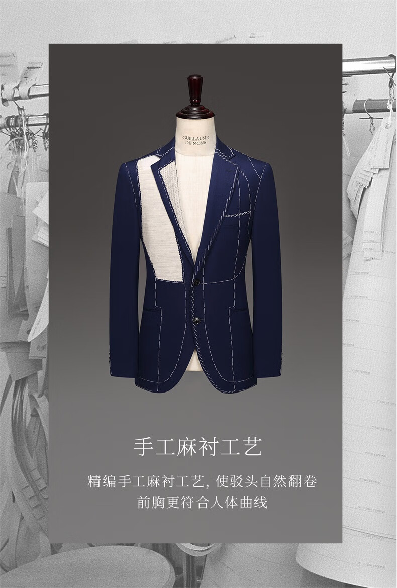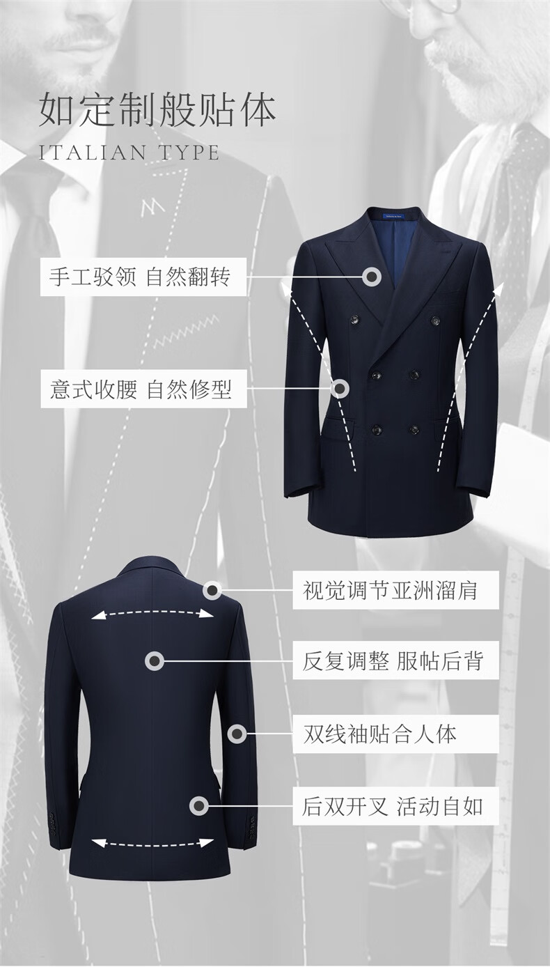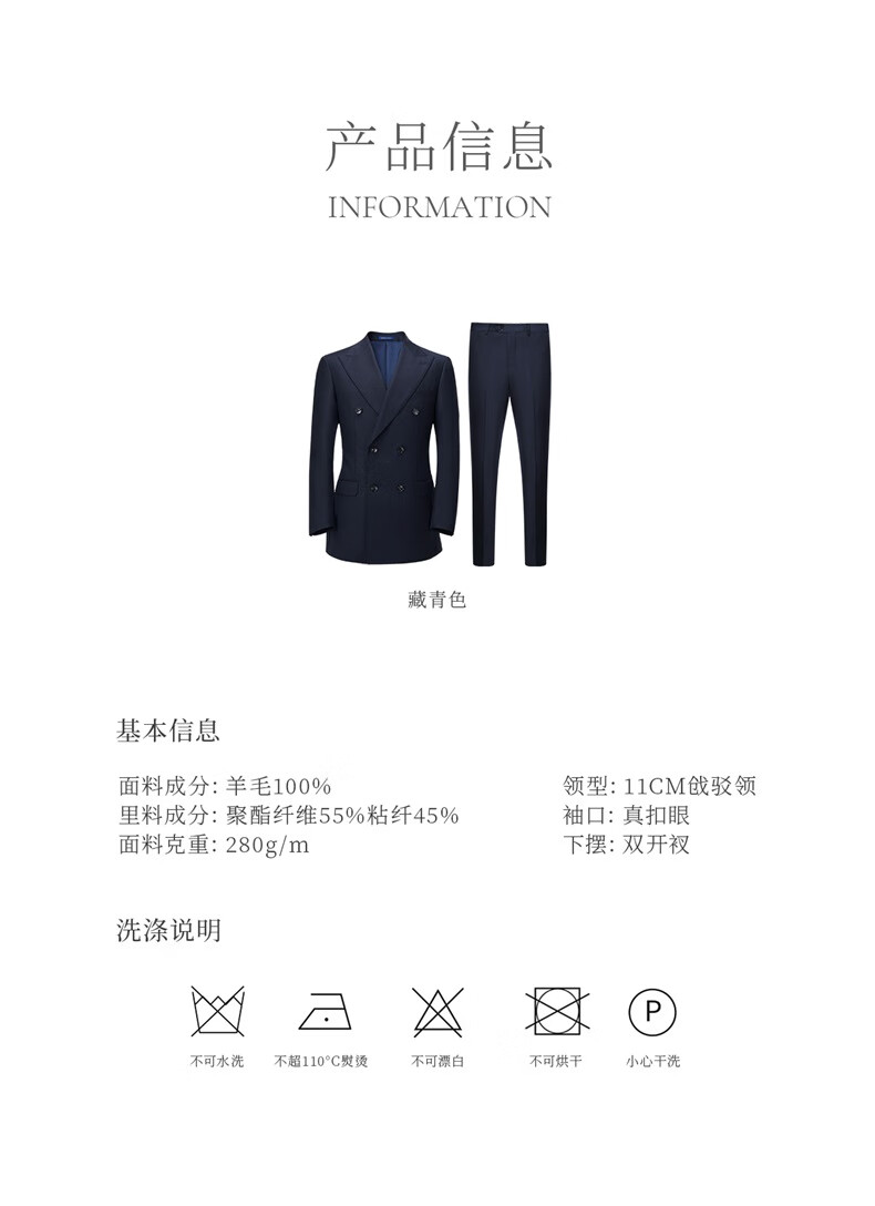 Guillaume de Mons Aojia pure wool formal men's suit business high-definition double-breasted suit groom wedding suit spring and summer new Prussian blue two-piece suit top + pants 50
