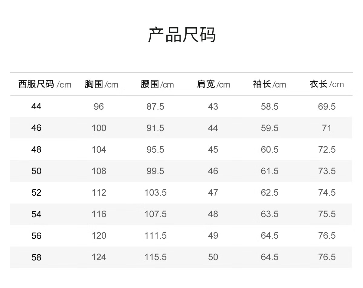 China (cm) 160-165/84-86 165-170 / 88-90 167-172 / 92-96 168-173 / 98-102 170-176 / 106-110