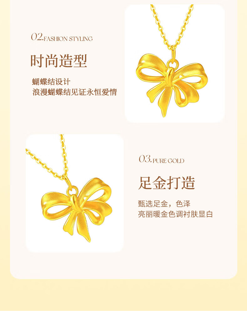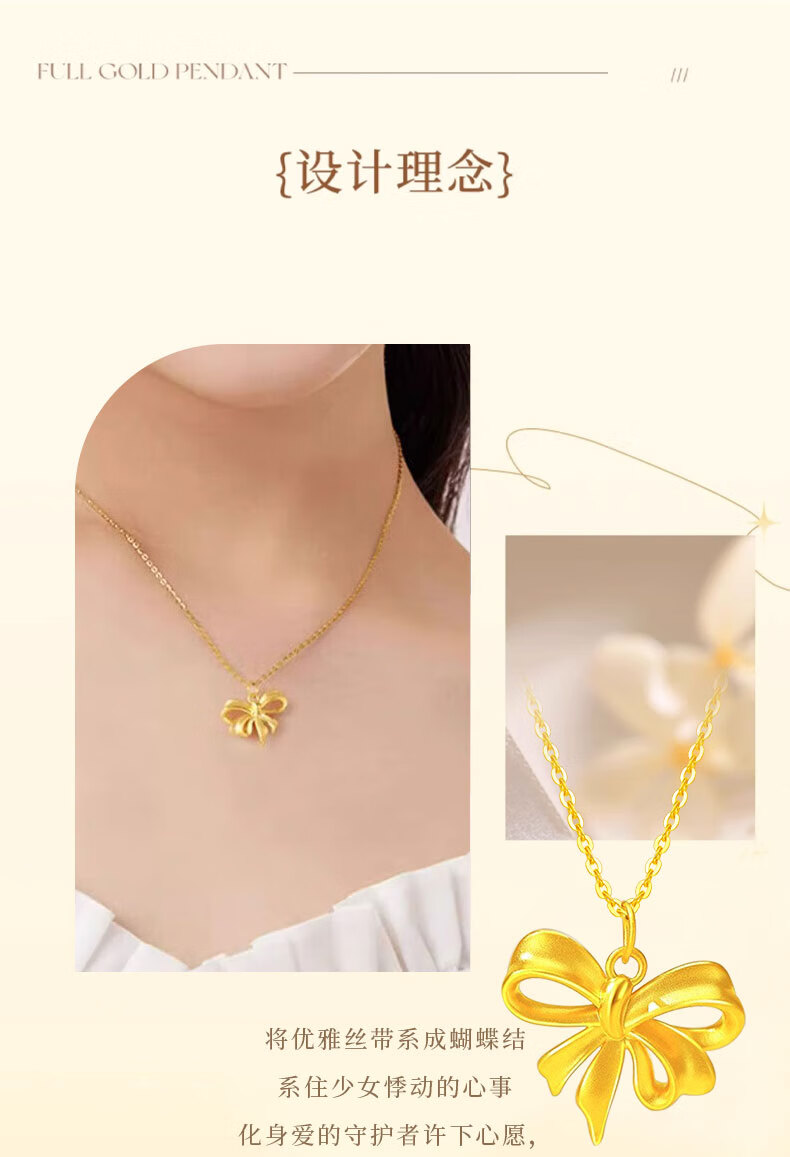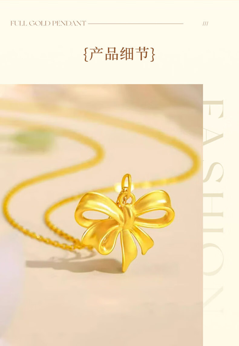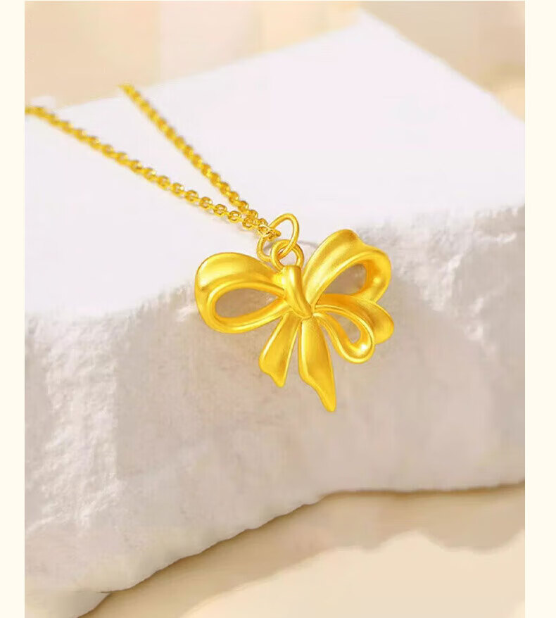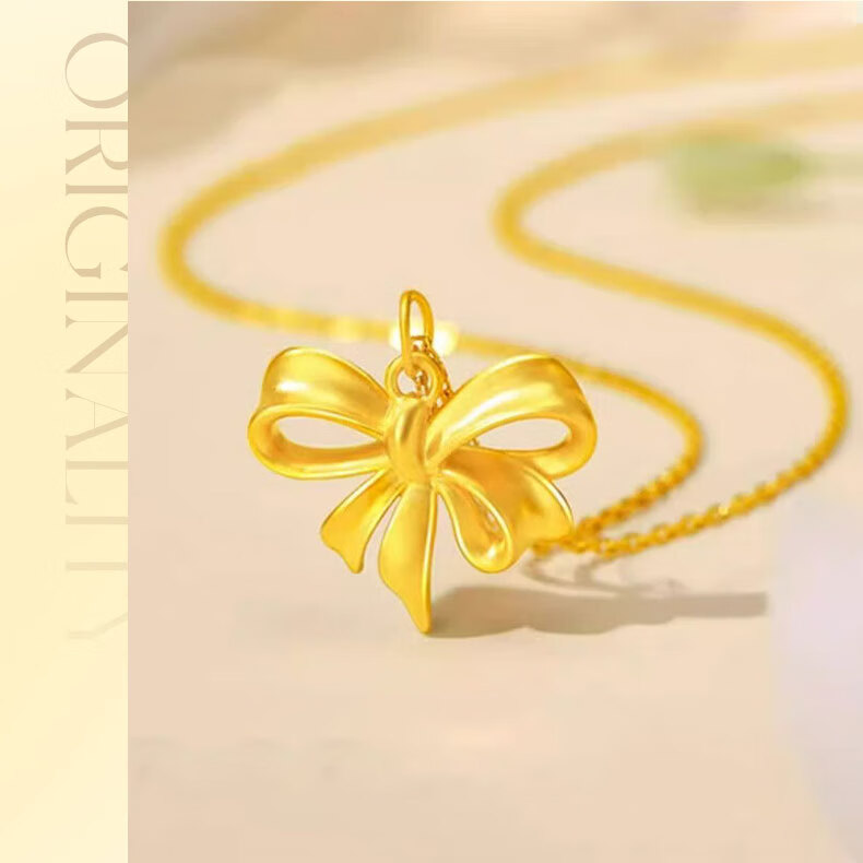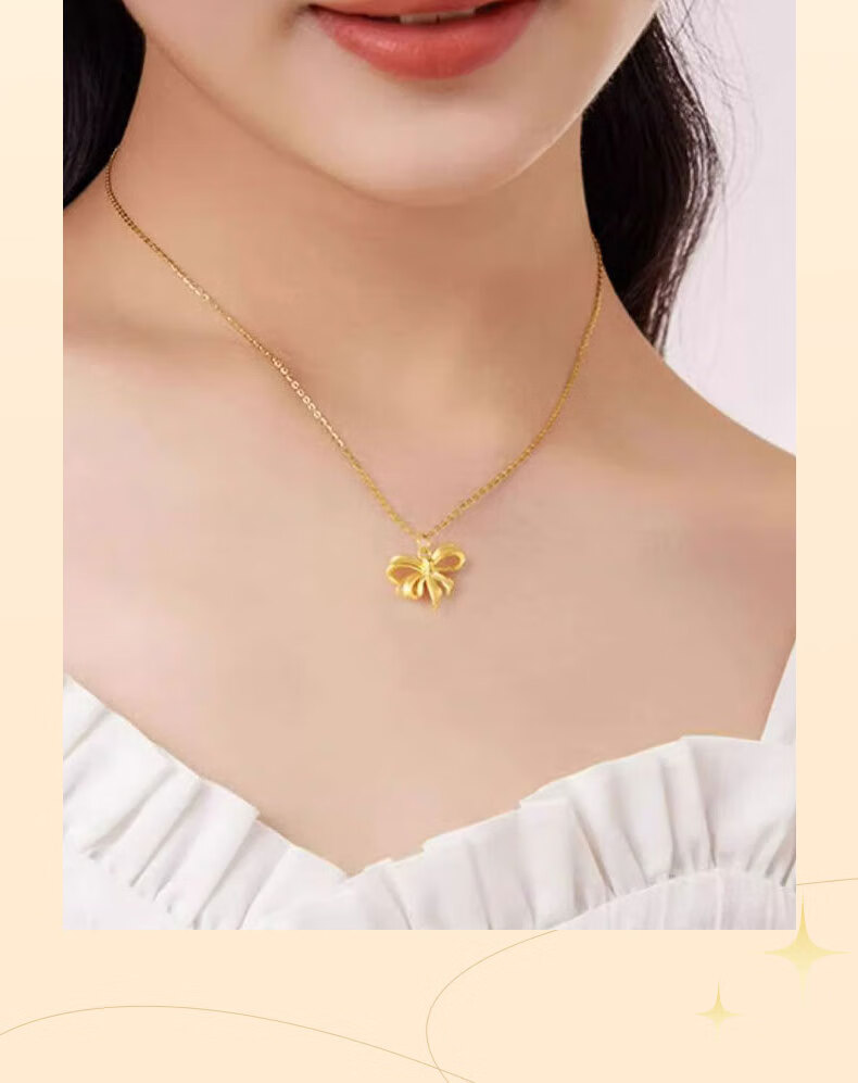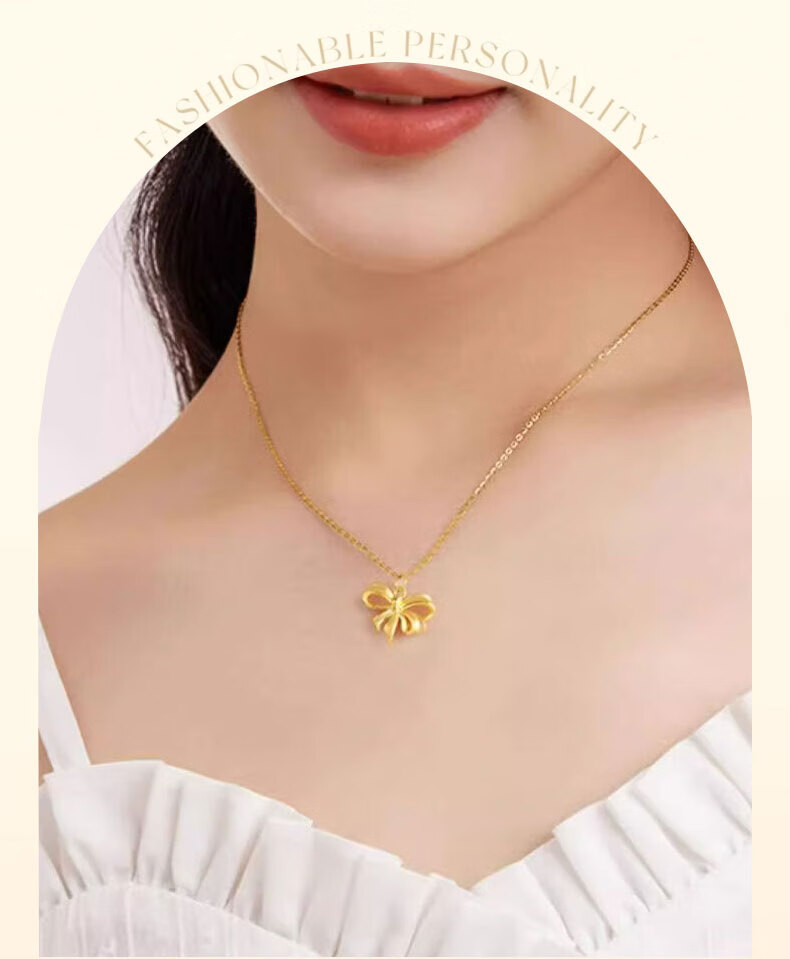 CHINA GOLD Bowknot Gold Pendant Women's Fugitive Princess Necklace Pure Gold Clavicle Chain Valentine's Day Birthday Gift for Girlfriend Today/Next Day Delivery Bowknot Pendant with S925 Chain Approximately 0.7g