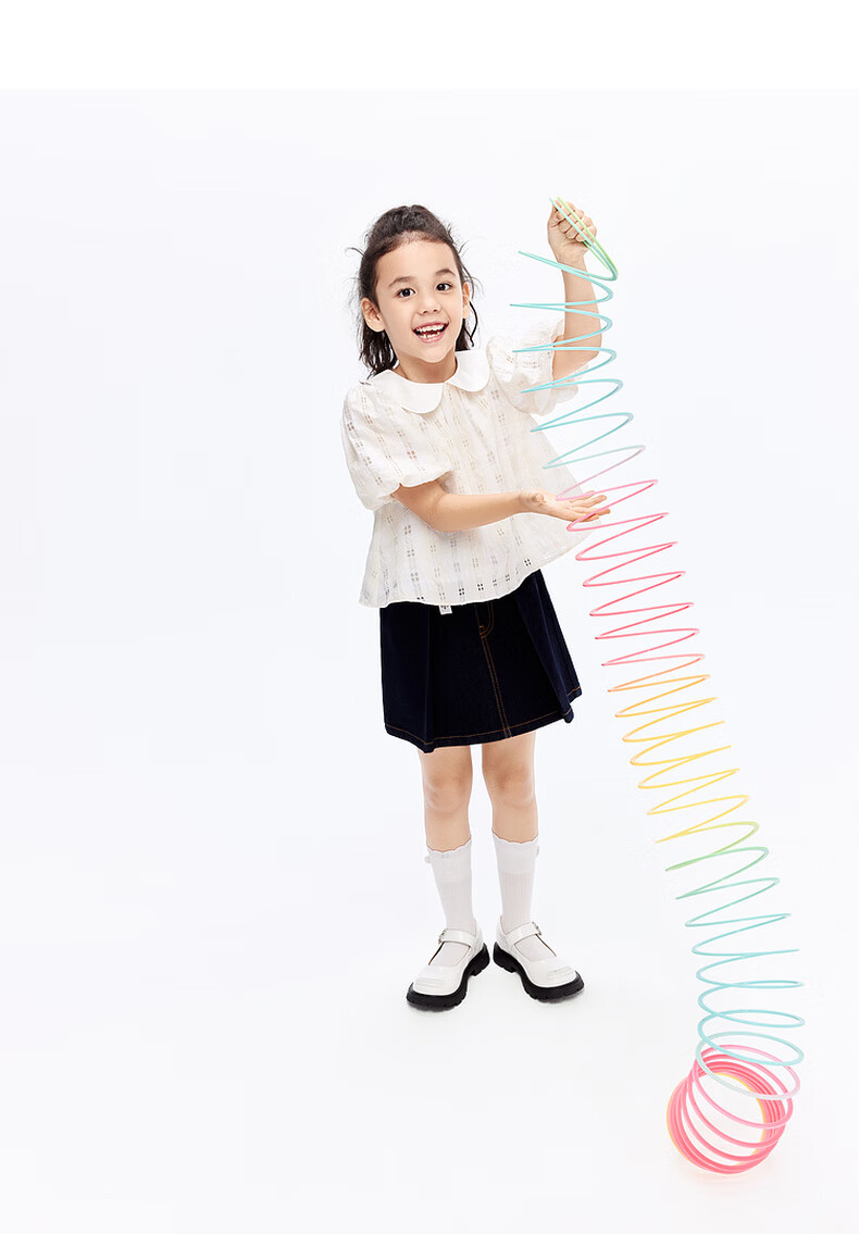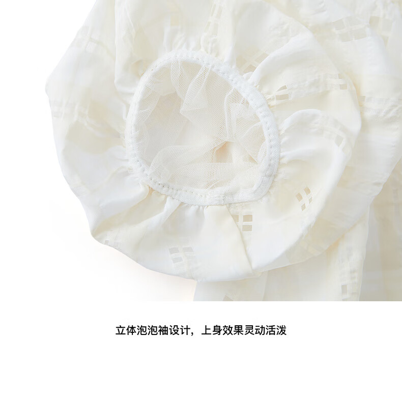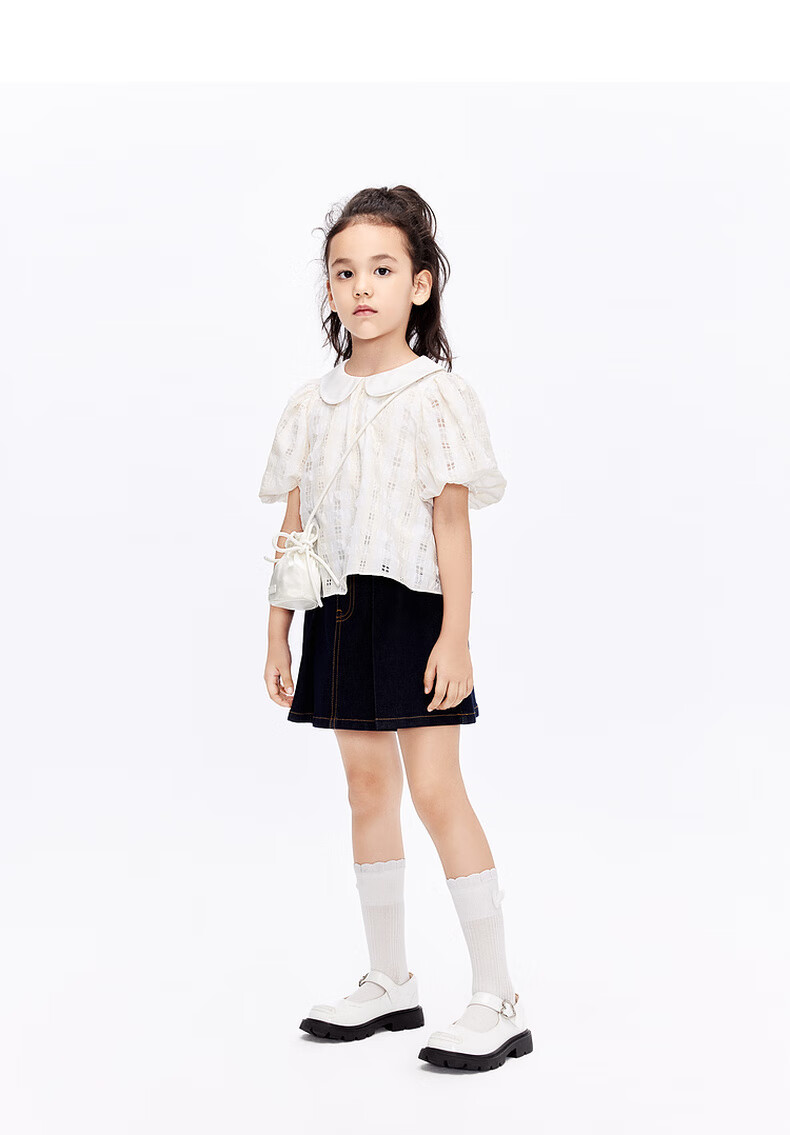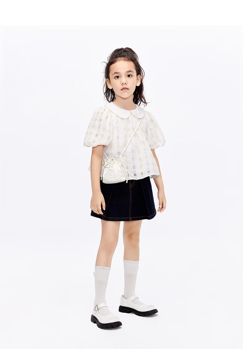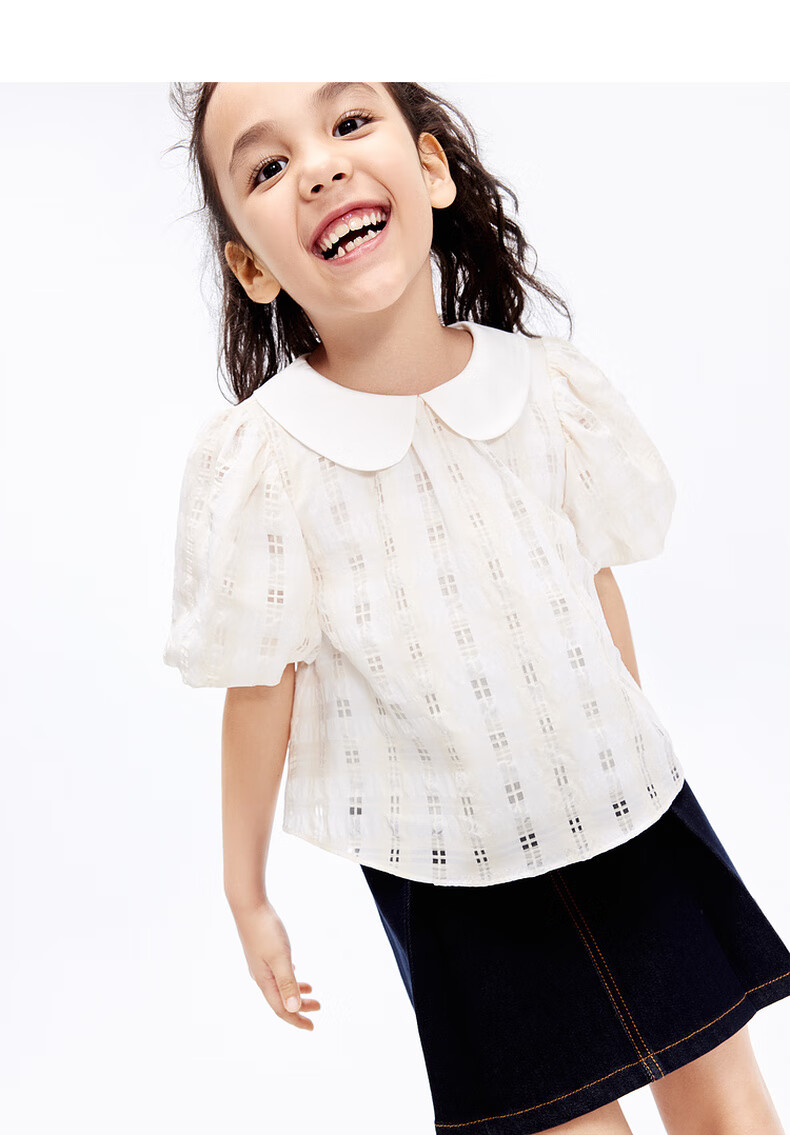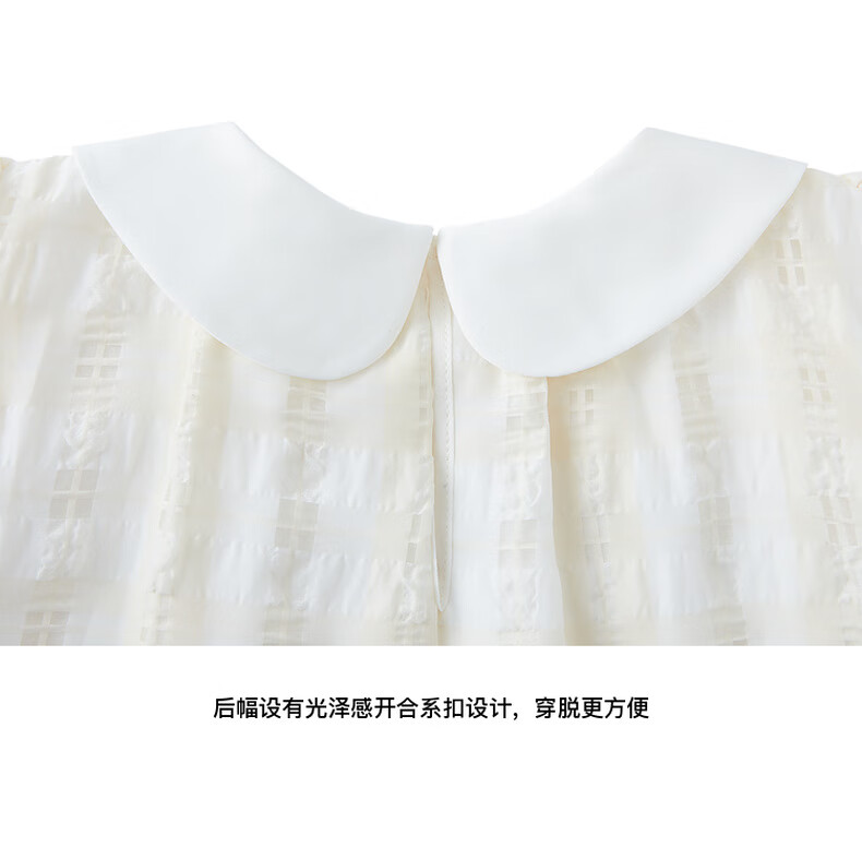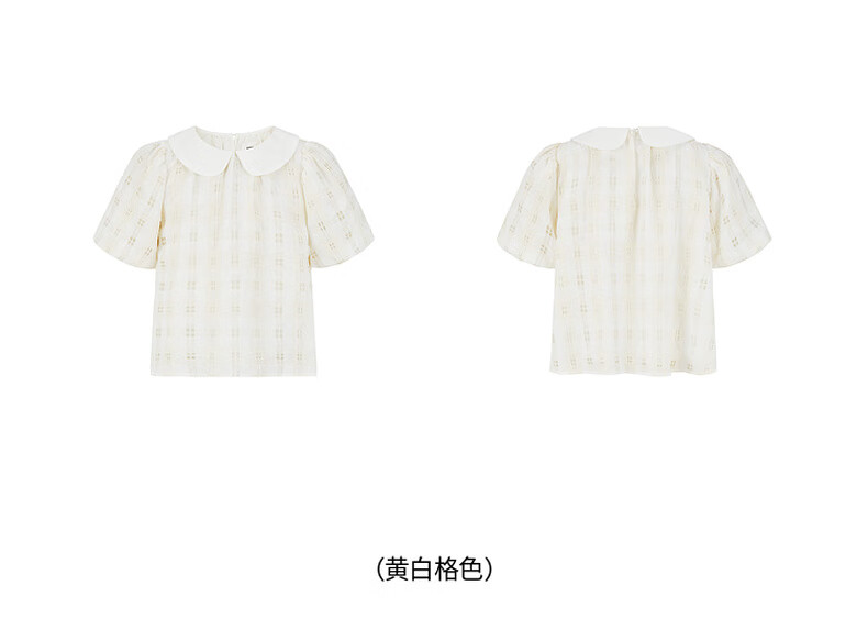 Little MO&Co. Children's Clothing Girls' Puff Sleeve Doll Collar Short Sleeve Tops Little Girls Children's KBD1TOP007 Yellow and White Checkered Color 120 120/60