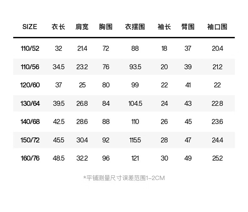 China (cm) 160-165/84-86 165-170 / 88-90 167-172 / 92-96 168-173 / 98-102 170-176 / 106-110