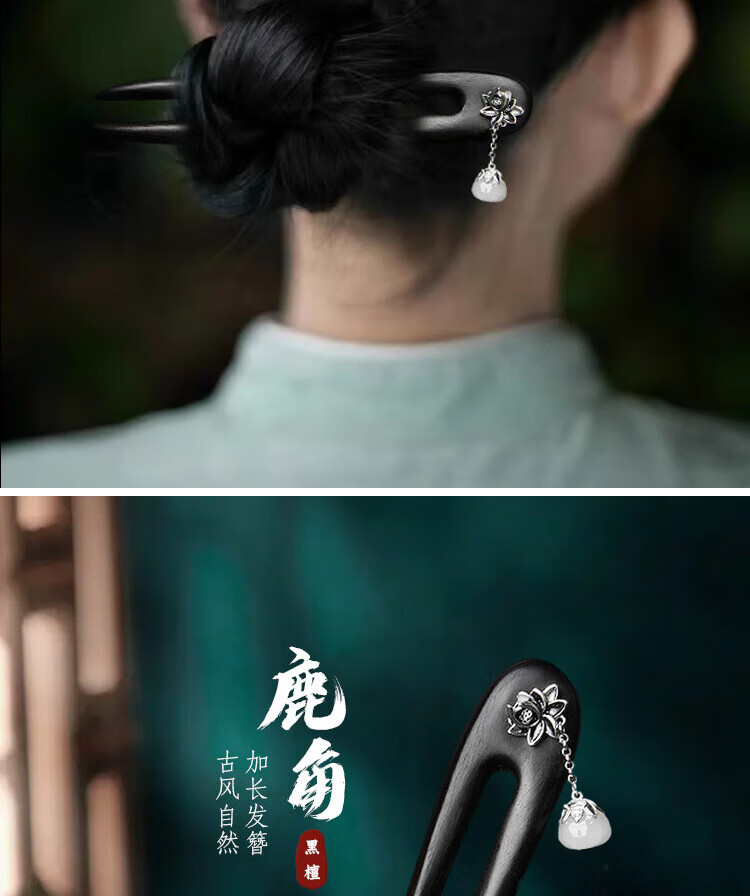 Happy U-shaped double hairpins, ancient style updos, horse-faced skirt accessories, sandalwood hairpins, hairpins, double hairpins, holiday gifts for girlfriends, lotus tassel hairpins