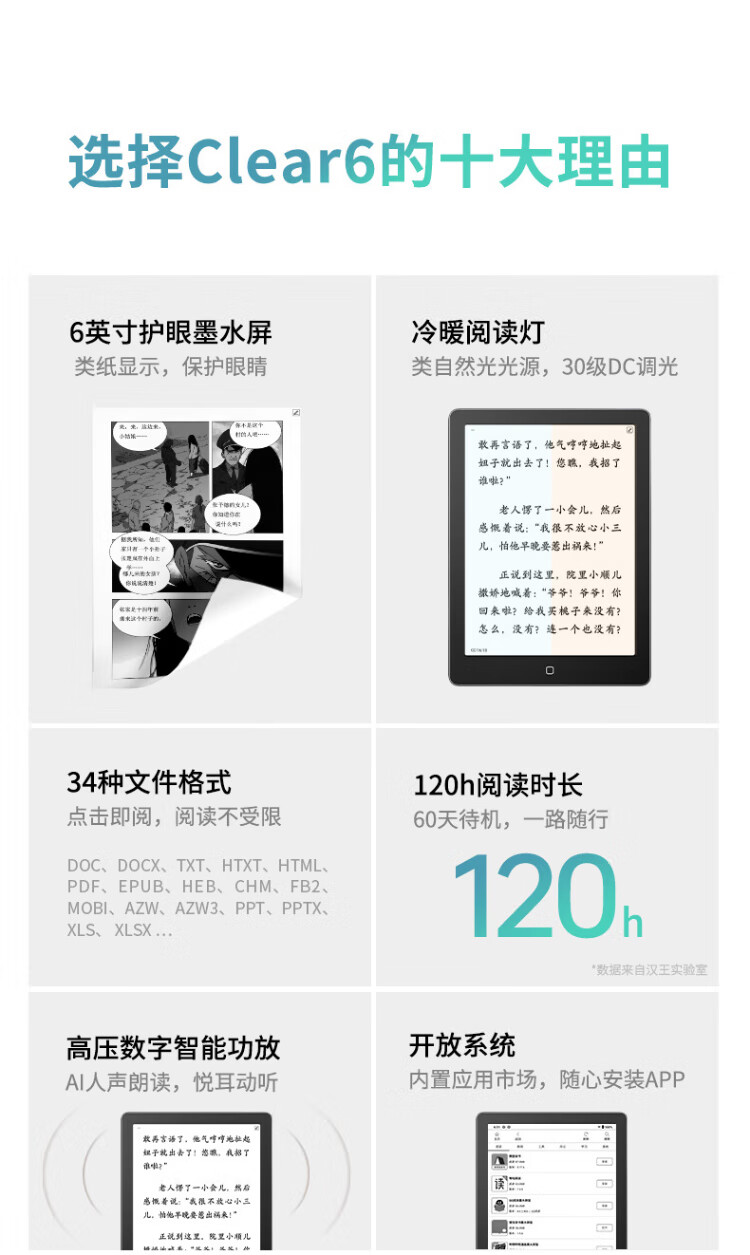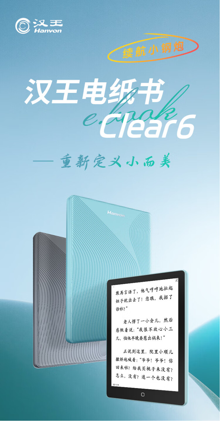 Hanwang Clear 6-inch e-book reader, ink screen electronic paper book tablet, smart reading e-paper, reading and learning, portable reading CLear 6-inch iceberg gray