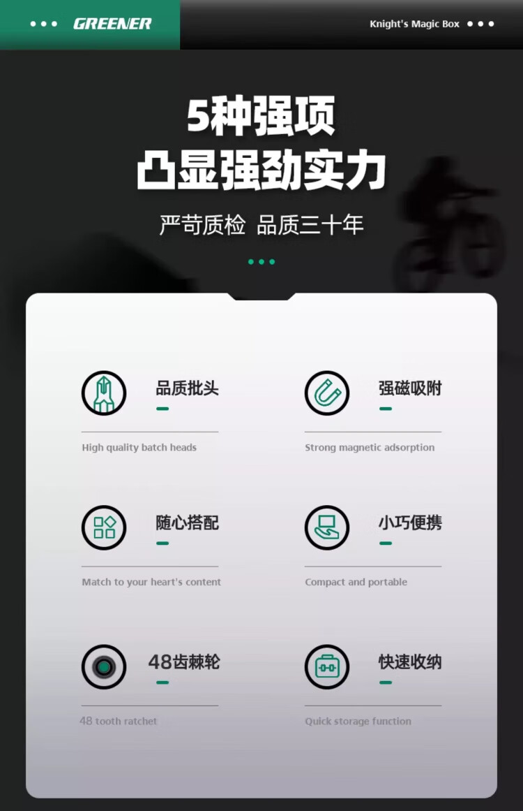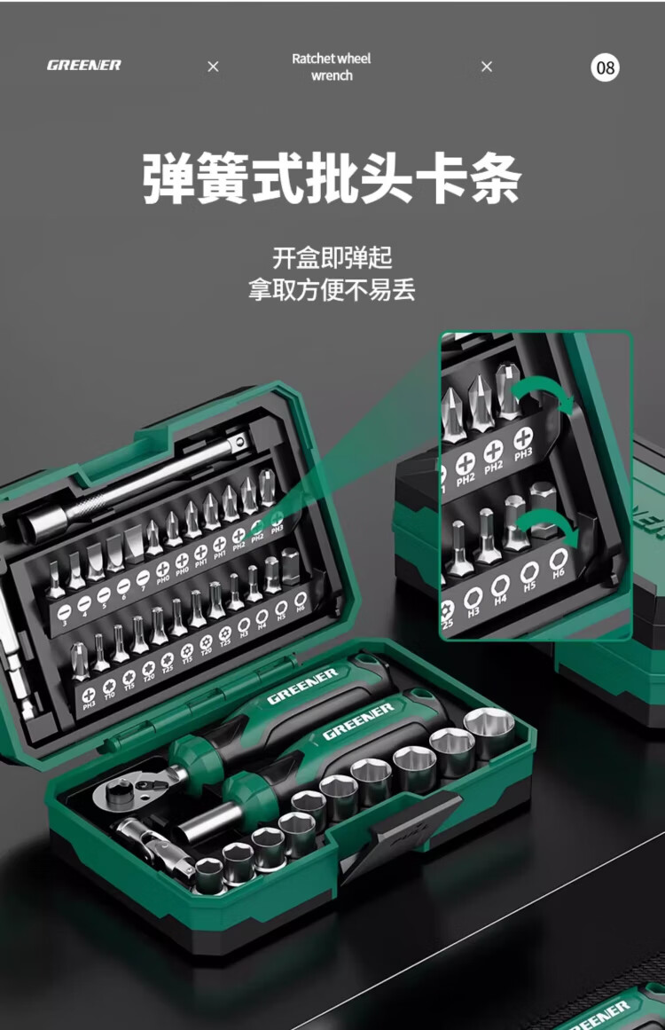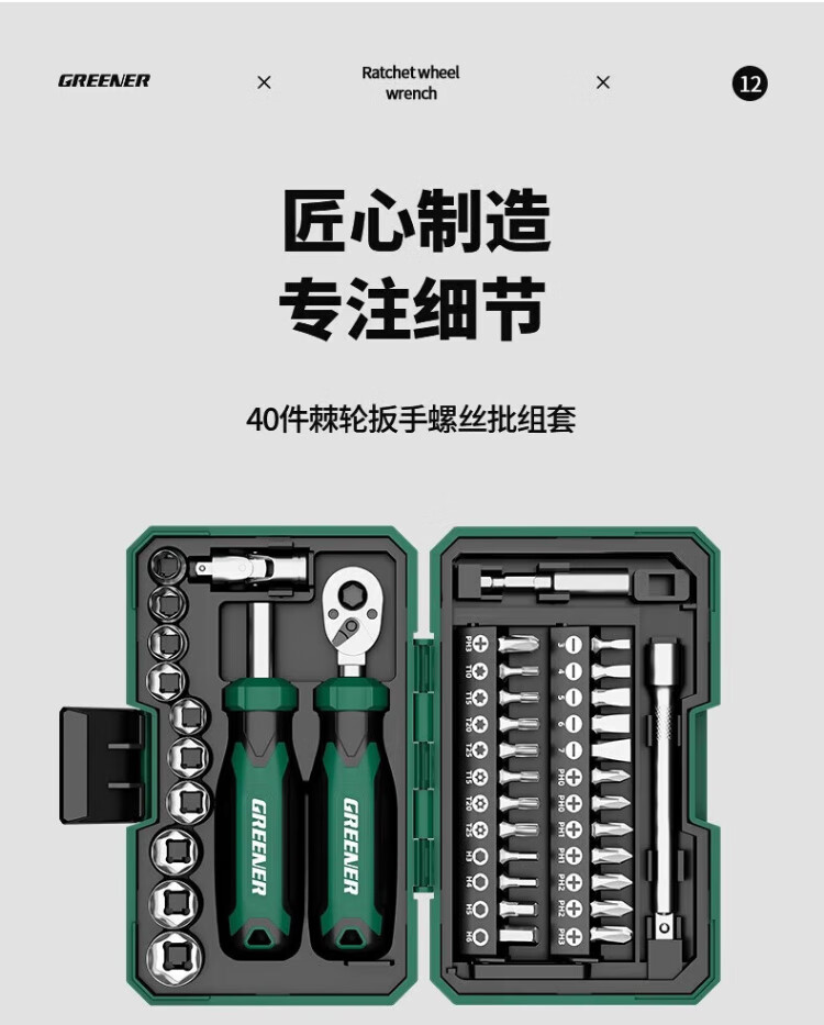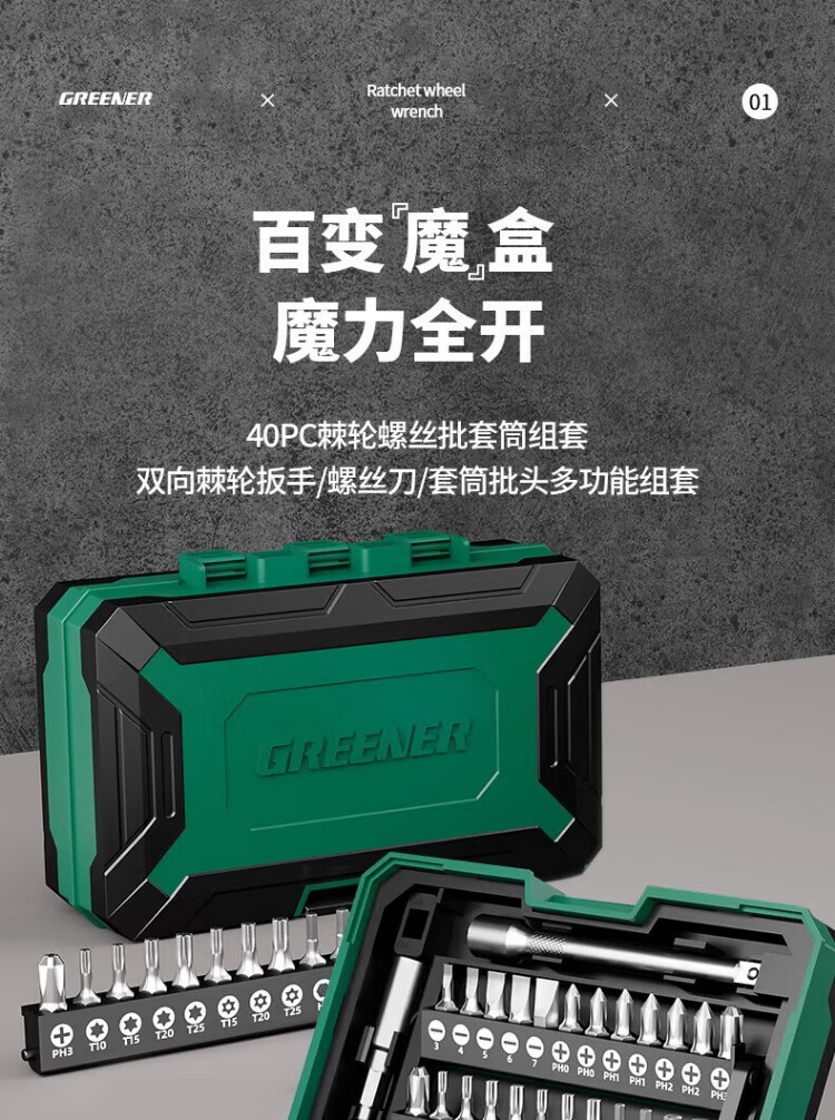 GREENER Knight's Box Ratchet Wrench Set Screwdriver Set Tool Box Motorcycle and Mountain Bike Repair Bit Knight's Box 40-piece Ratchet Wrench Set