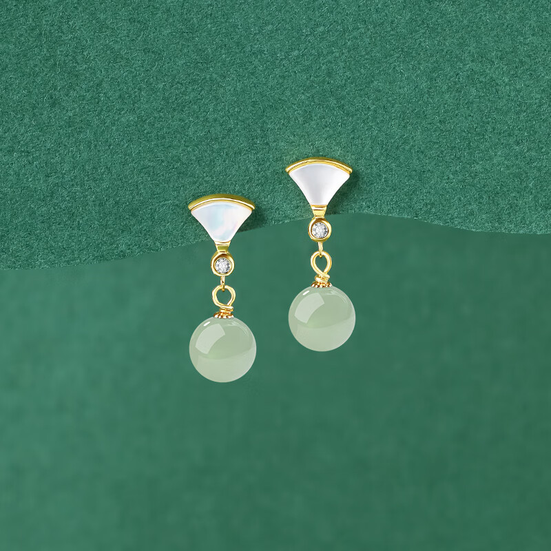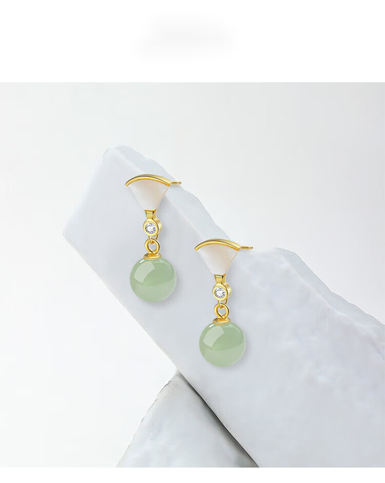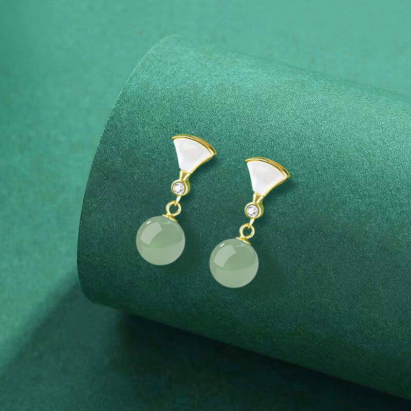 Flash engraved fan-shaped earrings for women, new trendy style, versatile, light luxury birthday gift, antique style earrings for mom and girlfriend for Valentine's Day, golden fan-shaped earrings 8MM