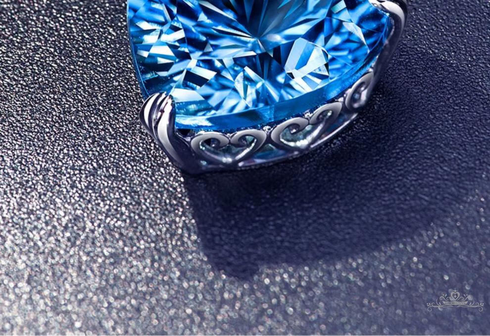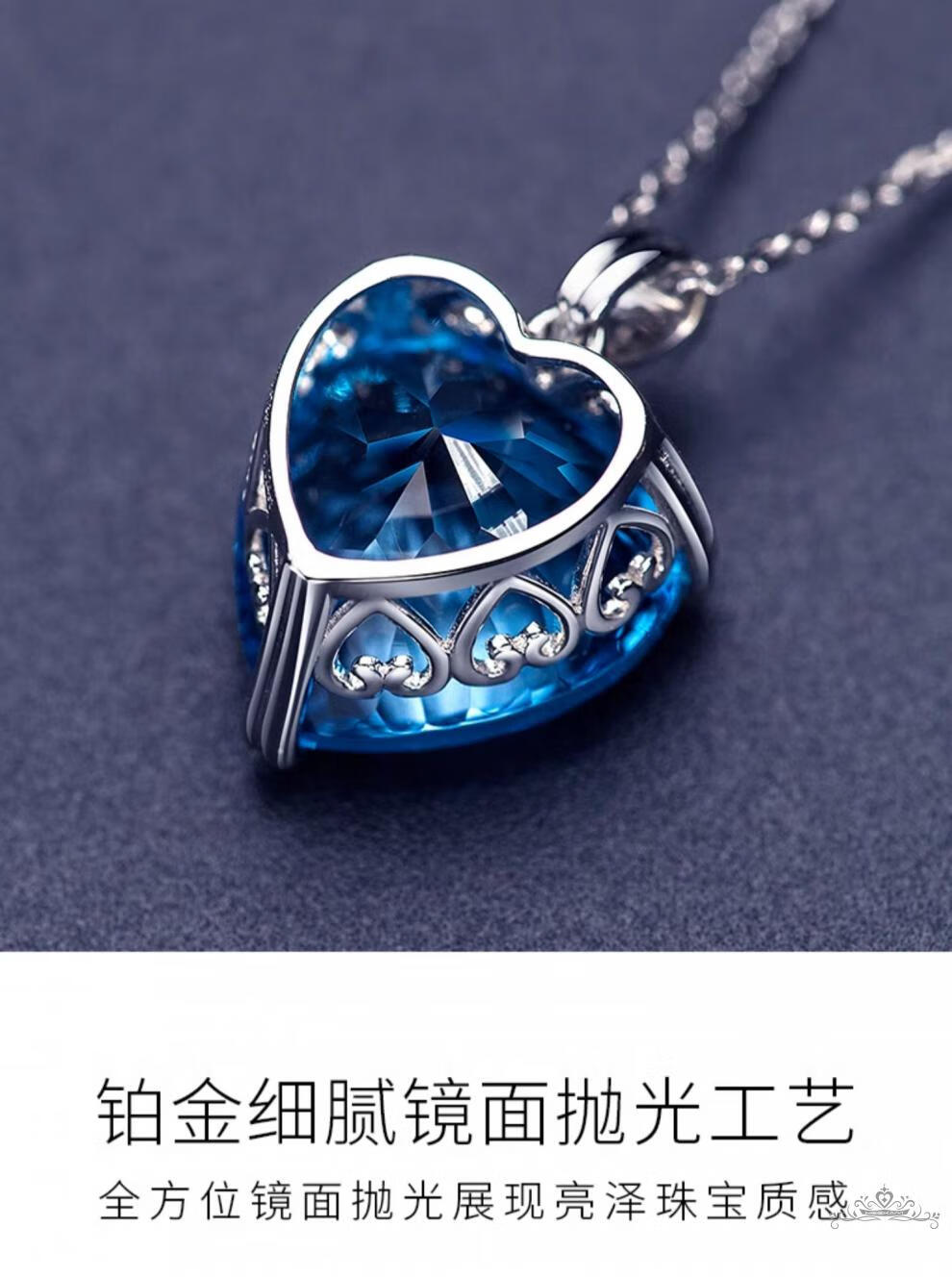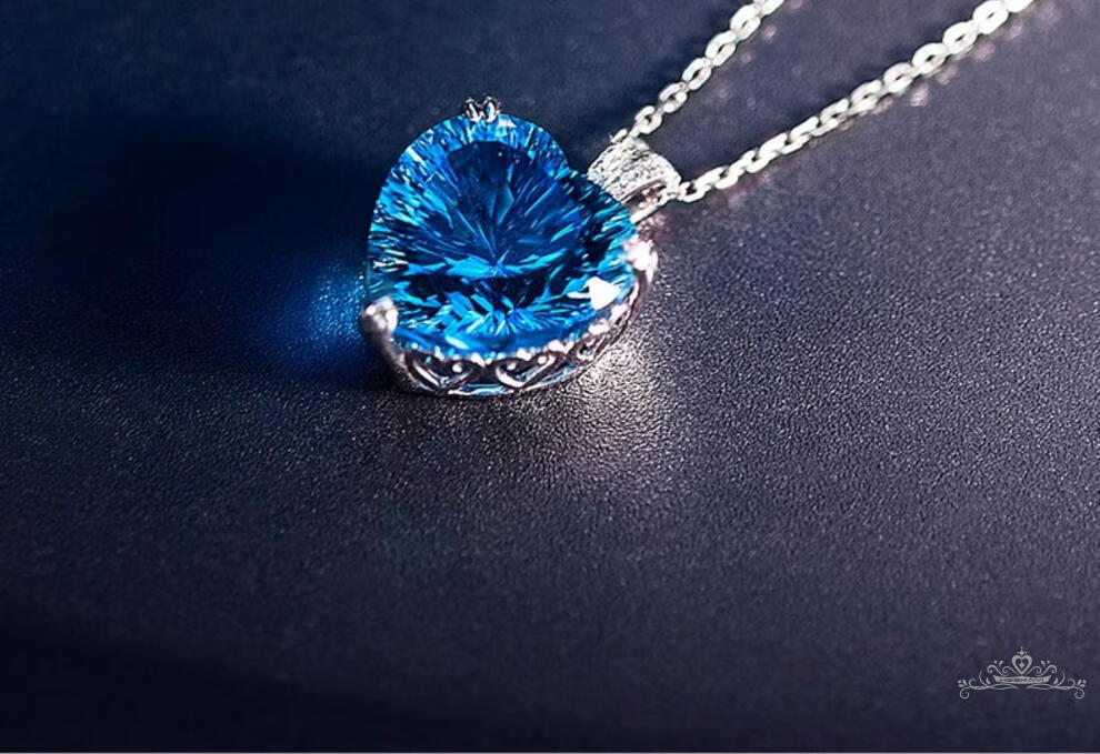 Haikai Necklace Women's Heart of the Ocean Blue Gemstone Necklace Luxury Jewelry Valentine's Day Birthday Gift White Gold Topaz Pendant with White Gold Chain