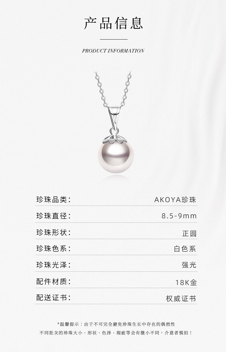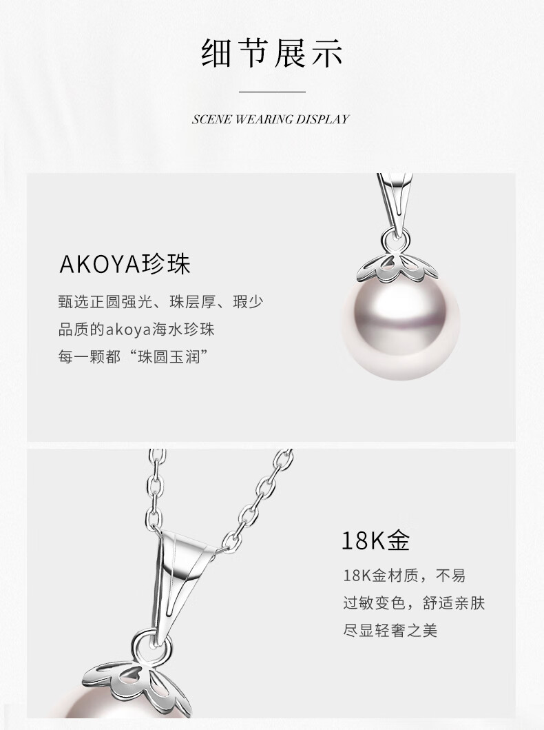 Tahiti akoya pearl pendant 18K gold round highlight seawater pearl necklace necklace akoya 8.5-9mm +925 silver chain
