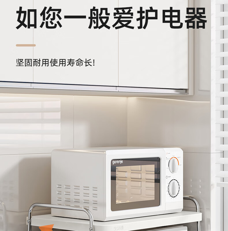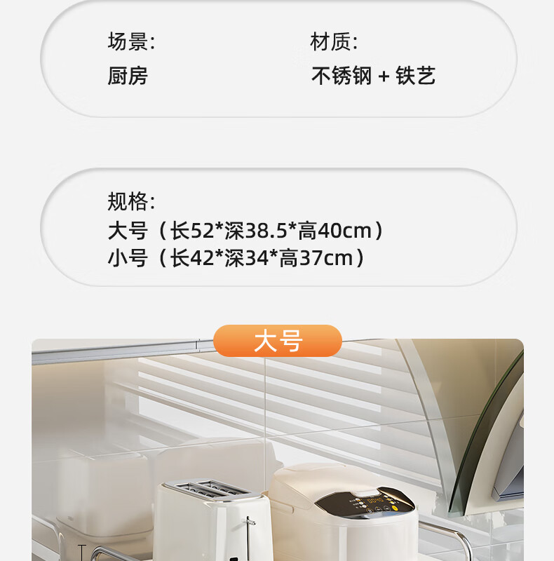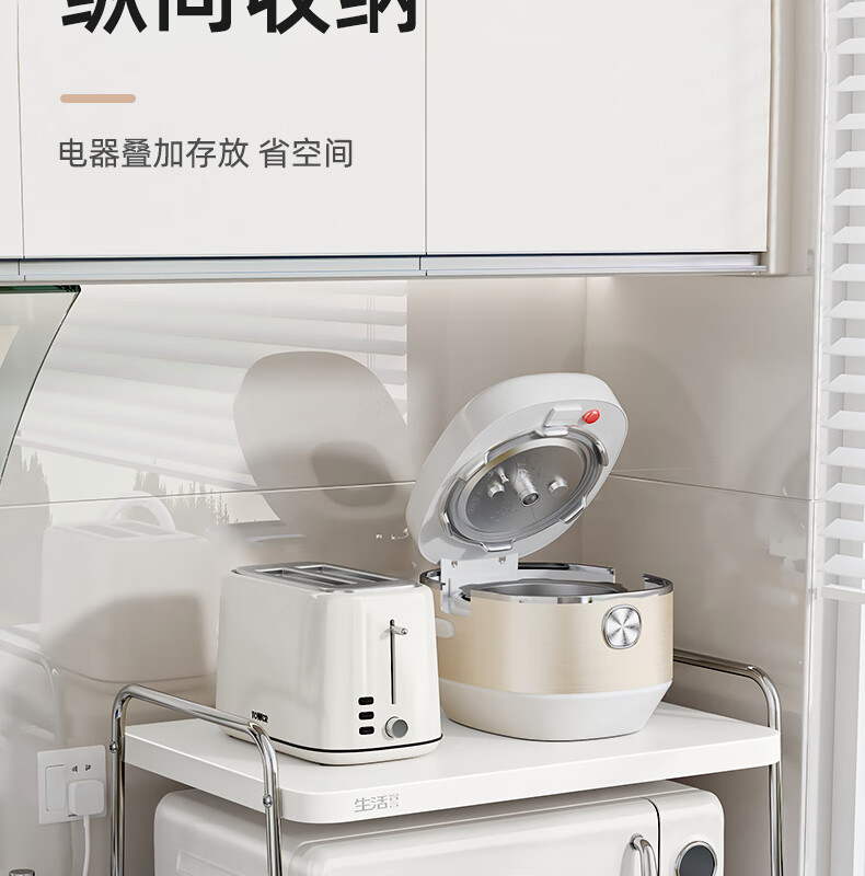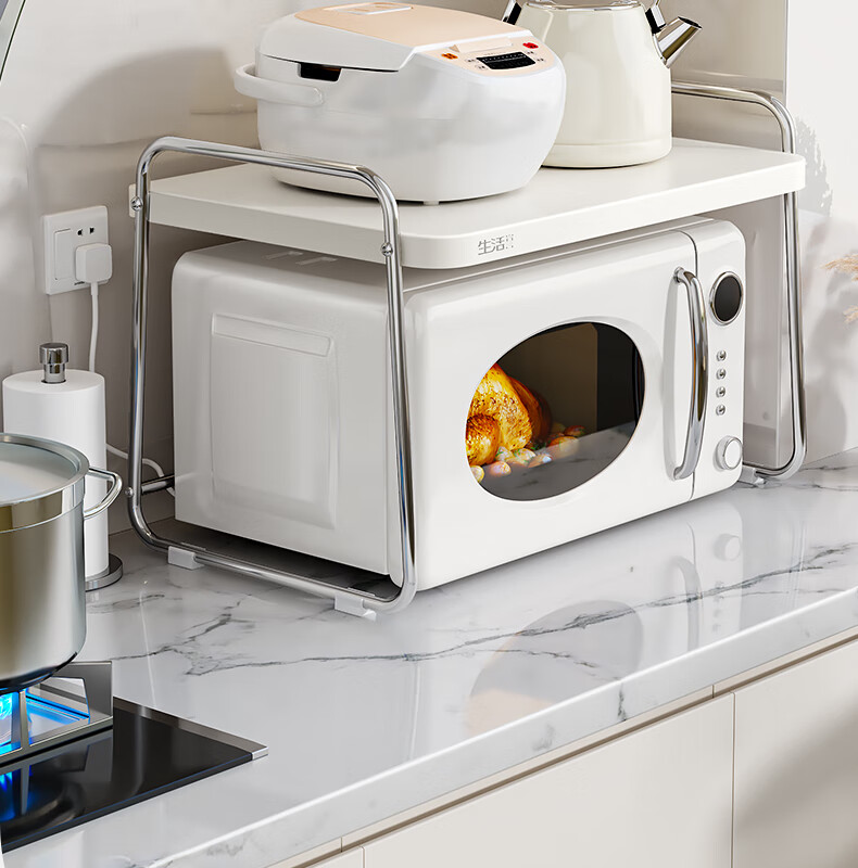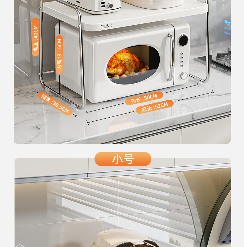 Life Statement Microwave Oven Rack Kitchen Storage Artifact Stove Rice Cooker Oven Electrical Pot Rack Stainless Steel Utensil Bracket Cream Style 52cm Large