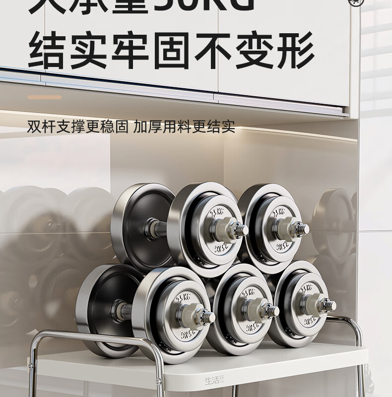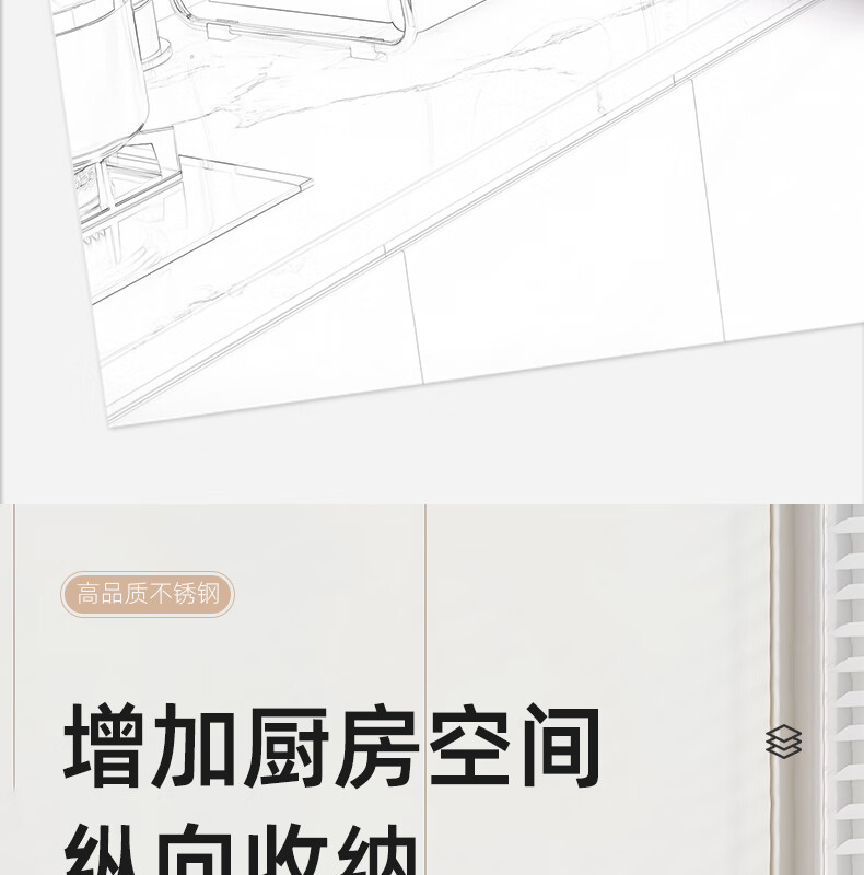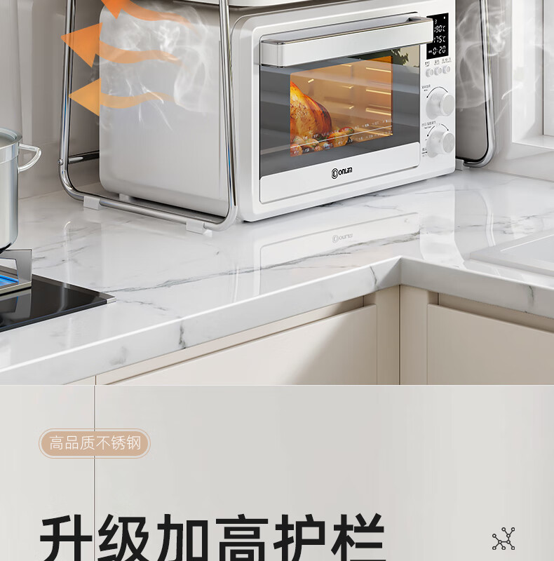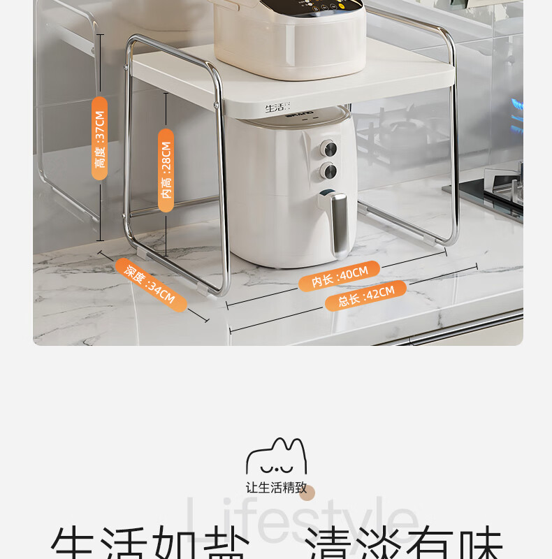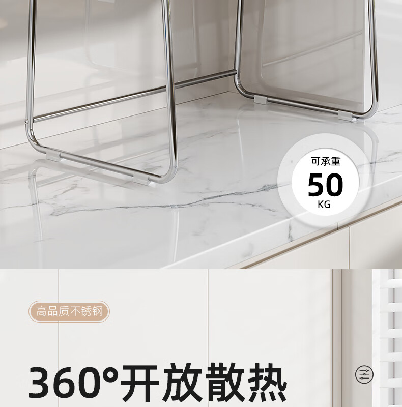 Life Statement Microwave Oven Rack Kitchen Storage Artifact Stove Rice Cooker Oven Electrical Pot Rack Stainless Steel Utensil Bracket Cream Style 52cm Large