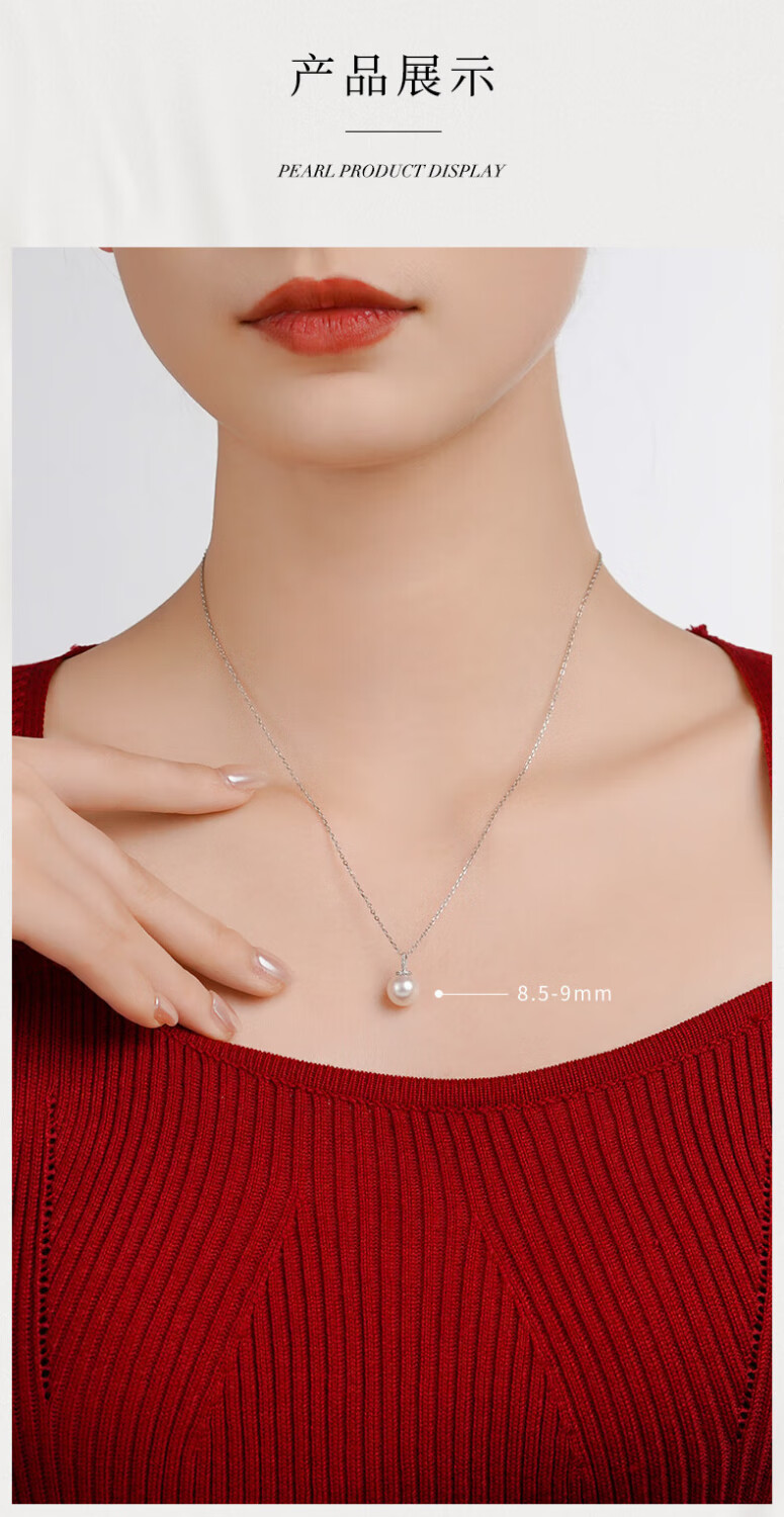 Tahiti akoya pearl pendant 18K gold diamond seawater pearl necklace for girlfriend akoya 8.5-9mm +925 silver chain