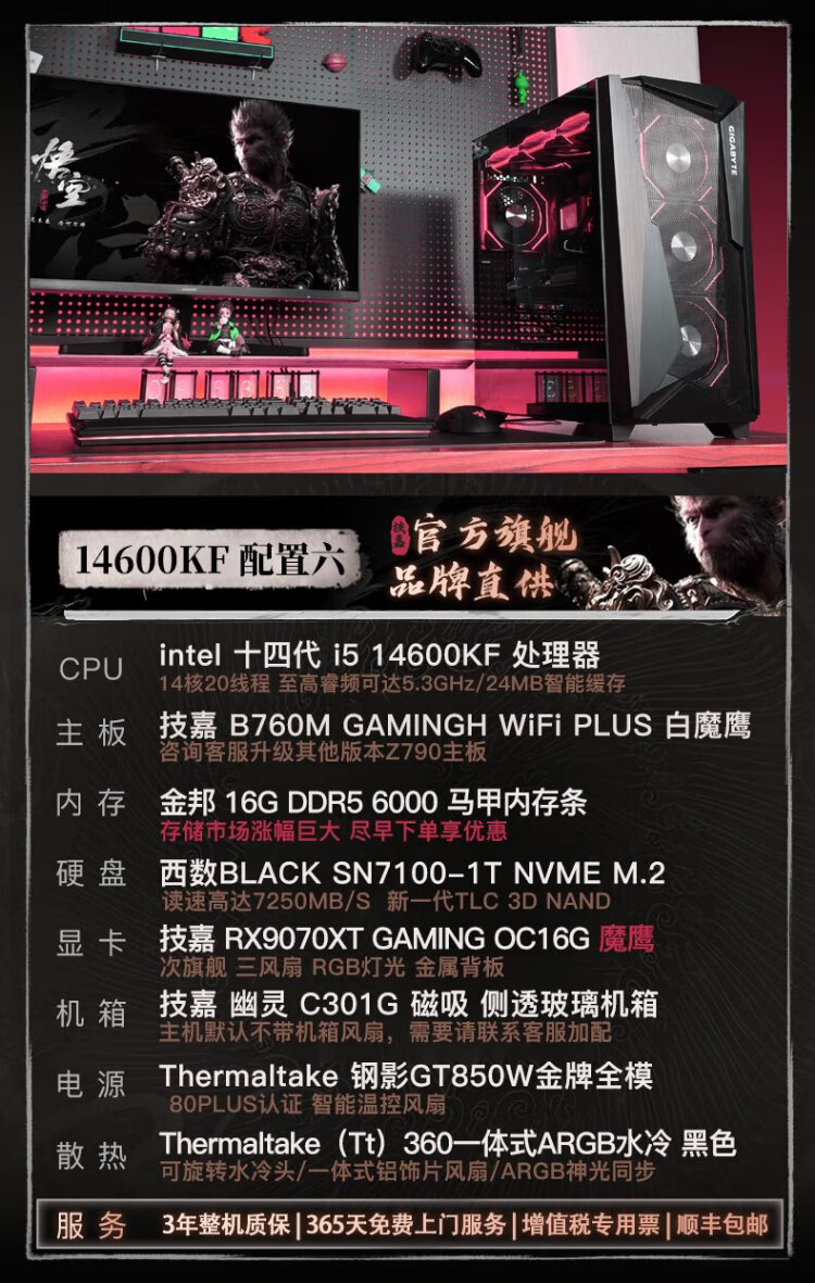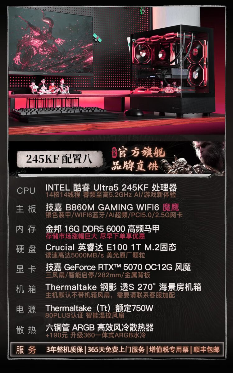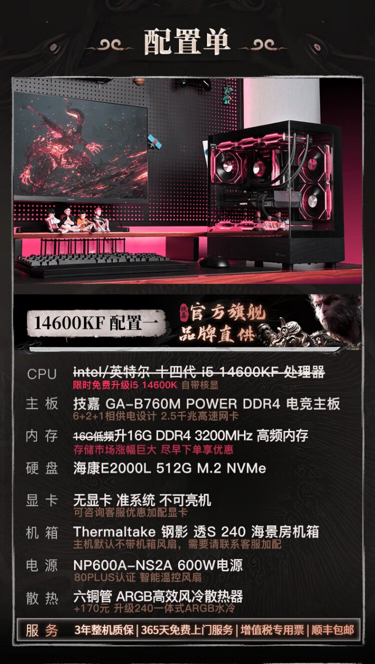 Gigabyte i5 14600KF RTX5060Ti/5070/Ultra5 245KF E-sports game live broadcast design AI sea view room computer host assembly machine Configuration 1 14600KF丨Barebone system