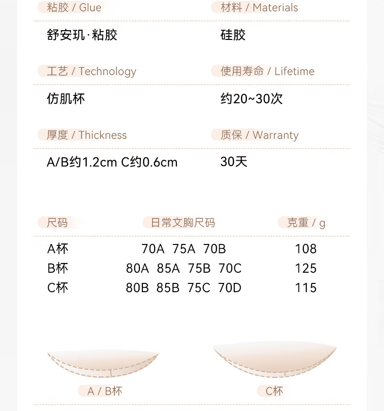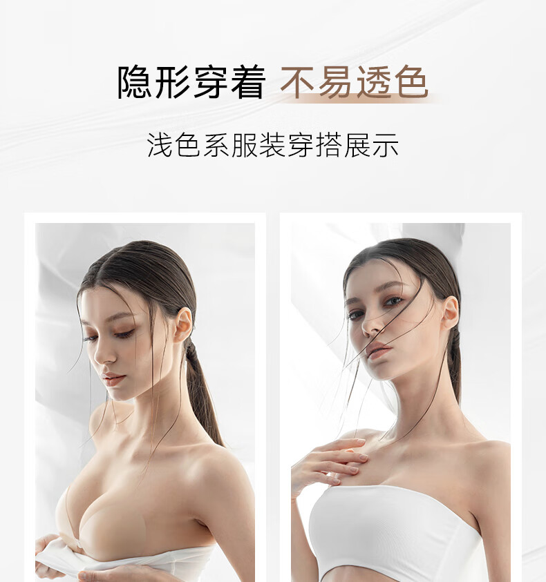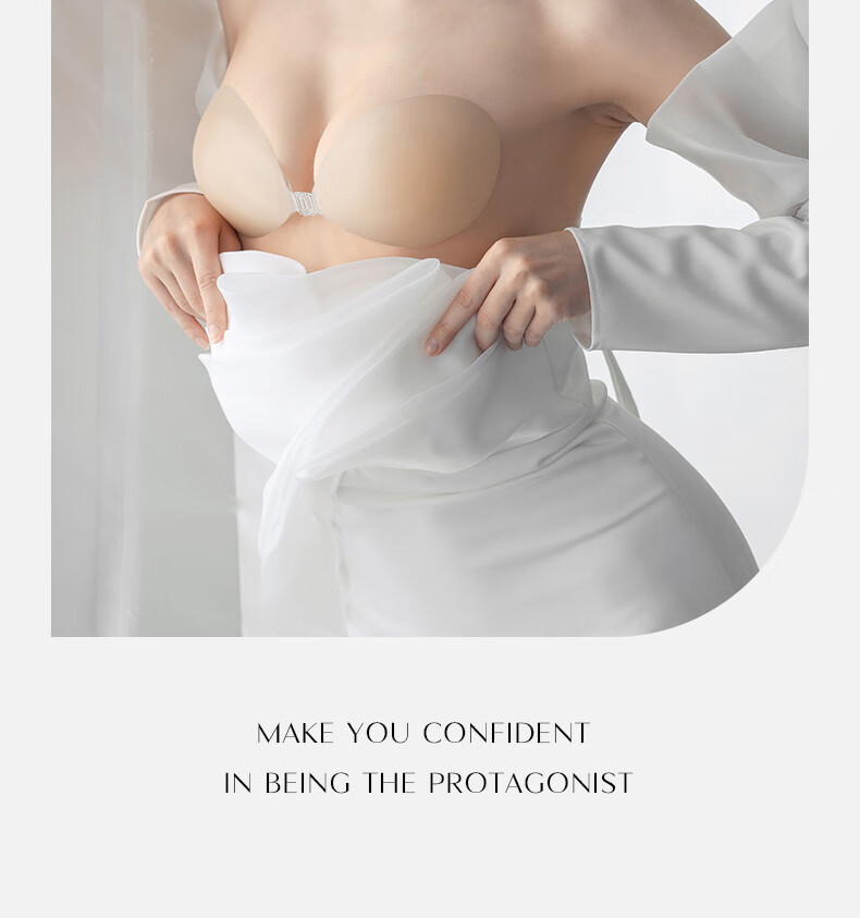 Vcn Pink Muscle Breast Patch Seamless Invisible Silicone Underwear Women's Wedding Sling with Small Breast Gathering and Supporting Breast Patch N02# Warm White and Warm Skin-B Cup