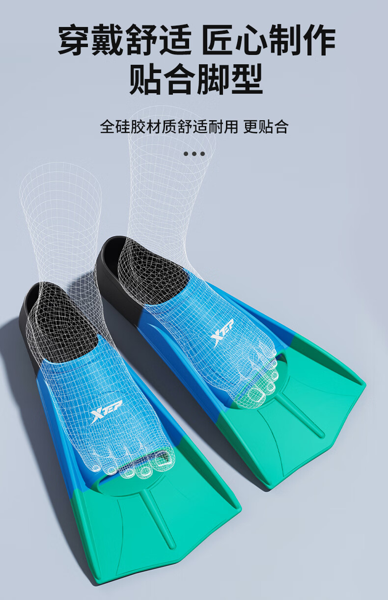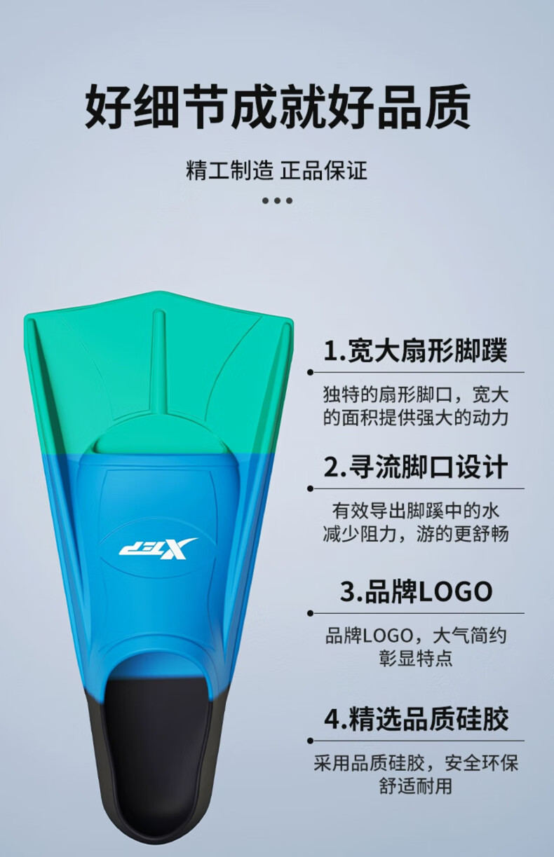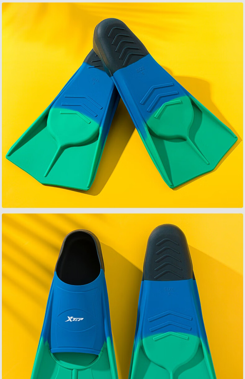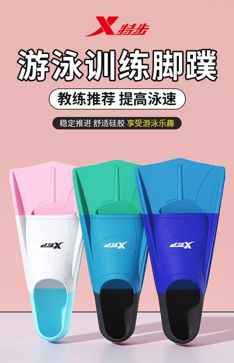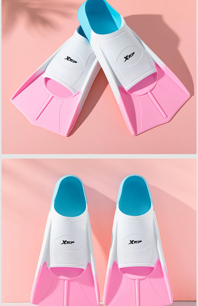 Xtep swimming fins special children's diving training short fins adult freestyle men's and women's breaststroke professional equipment pink and white three colors earplugs nose clip + portable mesh bag XXS recommended shoe size 29-31