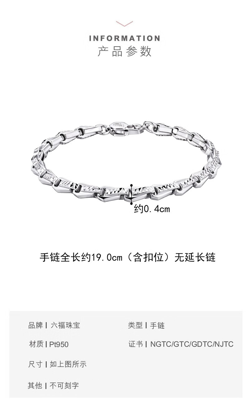 Lukfook Jewelry Platinum 950 Knight Chain Platinum Bracelet Men's Price F63TBPB0009 14.97g (including labor cost 1213 yuan)
