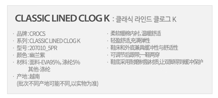 Crocs (CROCS) Girls' Crocs, Warm and Comfortable Children's Winter Cotton Slippers, Casual Sandals and Slippers 207010_5PR Orchid Purple 37-38 Inner Length About 234mm