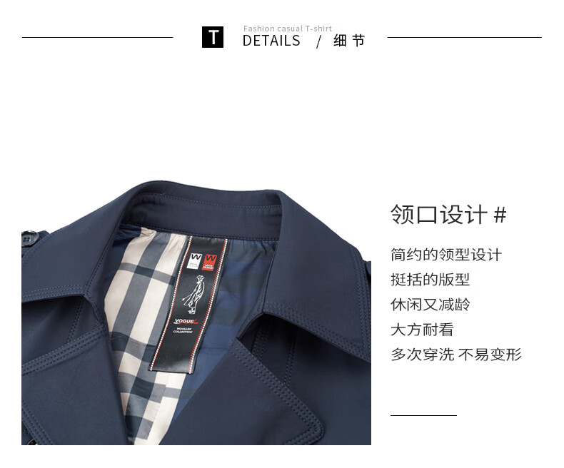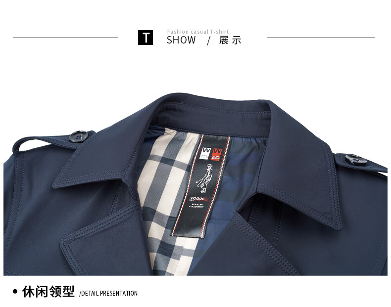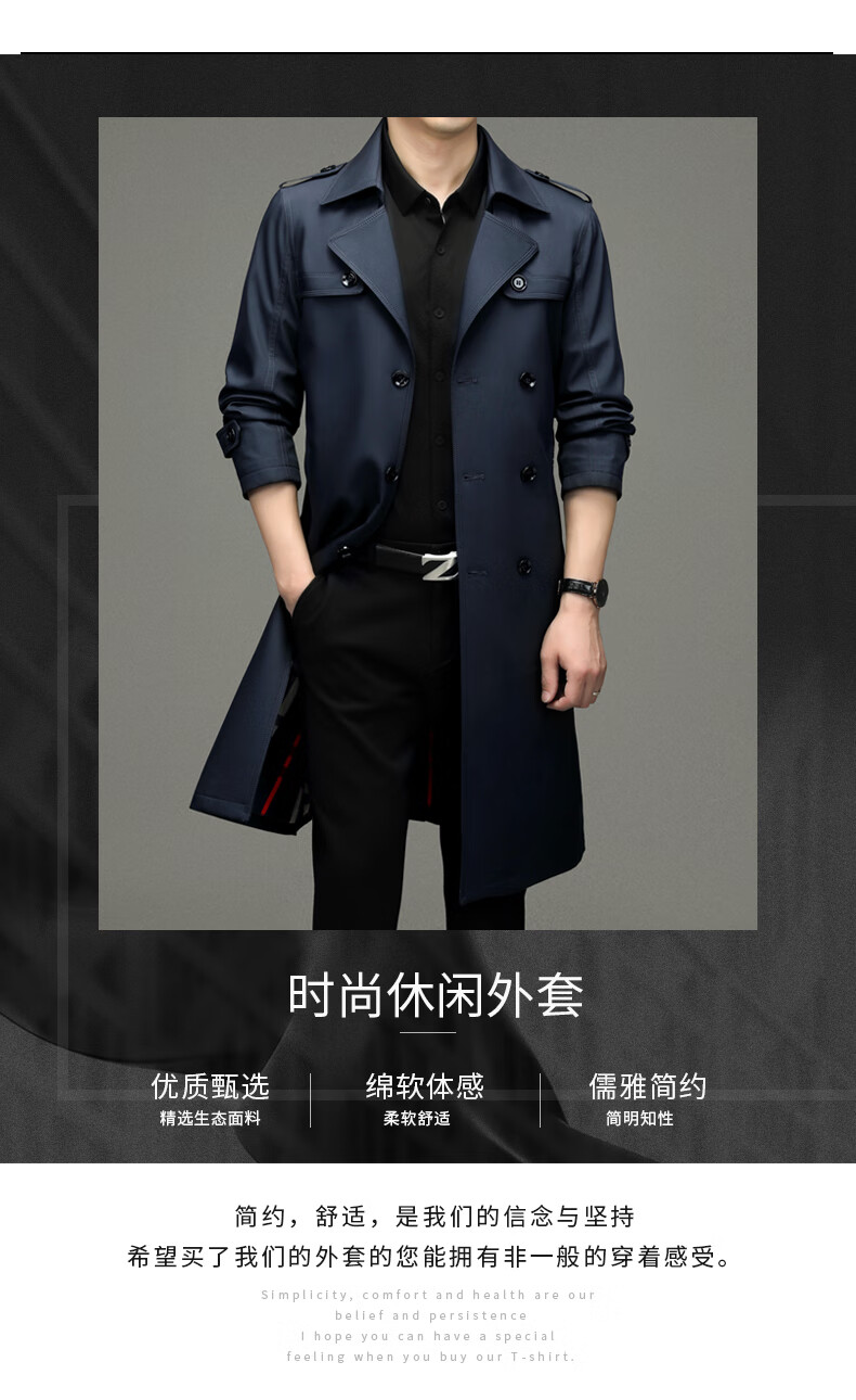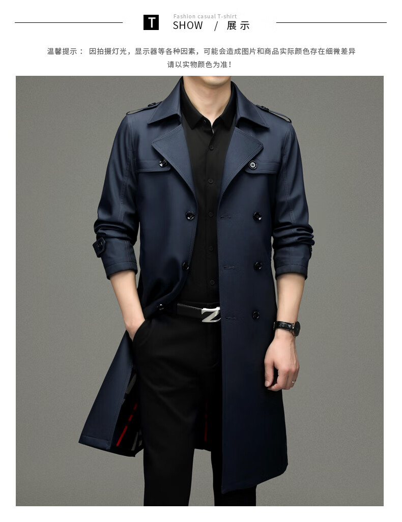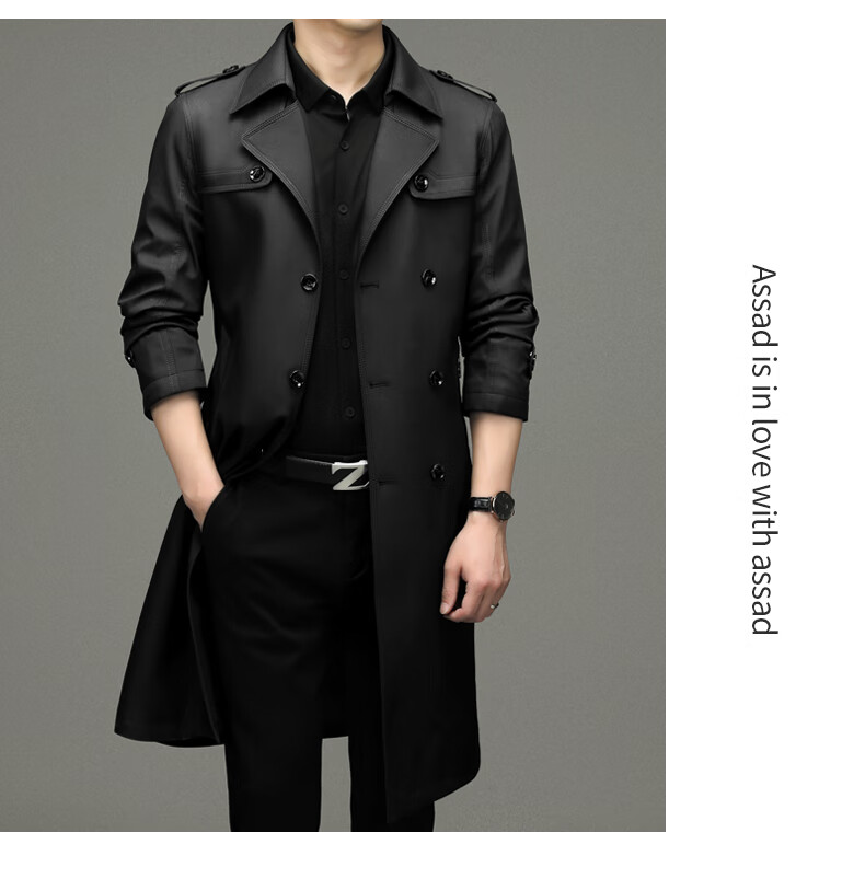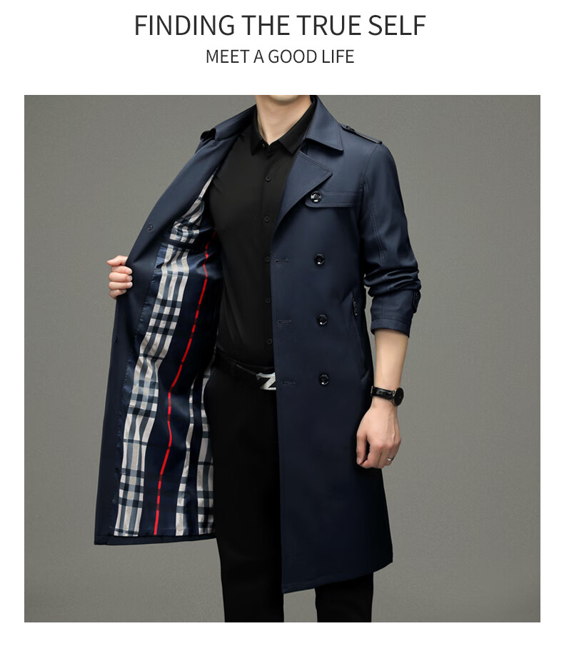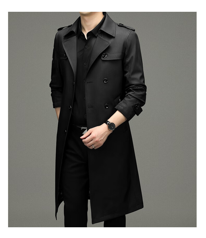 Pierre Cardin Men's Mid-Length Windbreaker Jacket 2025 Autumn New Business Casual Spring and Autumn Long Lapel Jacket Khaki XL Recommended 140-160Jin Jin equals 0.5 kg