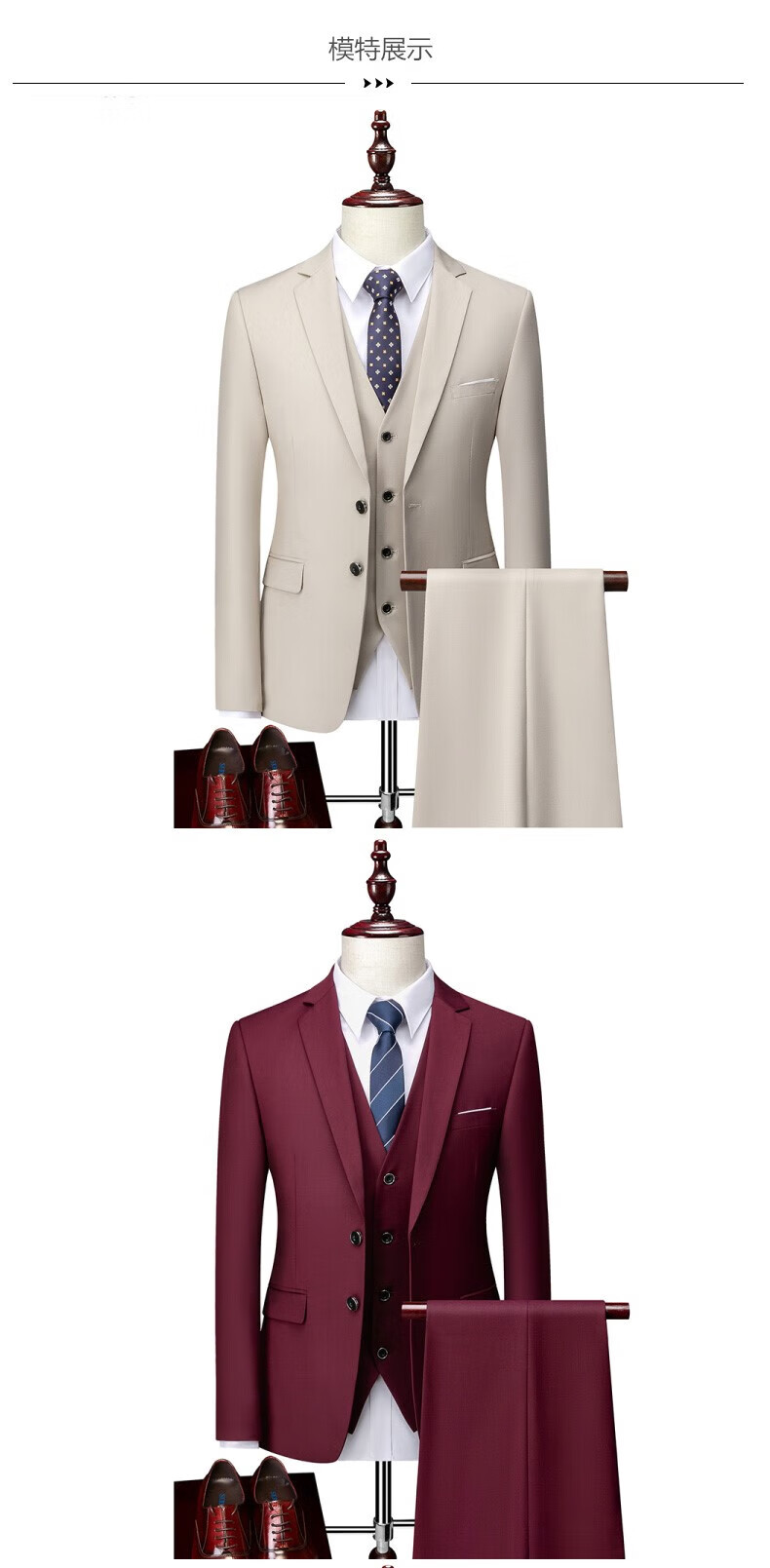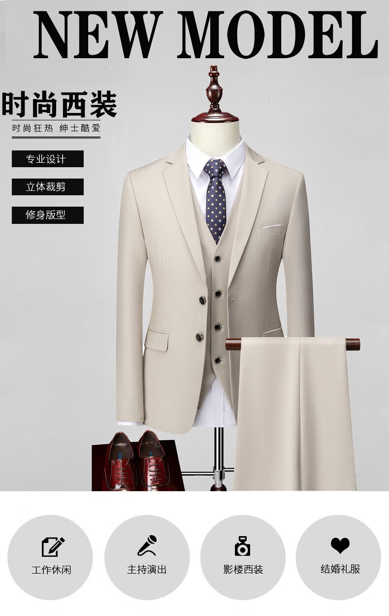 ROMON Men's Suit Suit Professional Formal Korean Style Slim Groom Wedding Dress Groomsmen Suit Business Casual Suit Spring Apricot Two-piece Top + Trousers M