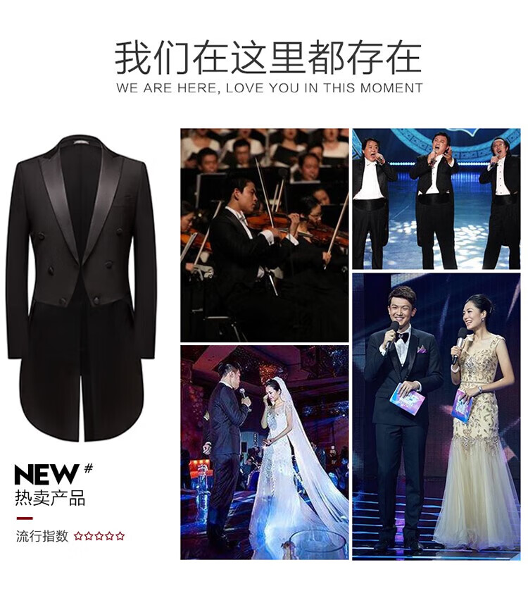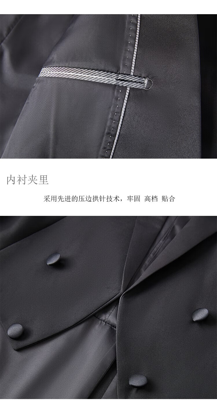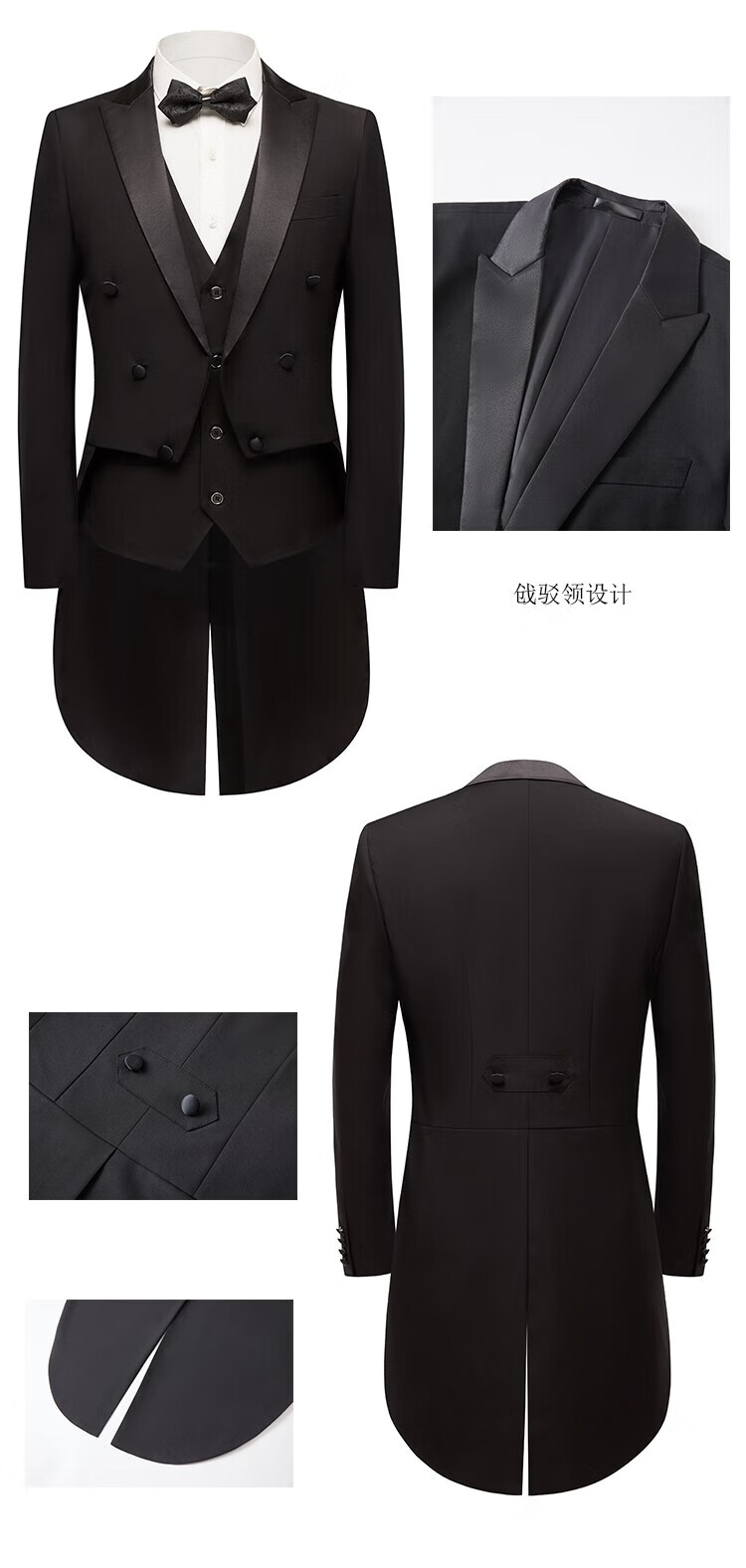 ROMON Men's Tuxedo Slim Suit Suit Stage Performance Chorus Host Groom Wedding Banquet Conductor Suit Black Suit+Pants+Vest Waist Tie 2XL