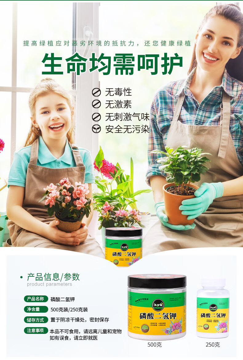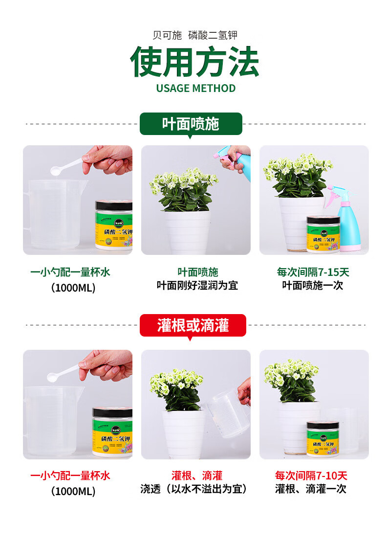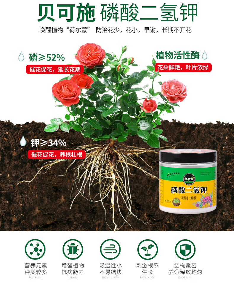 Beikeshi potassium dihydrogen phosphate flower fertilizer flower potassium fertilizer foliar fertilizer phosphate fertilizer agricultural fully water-soluble Beikeshi national standard organic flower fertilizer potassium dihydrogen phosphate 500g * 1 bottle