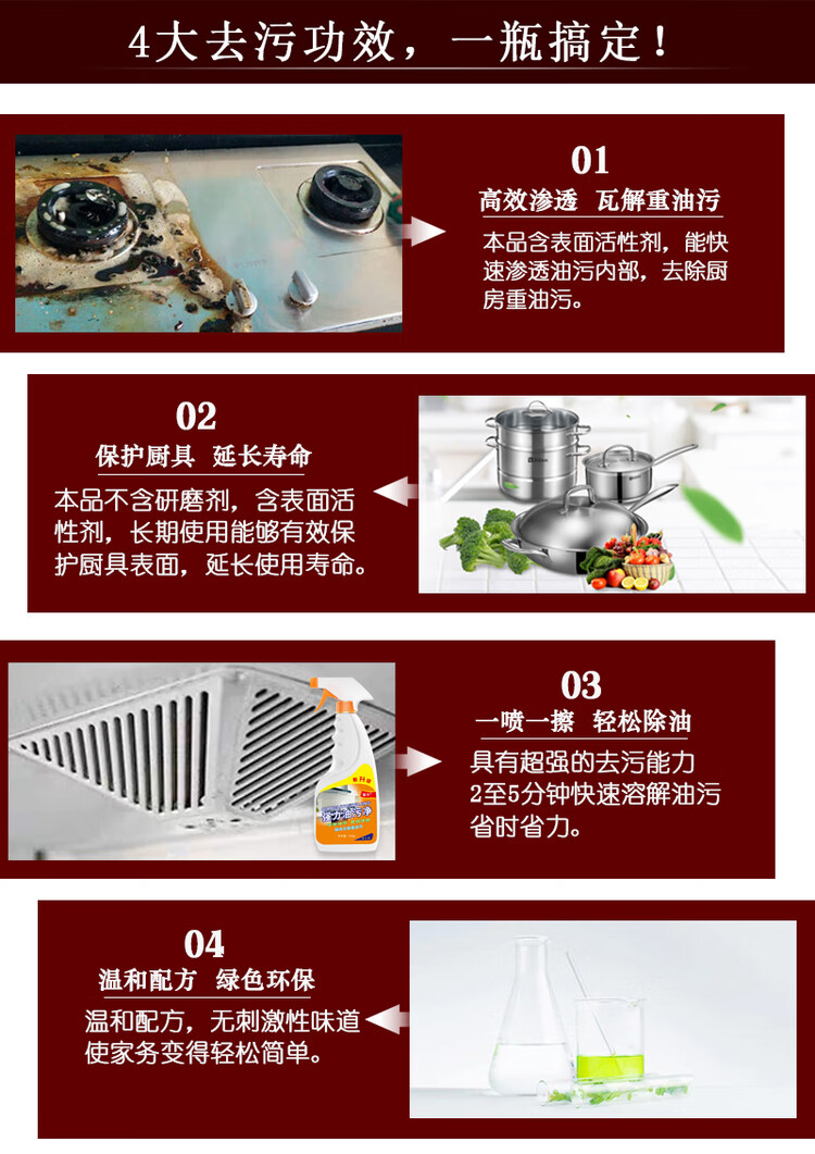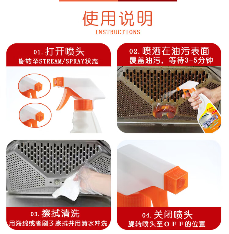 Zaibai range hood cleaner powerful kitchen degreasing cleaning agent net heavy oil descaling and oil fume cleaning artifact 2 bottles each bottle 1 nozzle 500ml