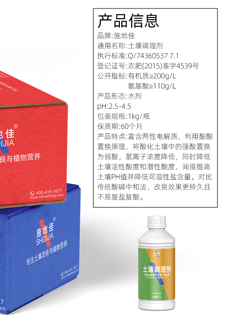 Подкисленный кондиционер для почвы Shidijia, разрыхляющая эссенция, без глубокой вспашки, закаливание, капельное орошение, укоренение, высшие саженцы, кислое удобрение-кондиционер, подкисленный кондиционер для почвы 1 кг * 1 бутылка