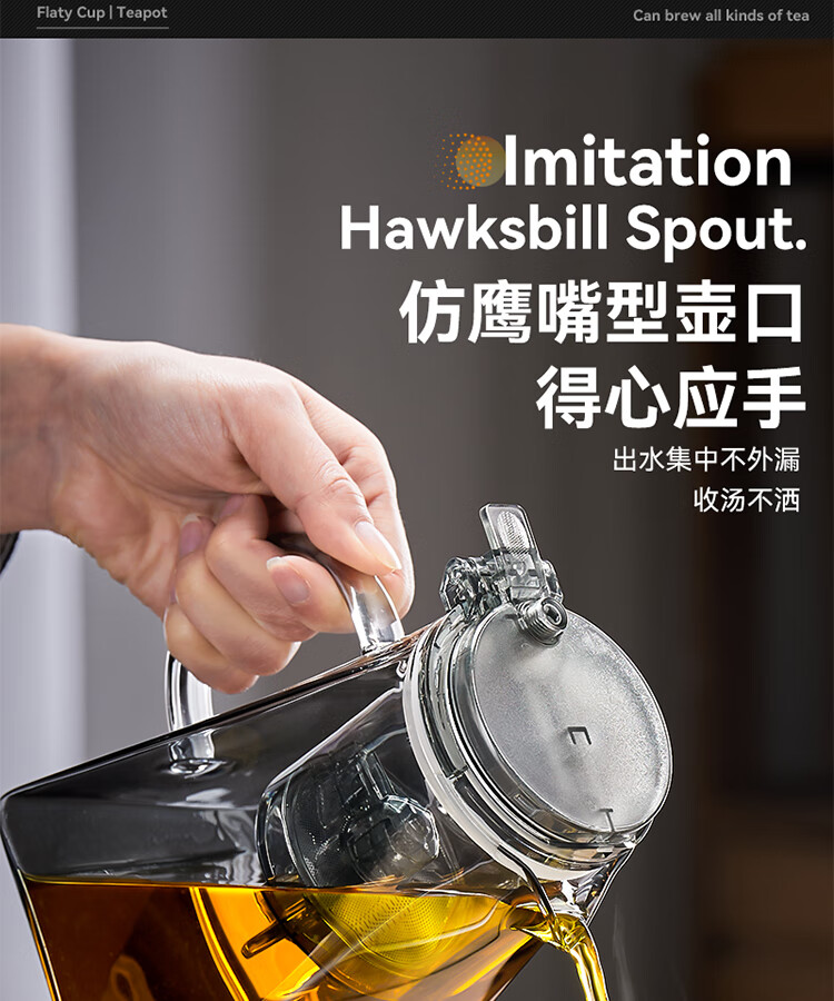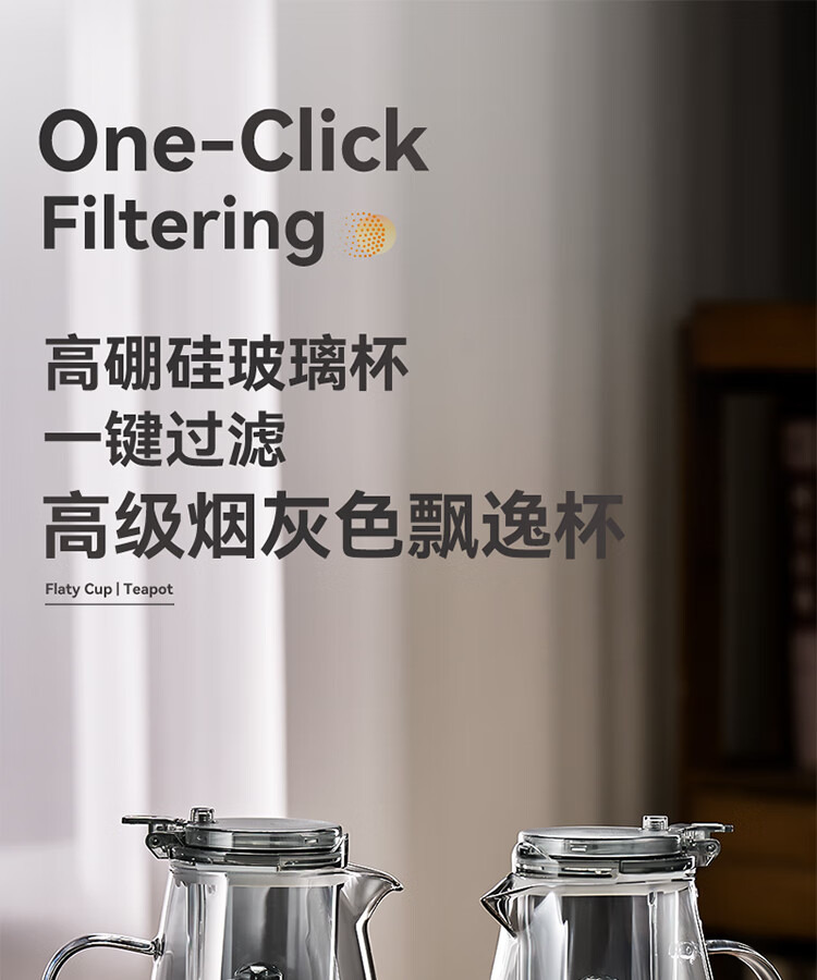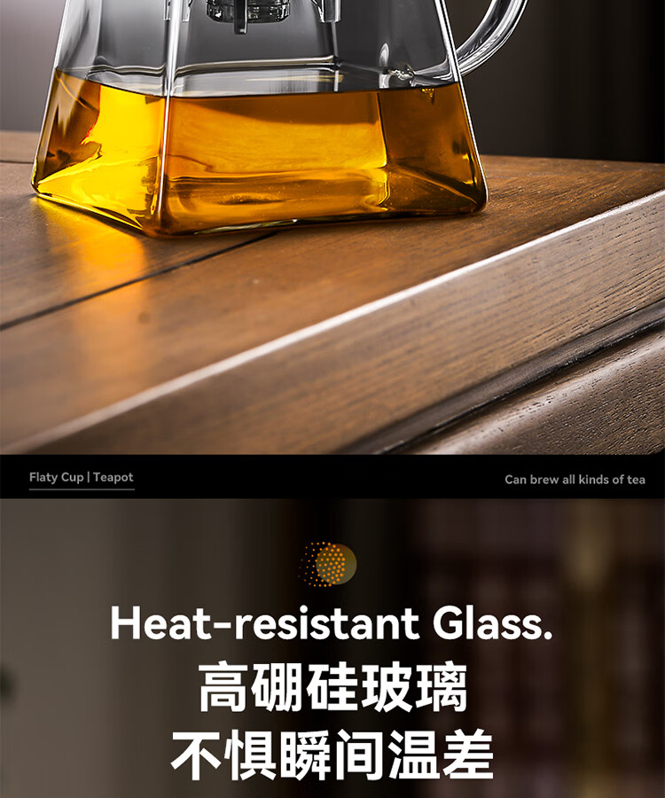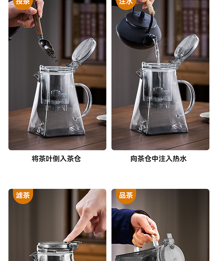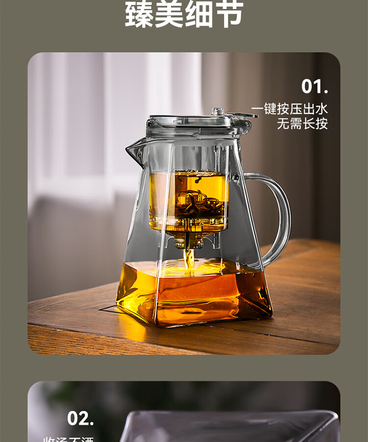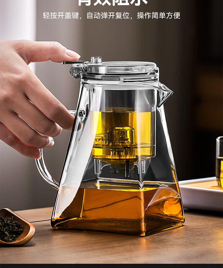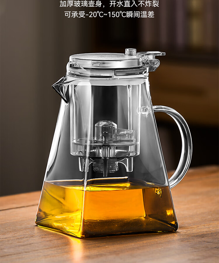 Tianxi (TIANXI) elegant cup teapot household teapot tea water separation cup lazy tea set glass high temperature tea set square gray style 730ml