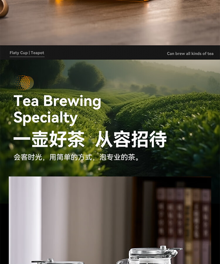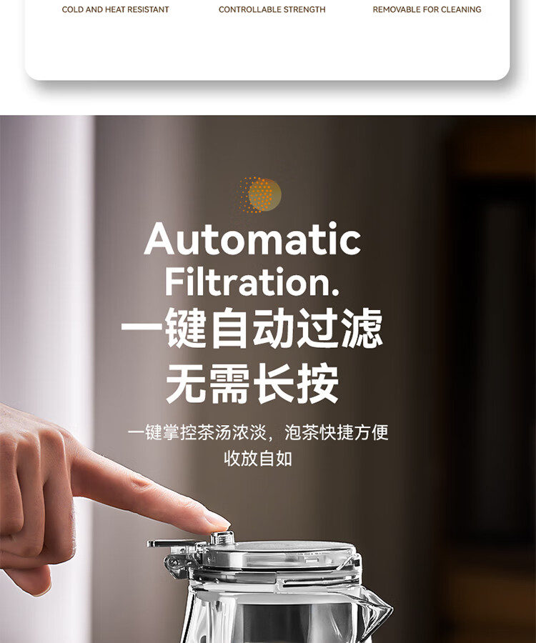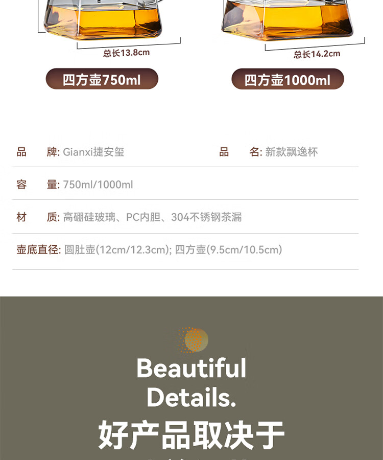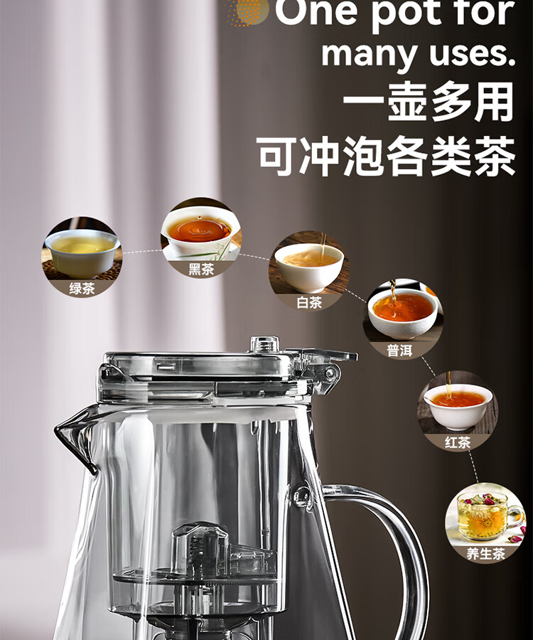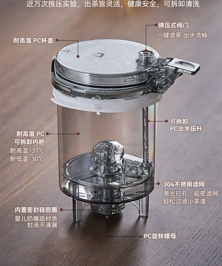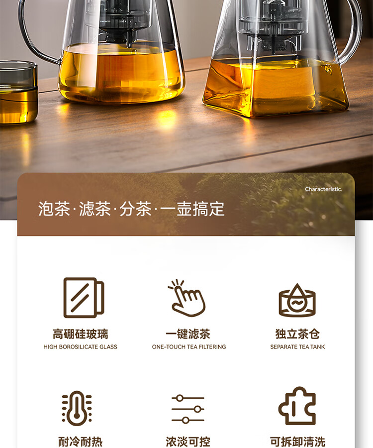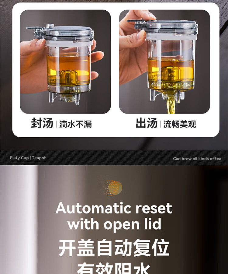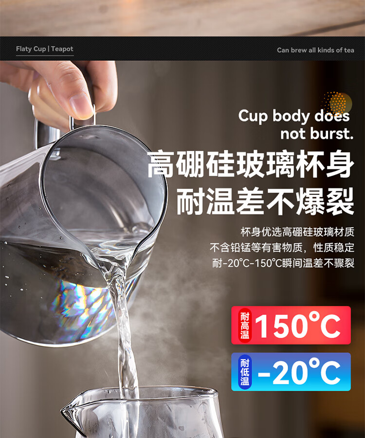 Tianxi (TIANXI) elegant cup teapot household teapot tea water separation cup lazy tea set glass high temperature tea set square gray style 730ml