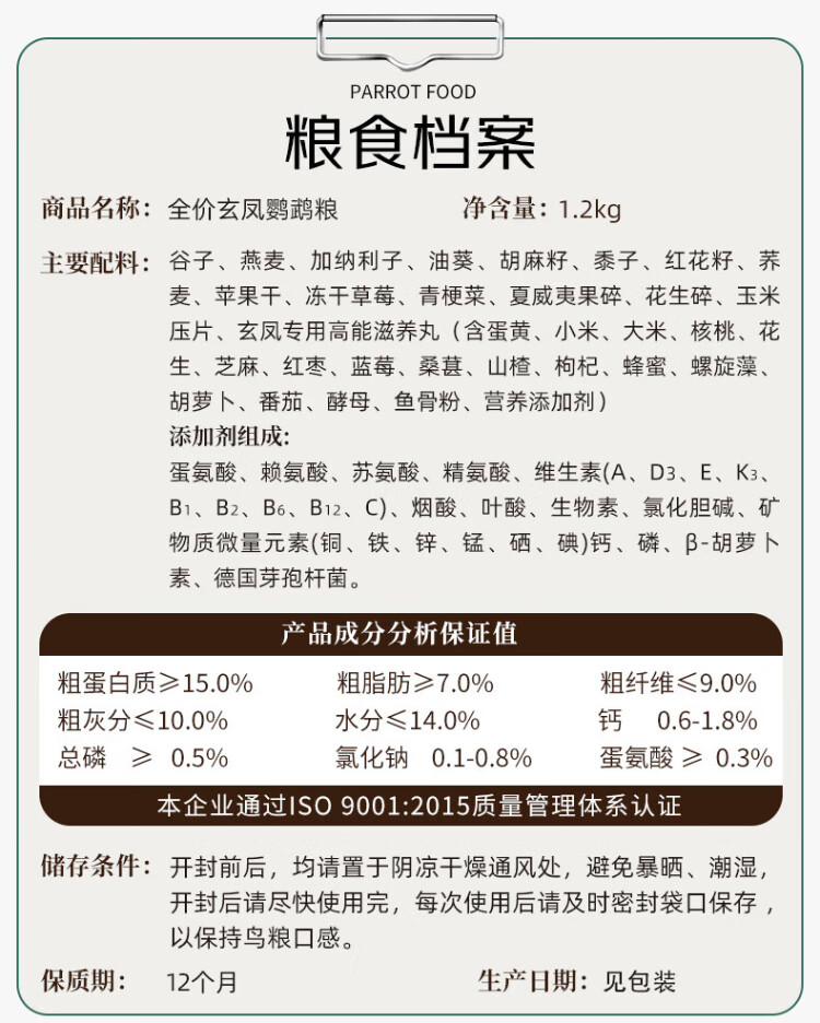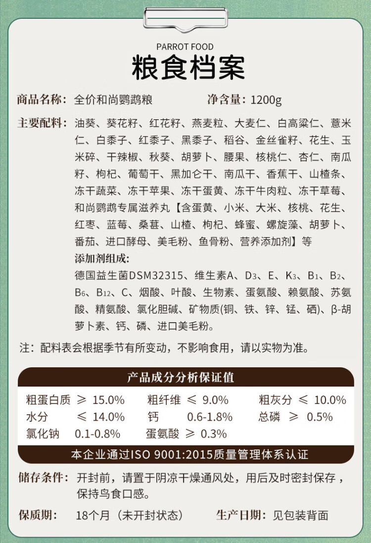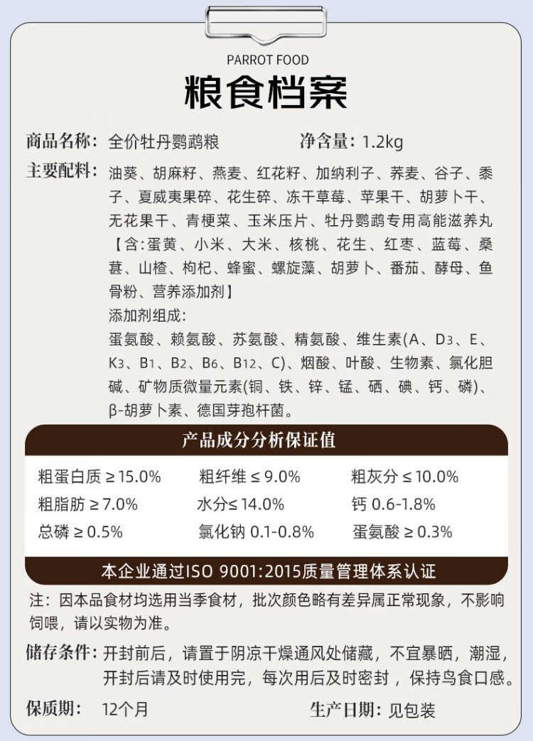 Kaiyuan full price bird food Jixingren series parrot feed nutritional bird food bird food monk parrot food 1.2kg