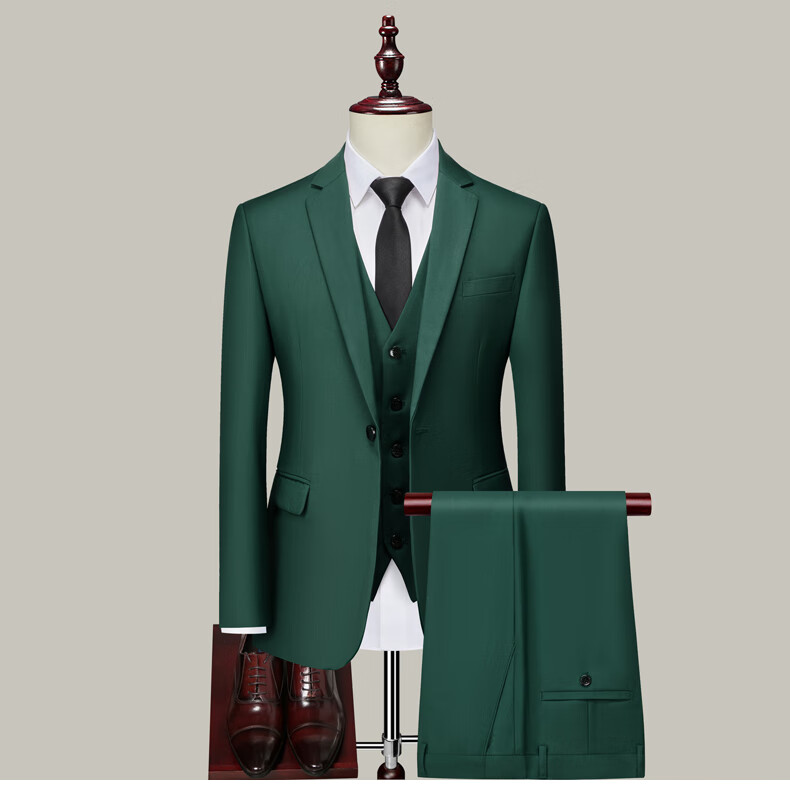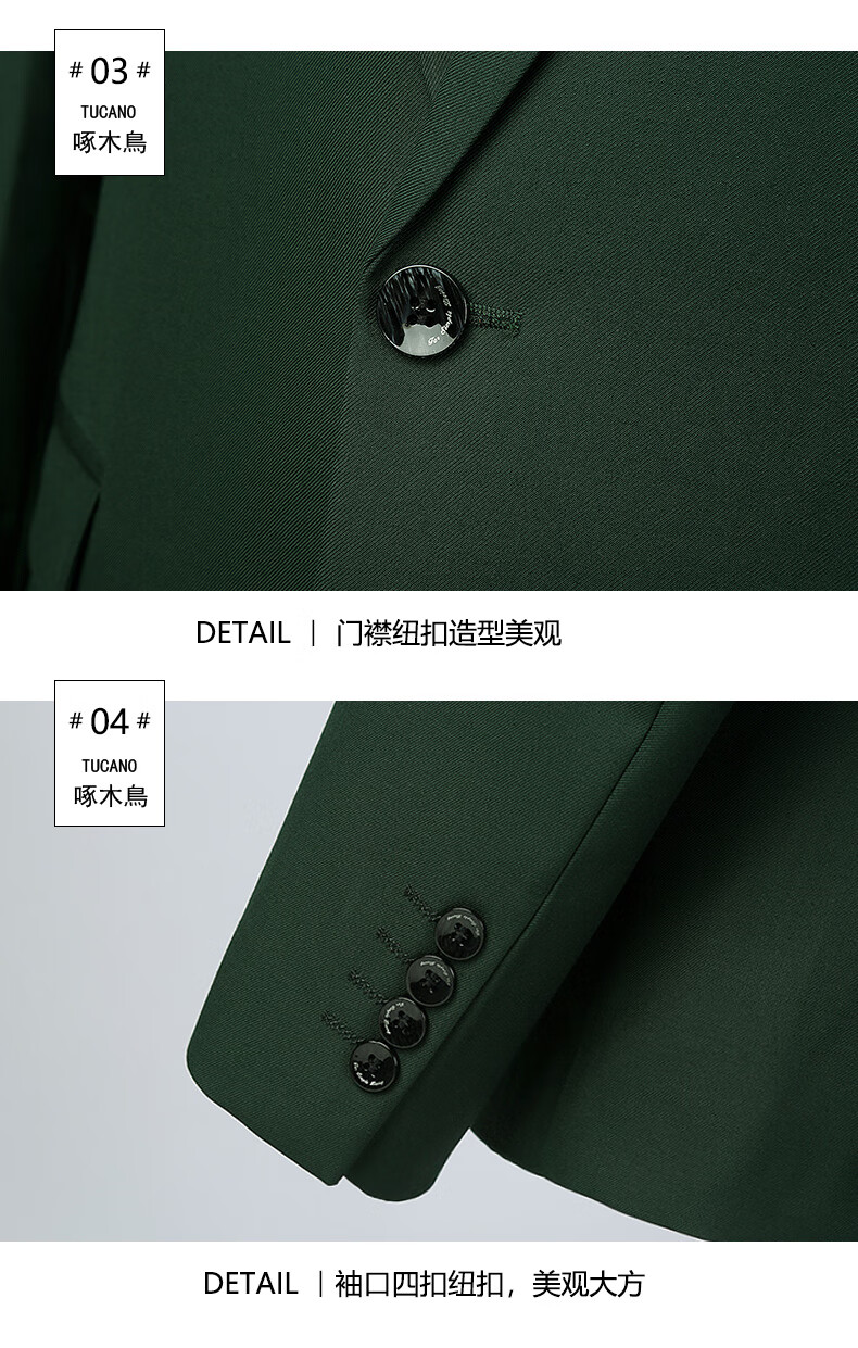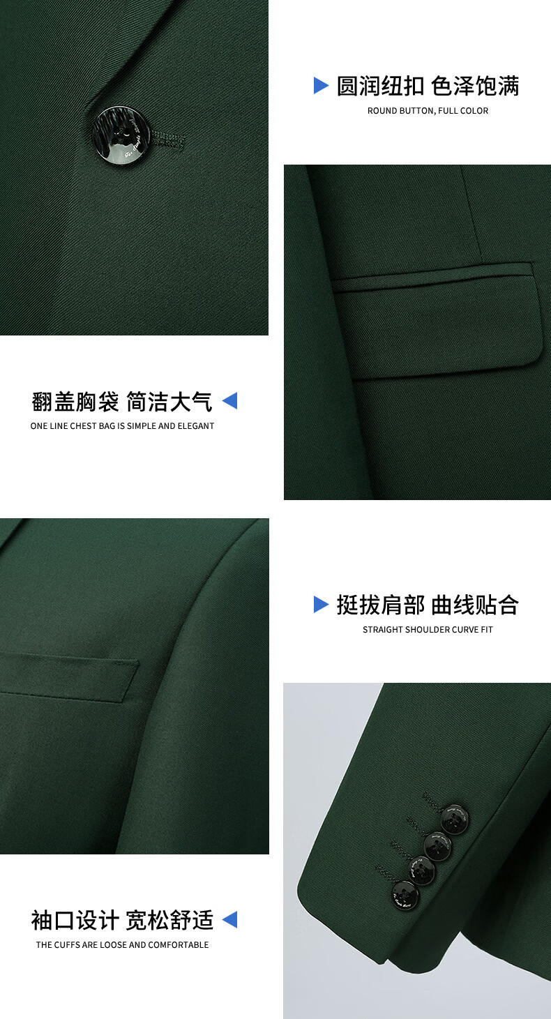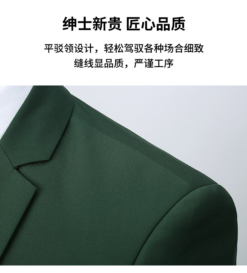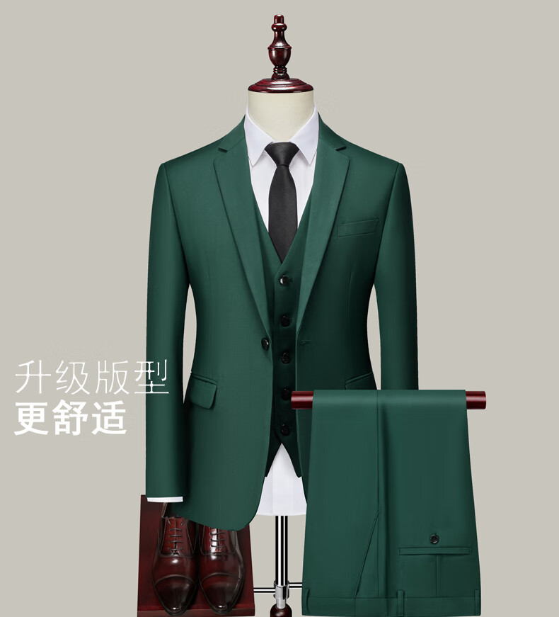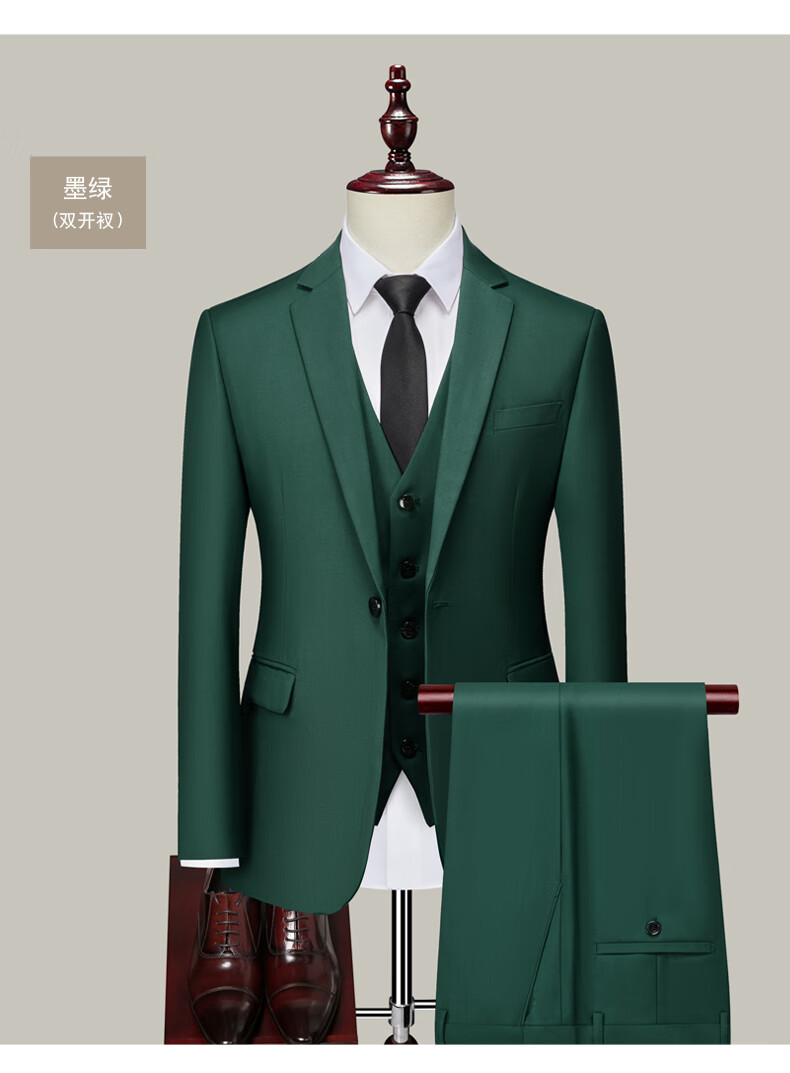 ROMON suit men's dark green Korean style slim three-piece suit dress fashion trend handsome dark green suit + trousers + vest XL 180 weight 140-155Jin Jin equals 0.5 kg