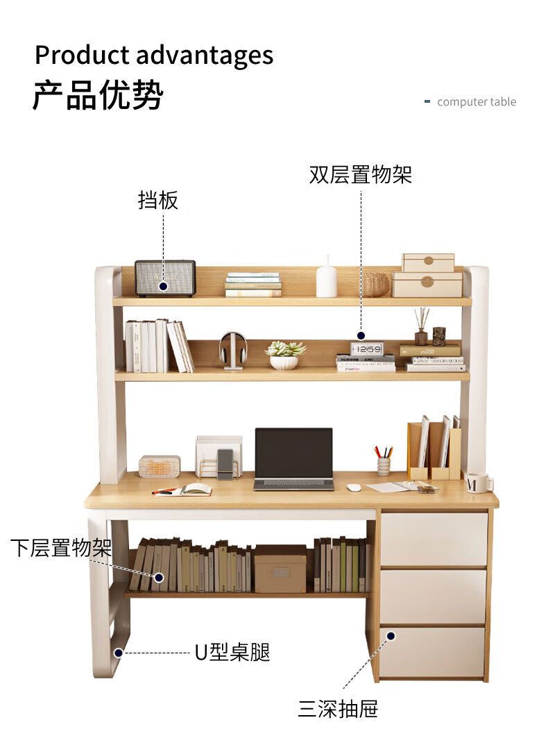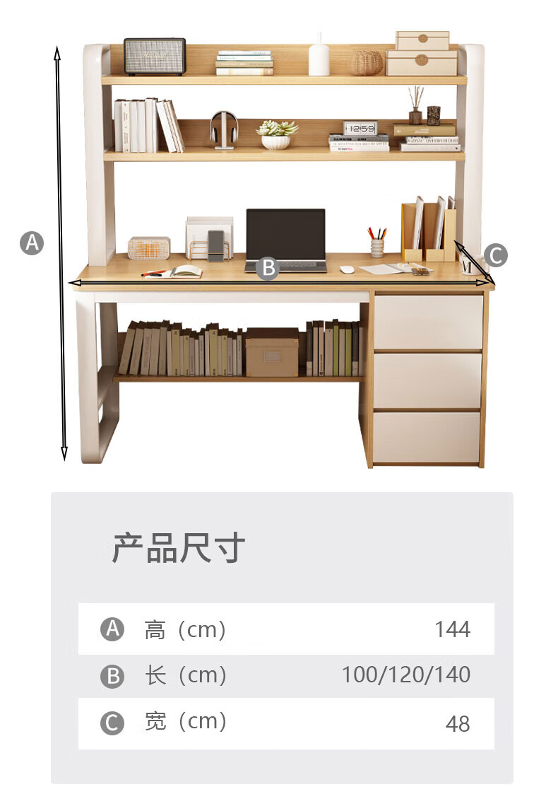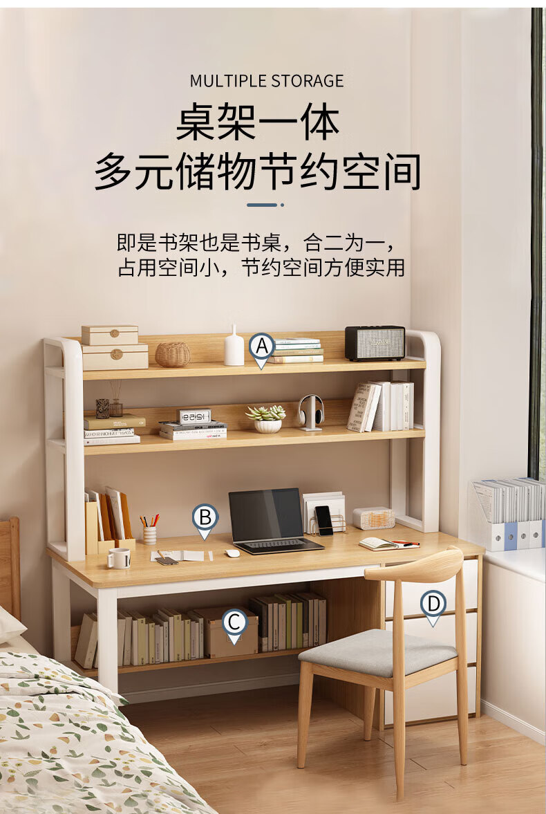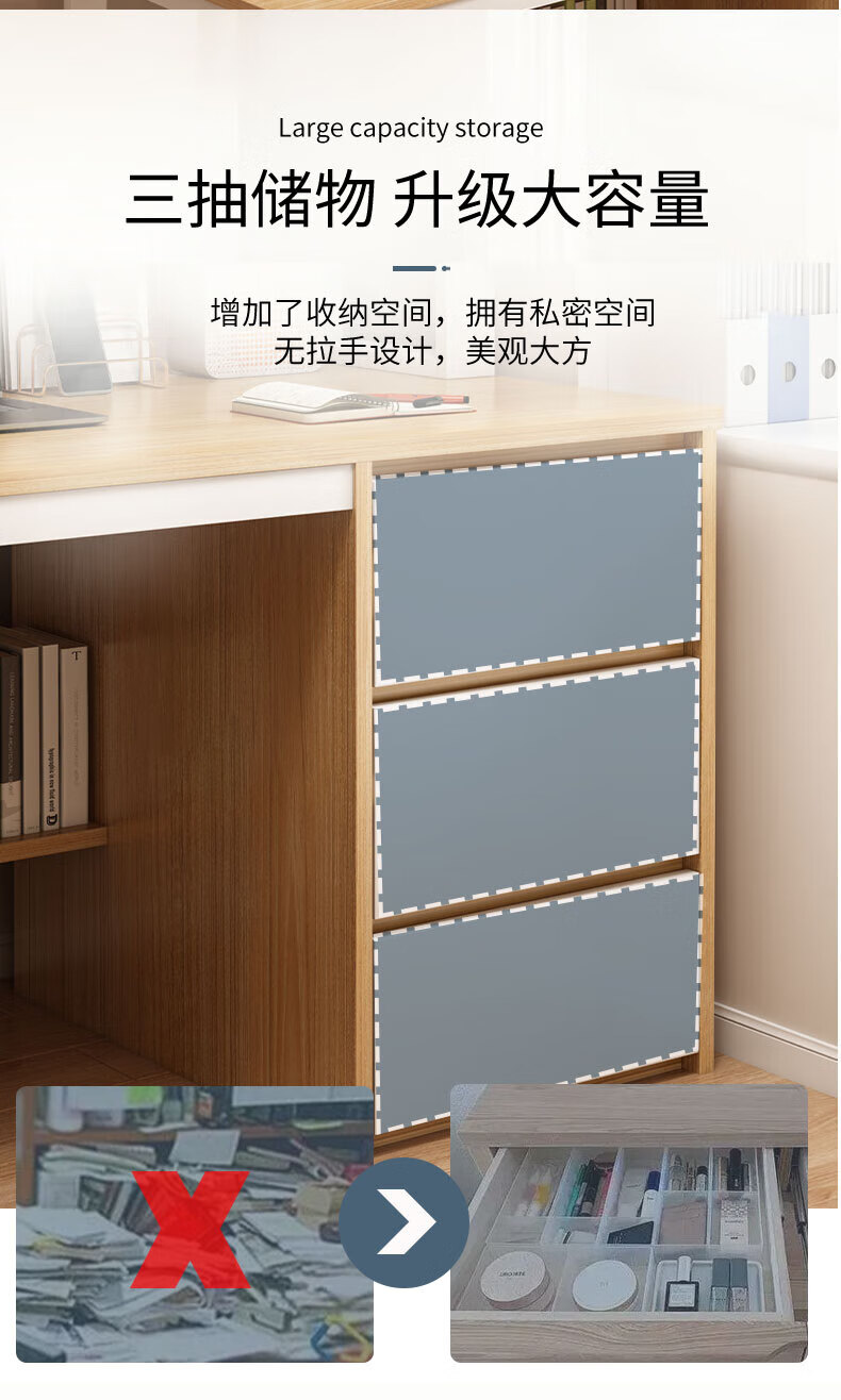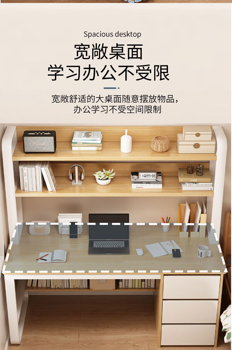 Jiajialin Computer Desk Desktop Bookshelf Bookcase Integrated Table and Chair Set Bedroom Study Table Student Writing Desk Upgraded Three Drawers Oak Color 120cm