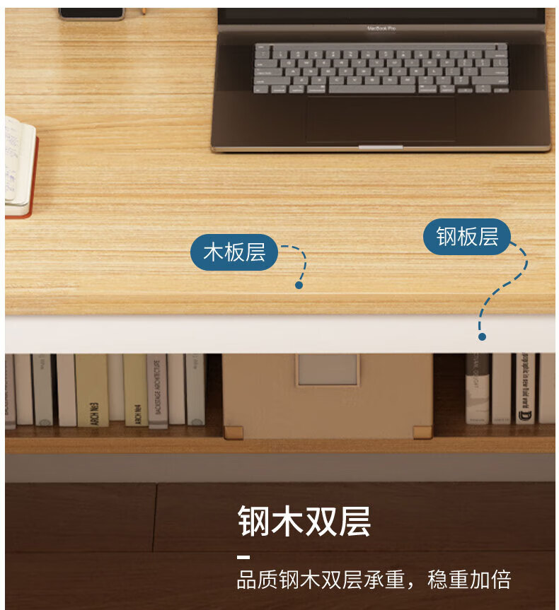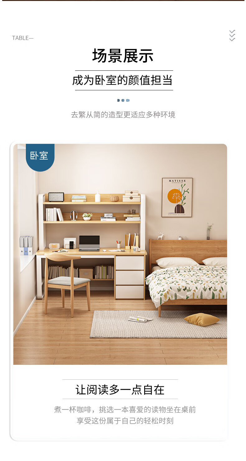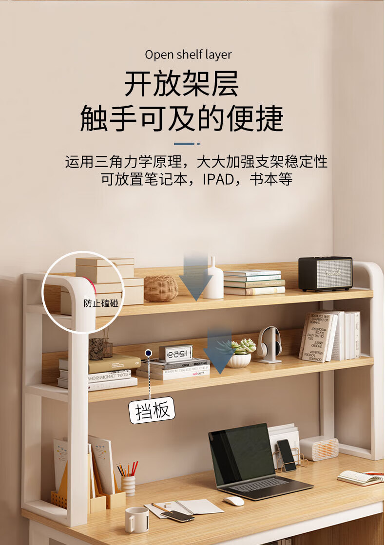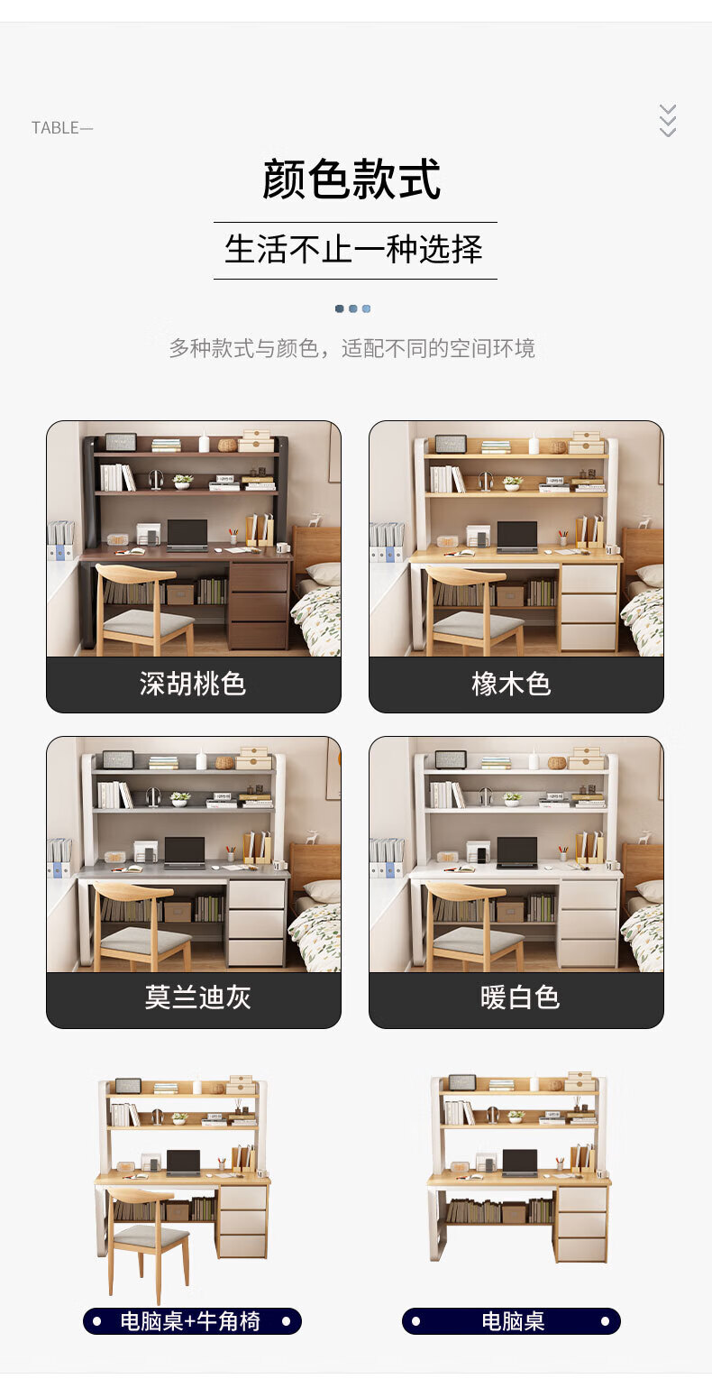 Jiajialin Computer Desk Desktop Bookshelf Bookcase Integrated Table and Chair Set Bedroom Study Table Student Writing Desk Upgraded Three Drawers Oak Color 120cm
