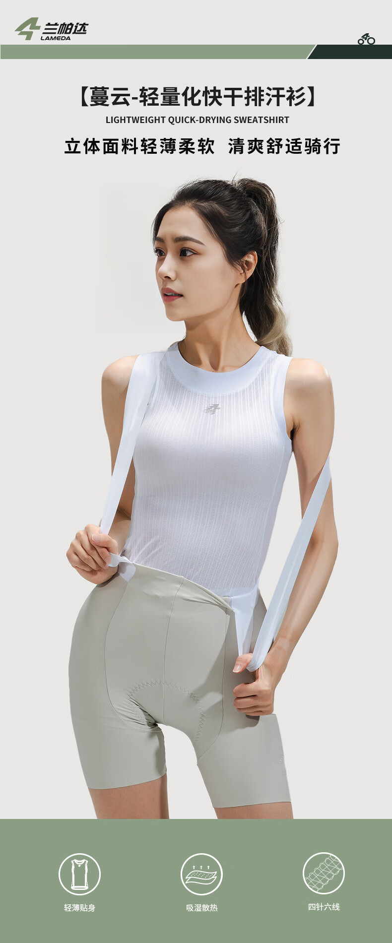 Lampada cycling jersey breathable sweatshirt cycling underwear quick-drying sweat-absorbent vest bicycle road bike women's base layer white - vest S