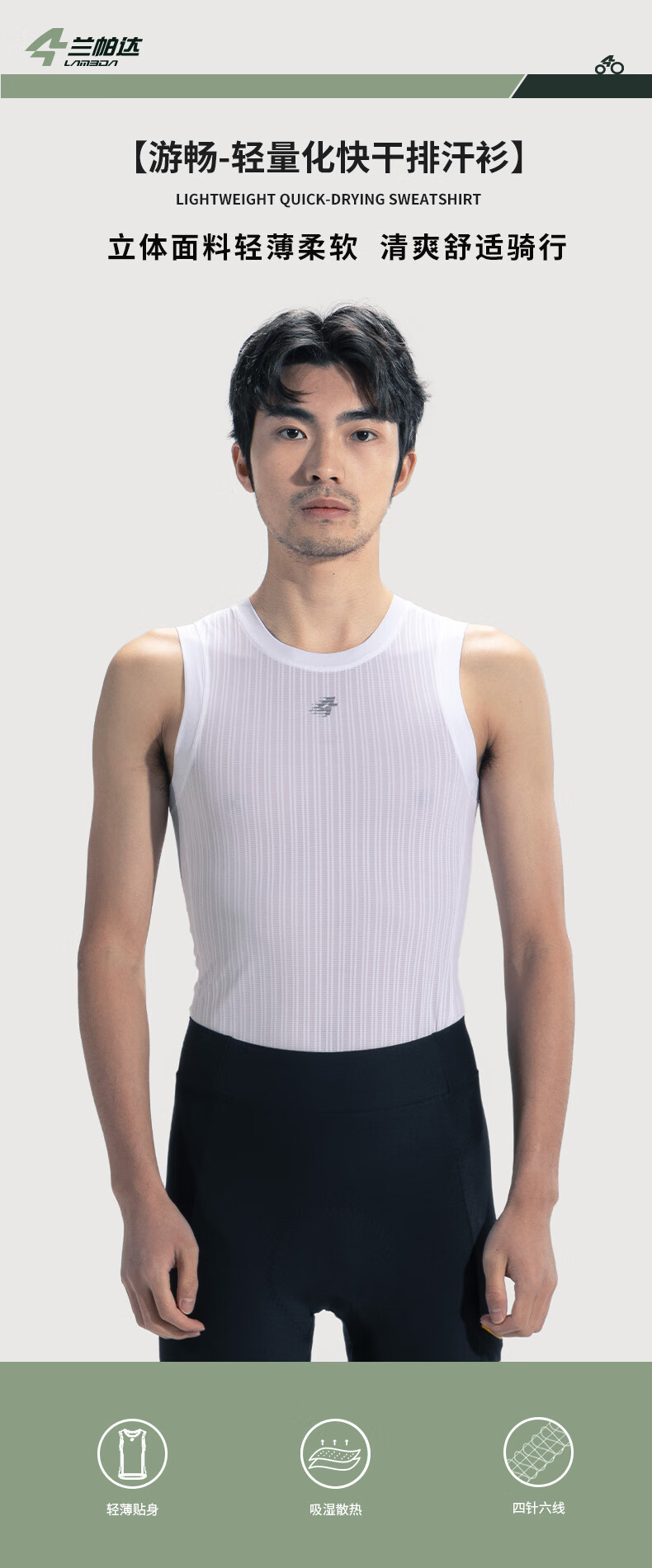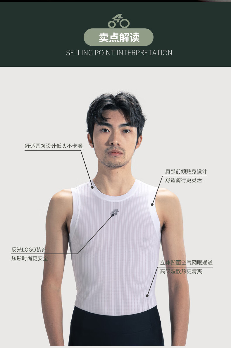 Lampada's new cycling sweatshirt men's sweat-absorbent and quick-drying cycling vest cycling clothing mountain bike bottoming shirt white vest M