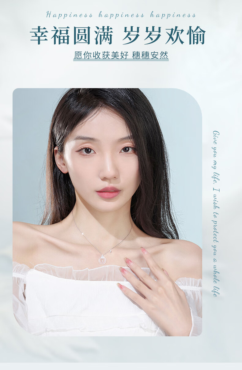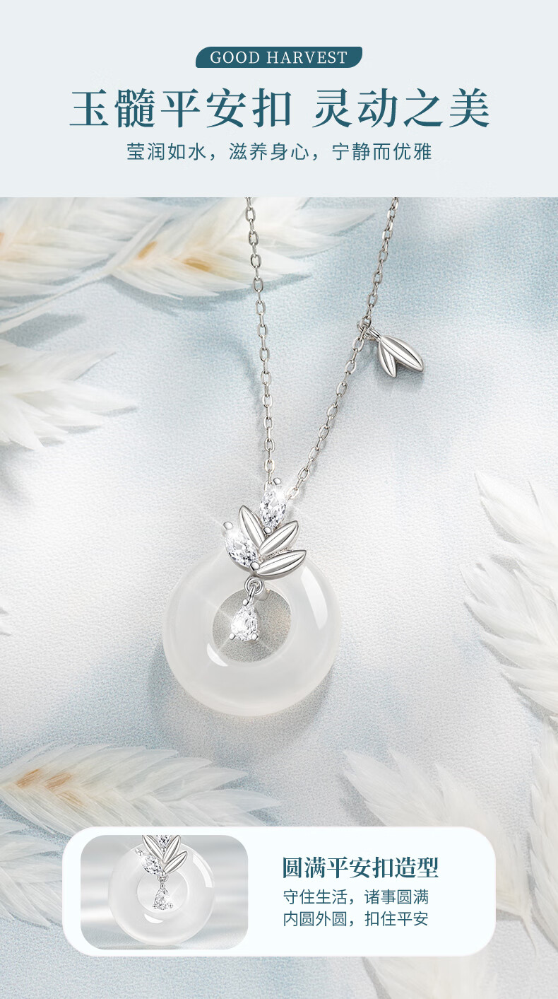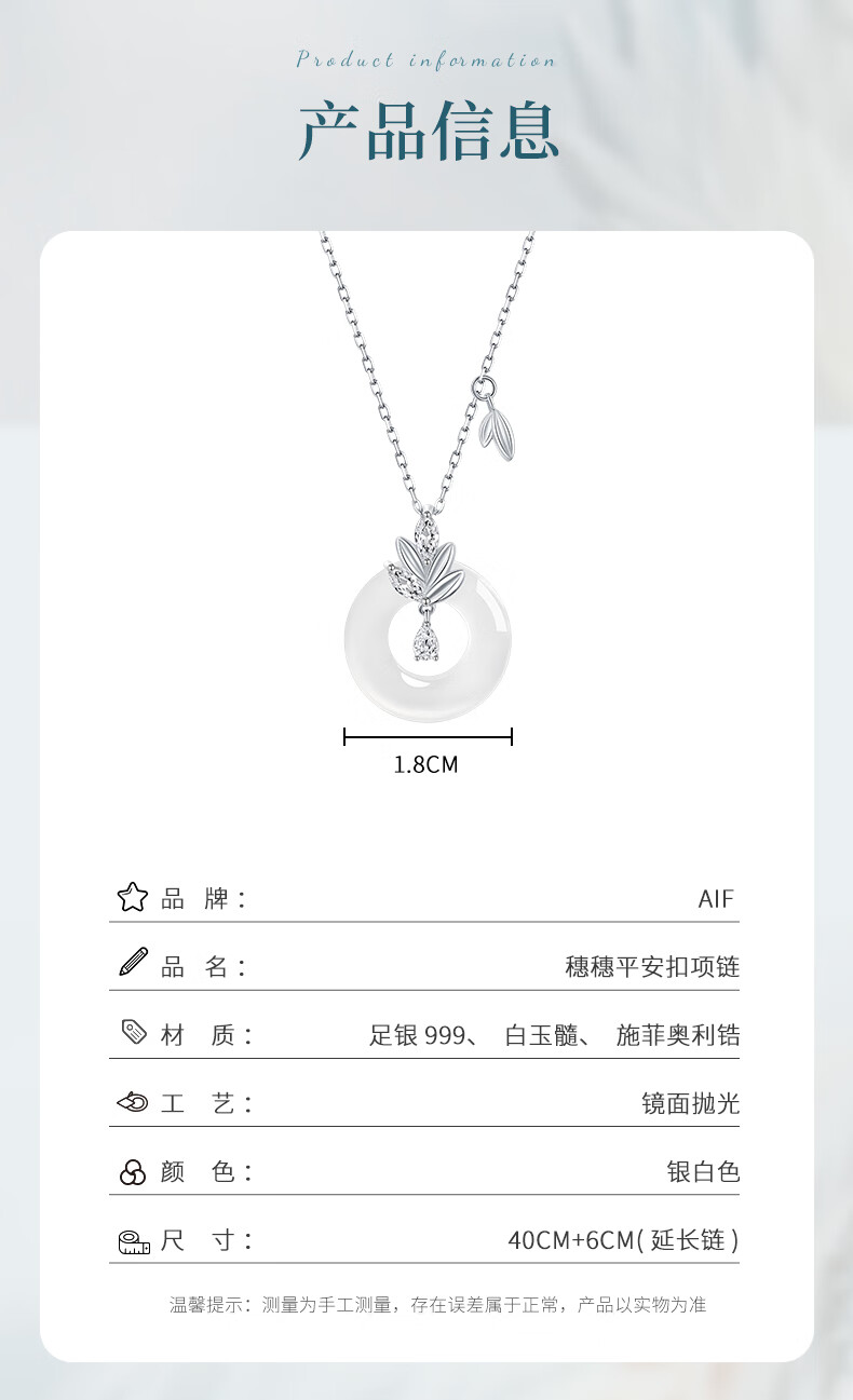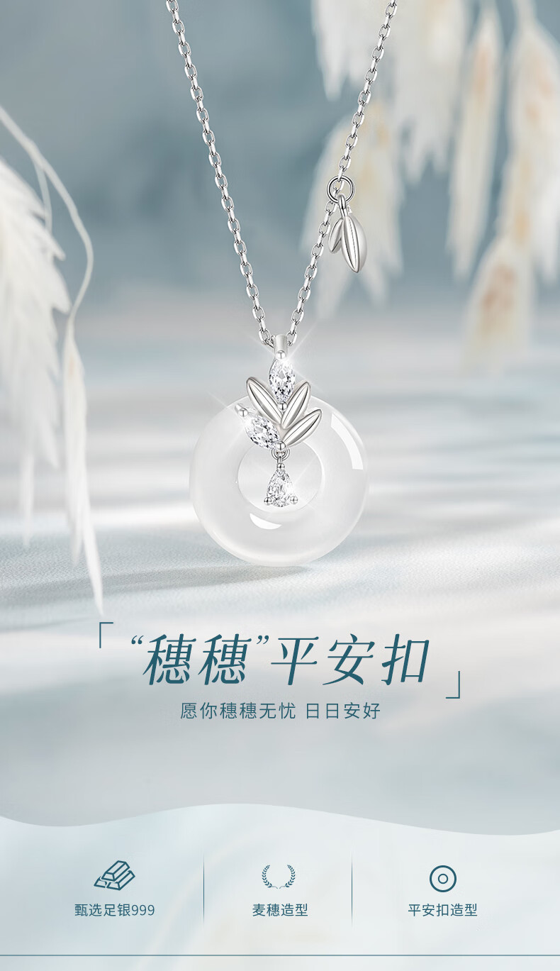 AIF Wheat Sui Sui Ping An Buckle 999 Pure Silver Necklace Women's Light Luxury High-end Birthday Gift for Girlfriend or Wife Sui Sui Ping An Buckle Necklace + Brand Gift Box/Qicangfa