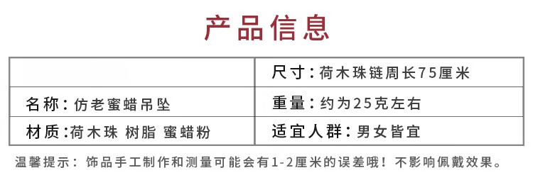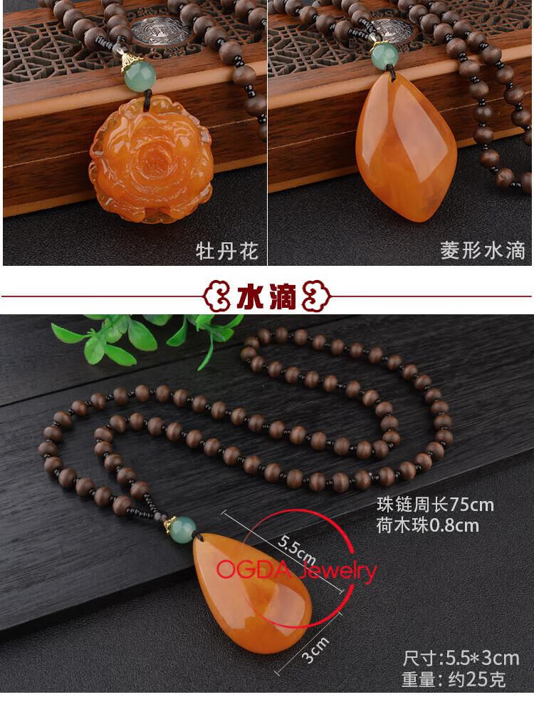 DL 1998 Fat Donglai same style amber beeswax water drop ethnic style old wax safety buckle retro men's and women's sweater chain accessories gift water drop