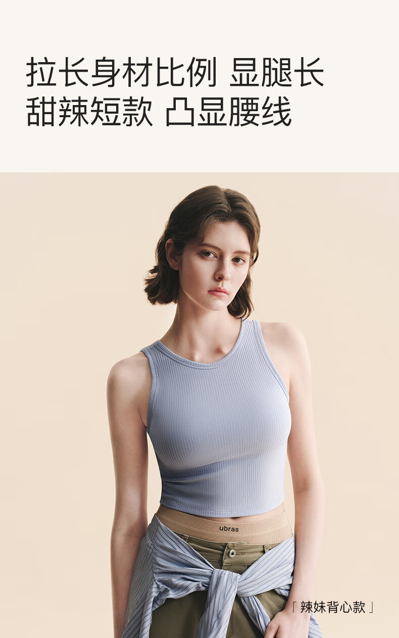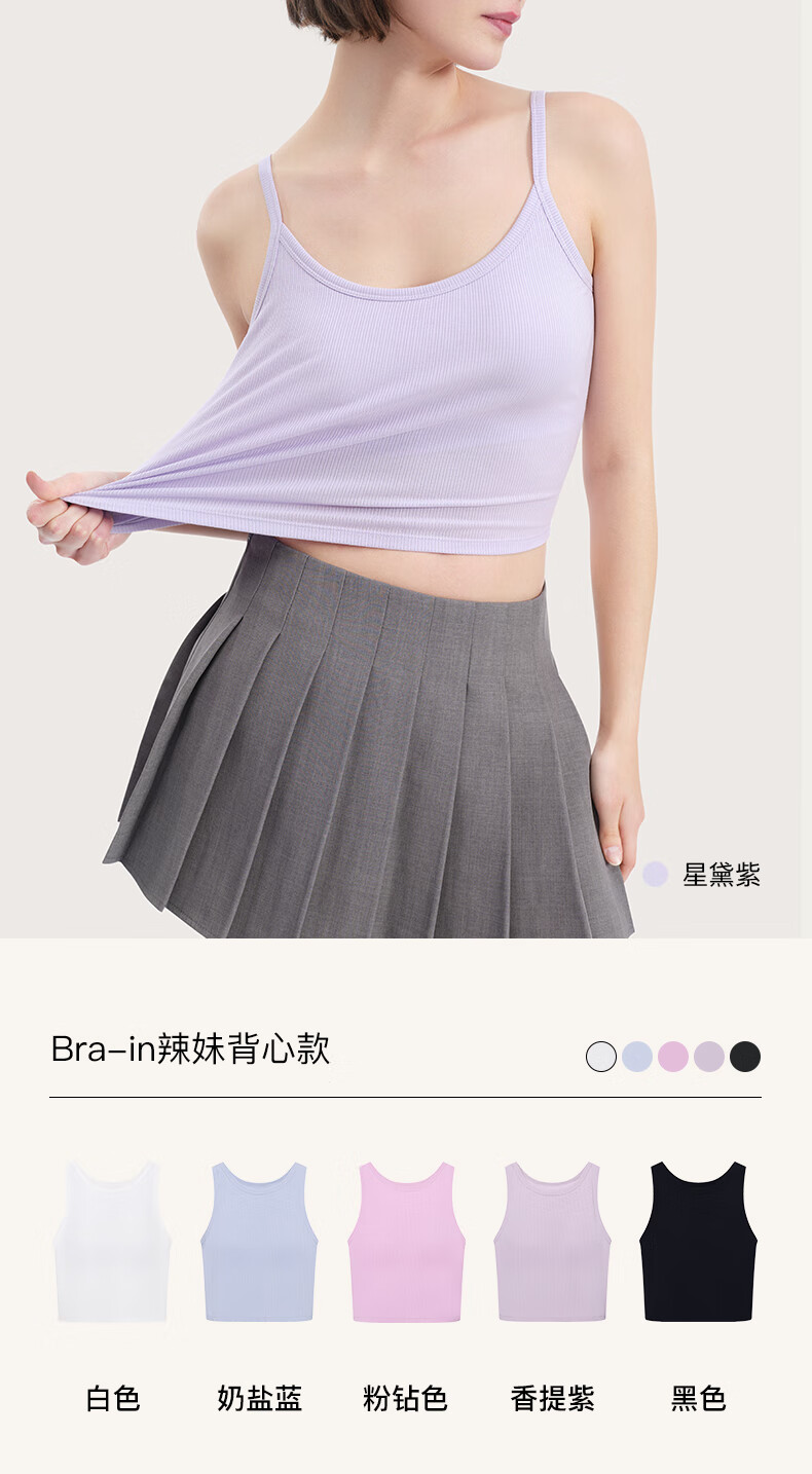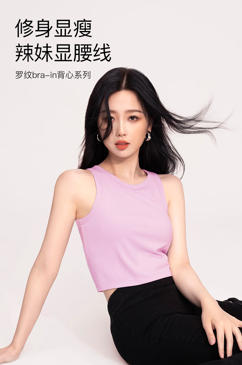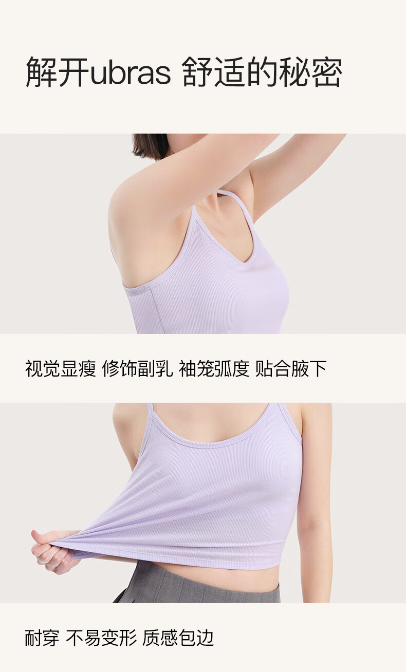 Ubras Yu Shuxin's same style ribbed hot girl short camisole women can wear as a base, hot girl vest style Shanti purple L