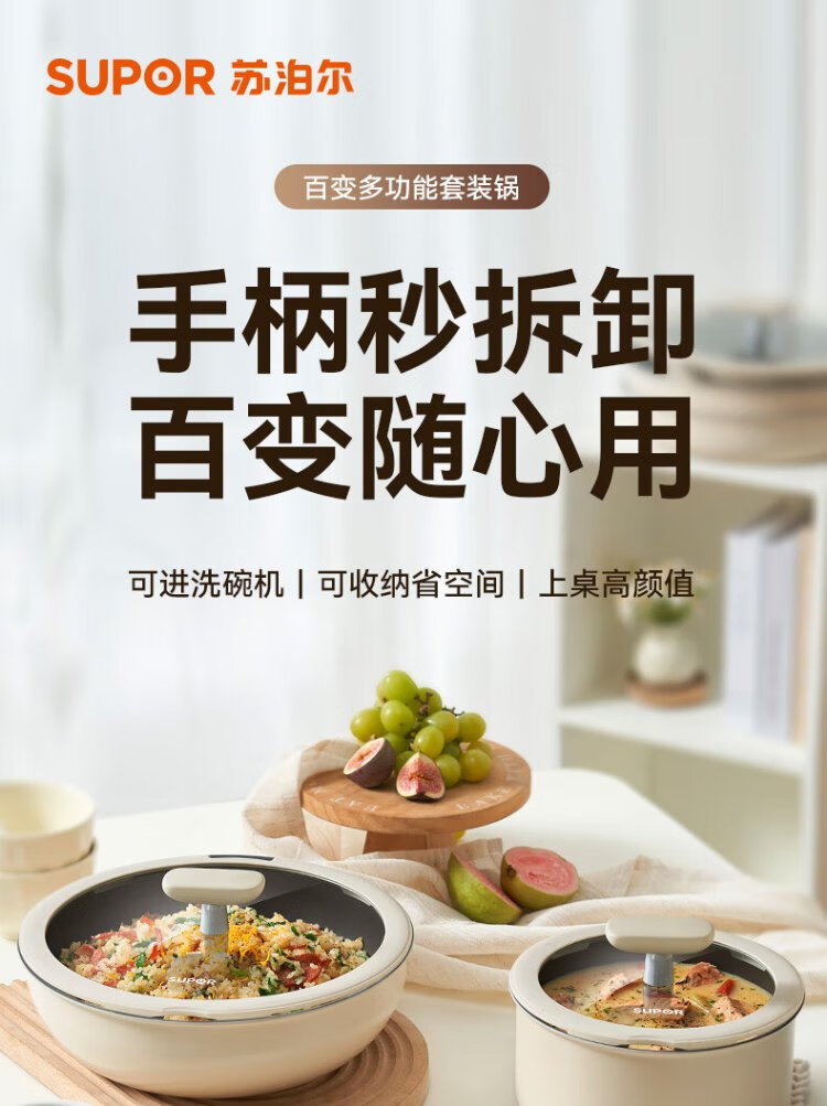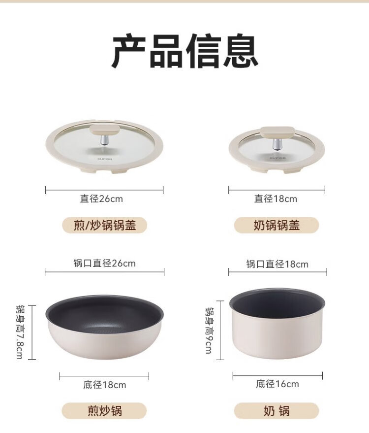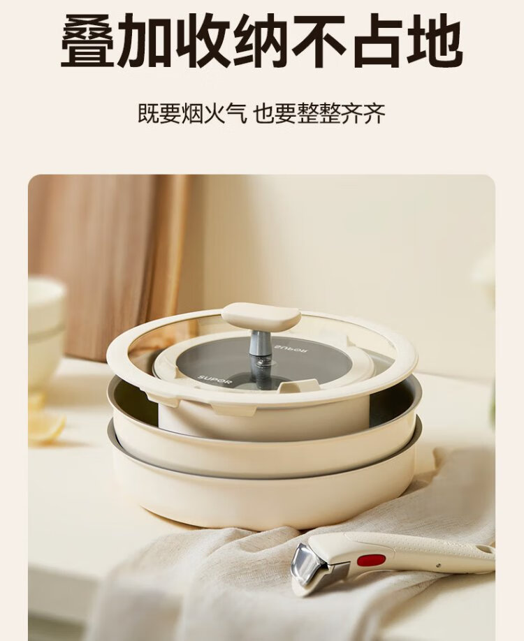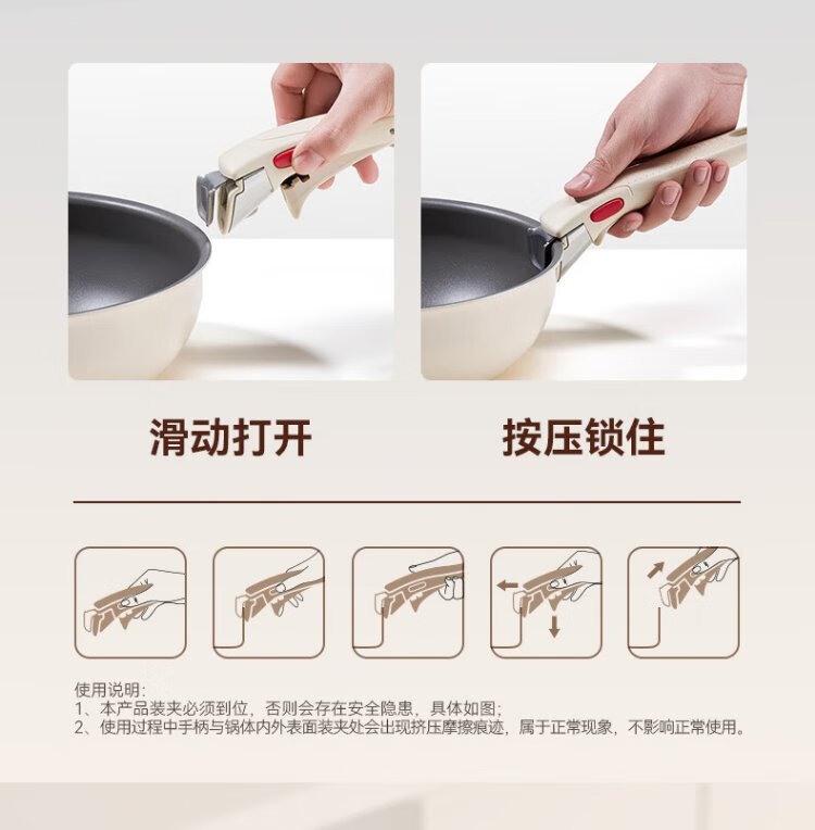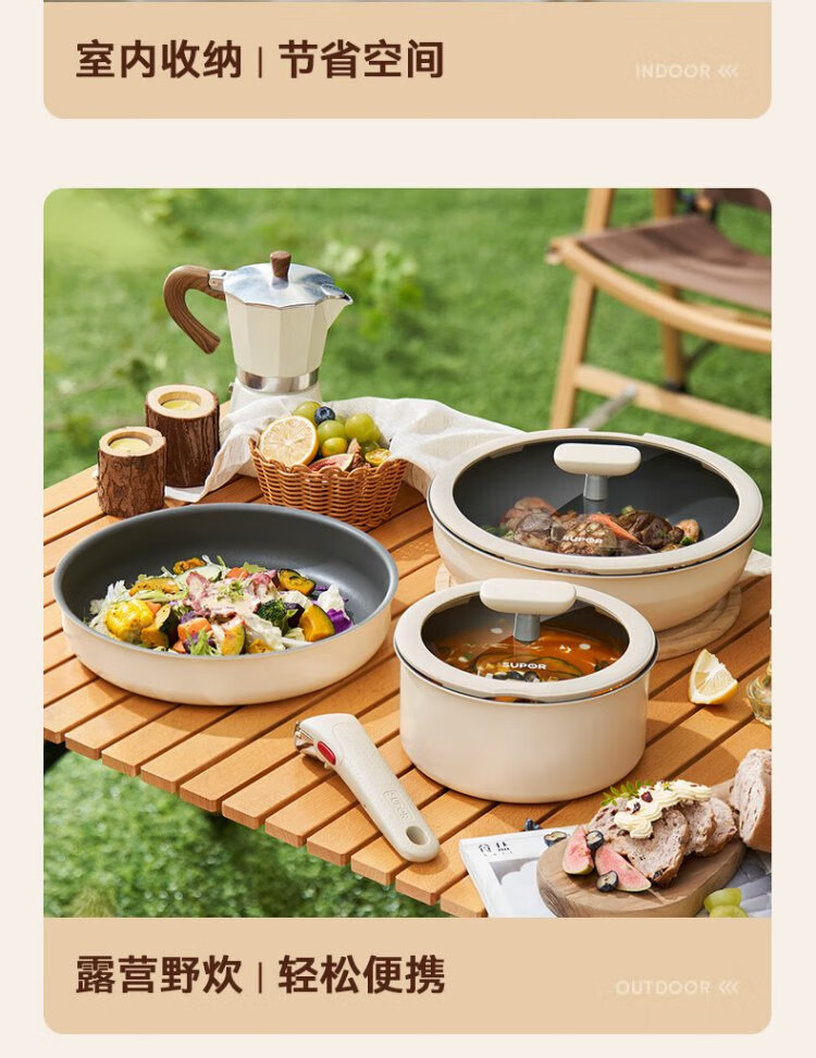 SUPOR pot set, cooking pot, gas induction cooker, universal wok, frying pan, milk pan, detachable handle, smart temperature sensing, frying pan + frying pan (with detachable handle) 2-piece set