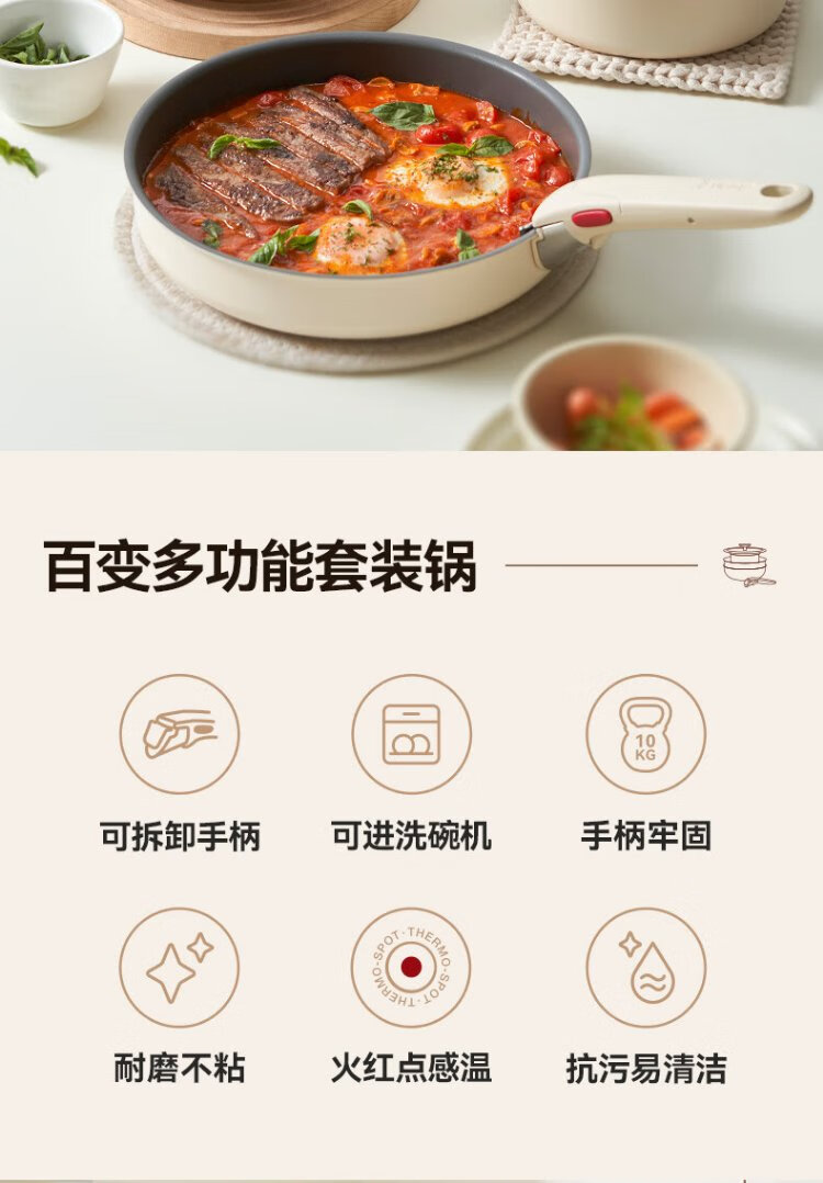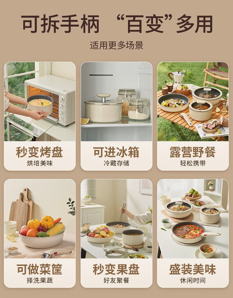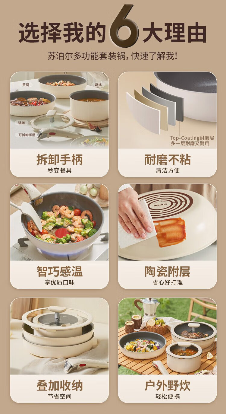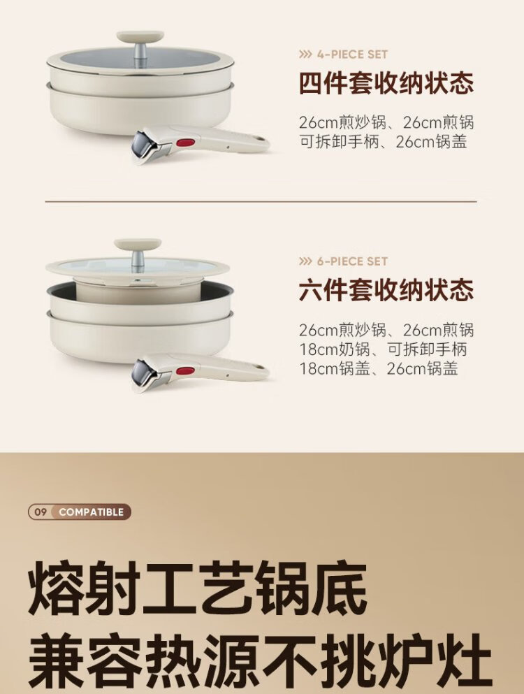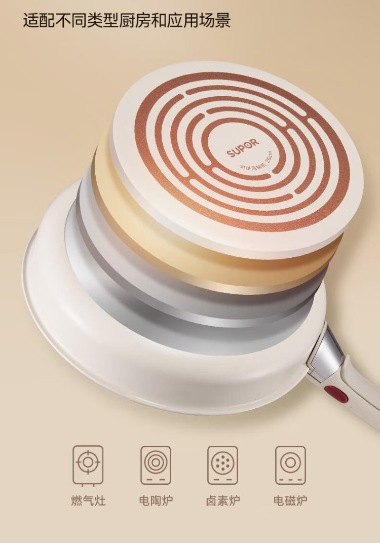 SUPOR pot set, cooking pot, gas induction cooker, universal wok, frying pan, milk pan, detachable handle, smart temperature sensing, frying pan + frying pan (with detachable handle) 2-piece set