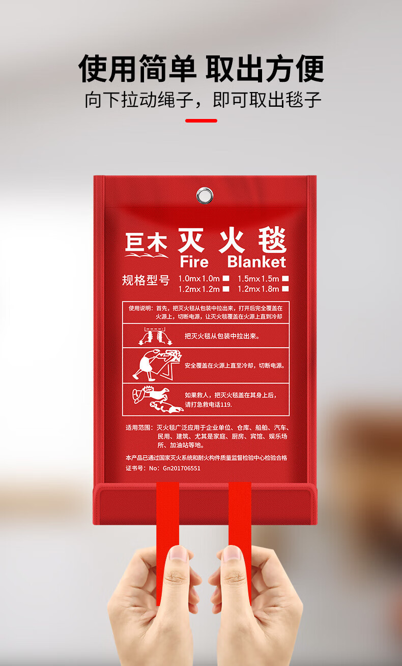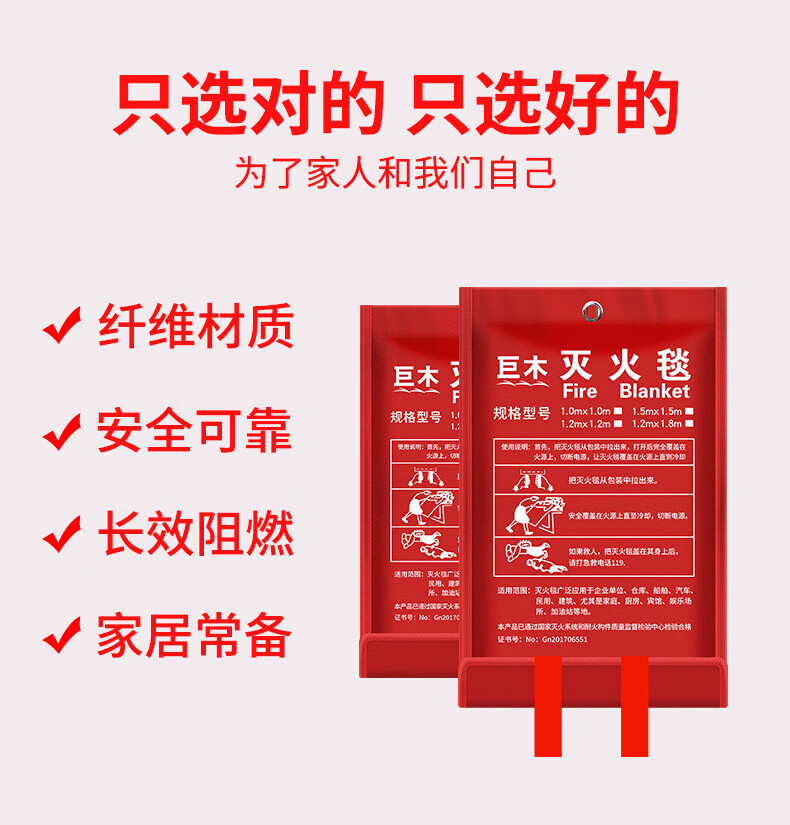 Giant wood fire blanket, fiberglass national standard fire protection certification equipment, household fireproof kitchen special escape fire blanket mask, 1M*1M fiberglass fire blanket, annual inspection passed